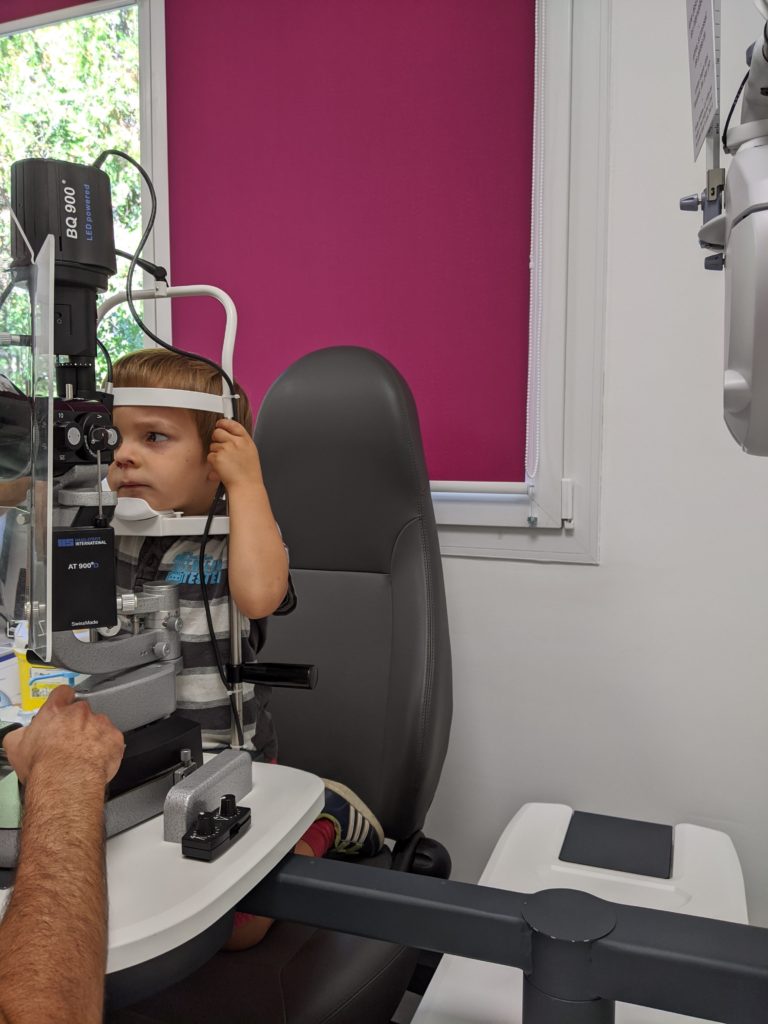 Pendant ce temps, Émile, Lucie et Thomas étaient chez l’ophtalmo. Émile y était pour la première fois, et il a été bien impressionné, mais très sage.