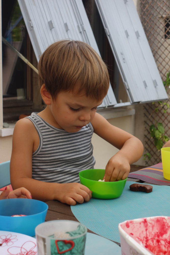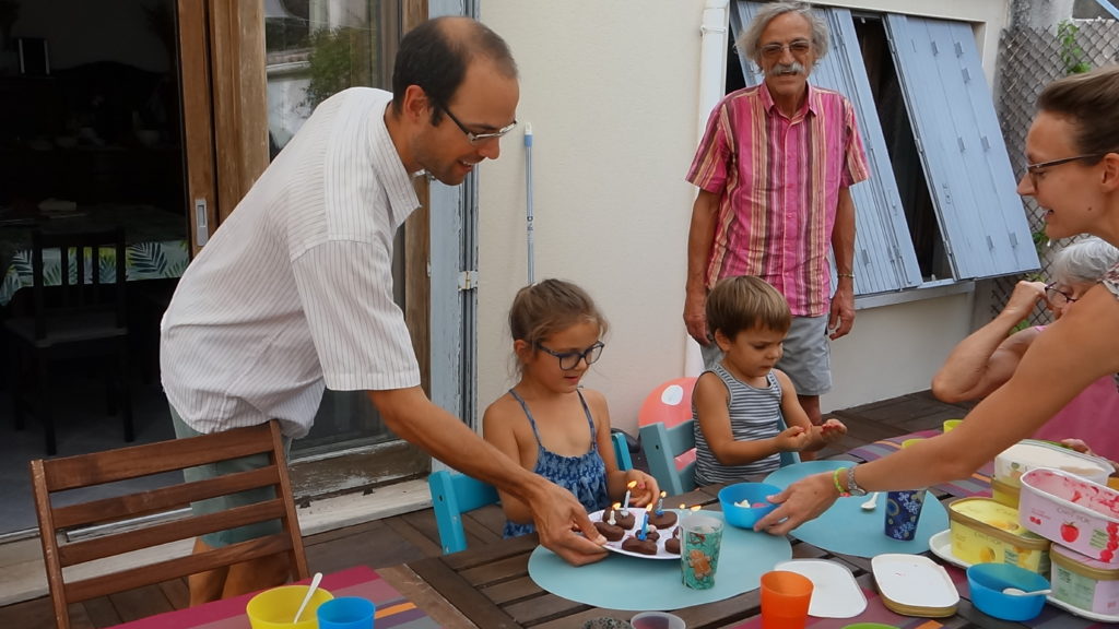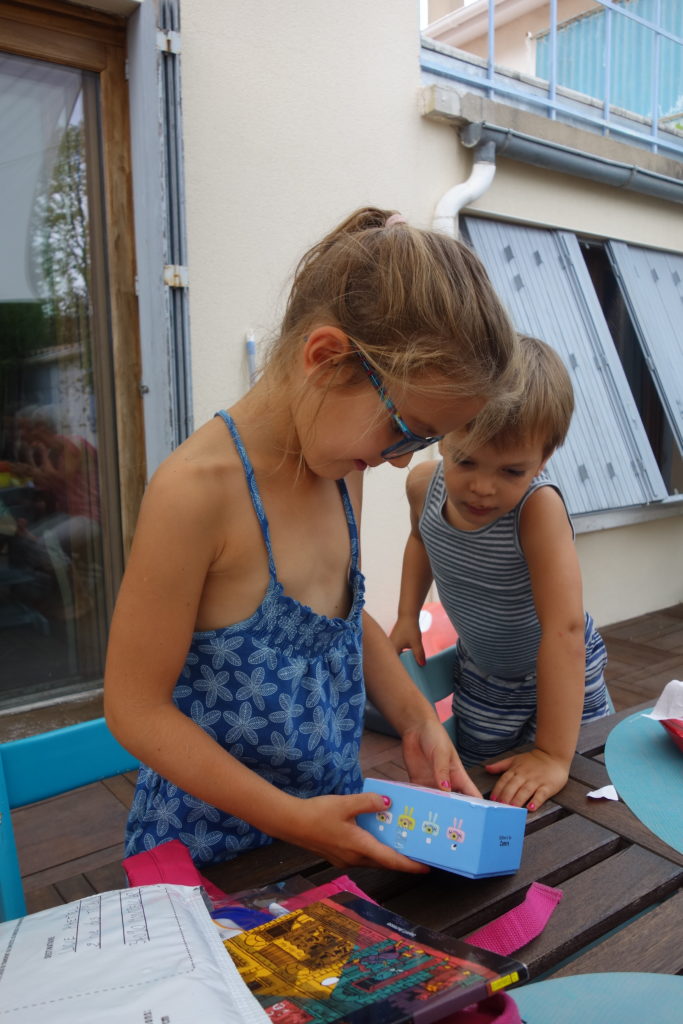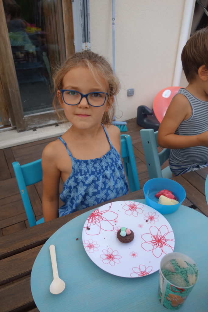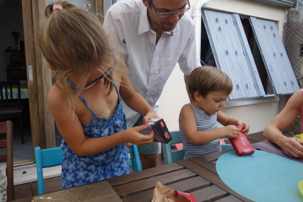 Pour le goûter, Émile a soufflé les 6 bougies de Lucie sur ses muffins d’anniversaire et Lucie a ouvert ses cadeaux.