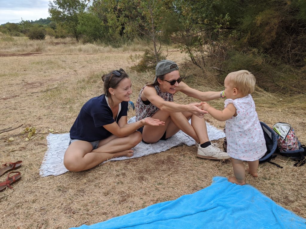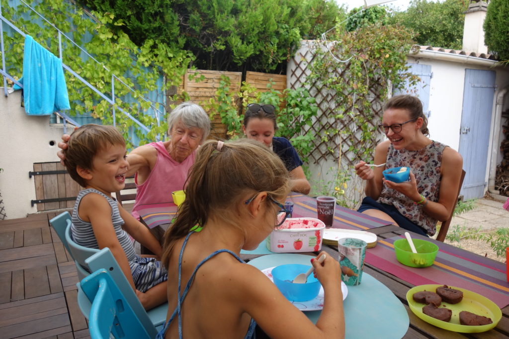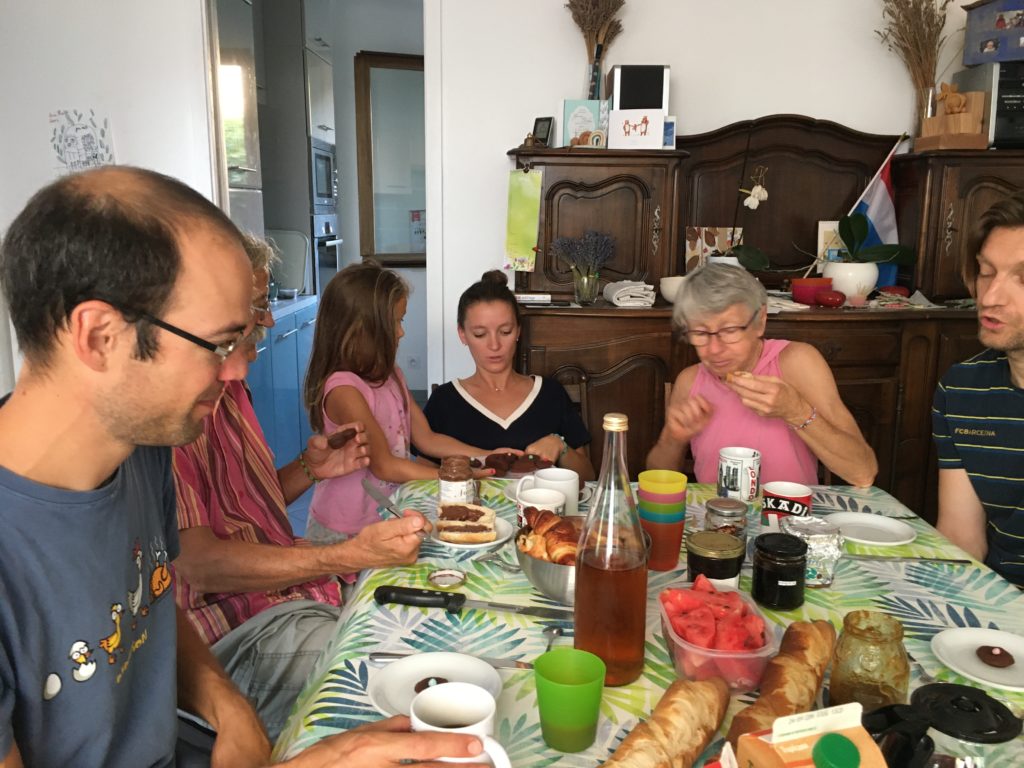 Le matin du 28 août, nous avons pris un bon petit déjeuner, avant de partir presque tous en voiture pour le lac du Salagou. Louise et Odile, qui faisait son adaptation à la crèche, nous ont rejoint un peu plus tard.