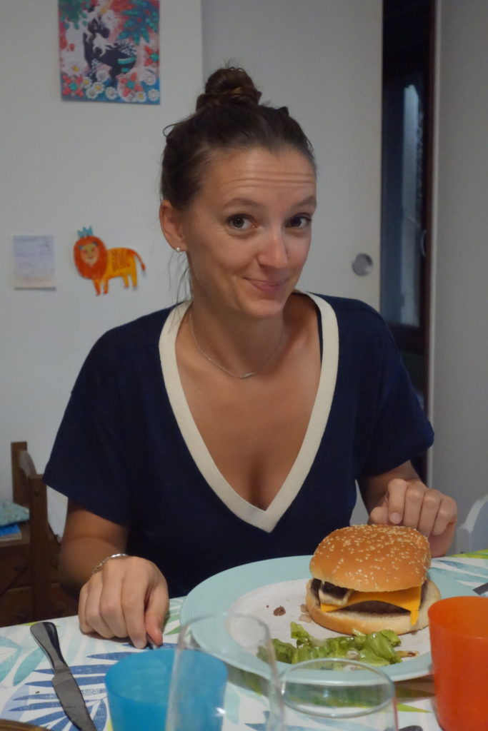 Et pour le dîner, Lucie a choisi le menu : hamburgers-frites-haricots verts.