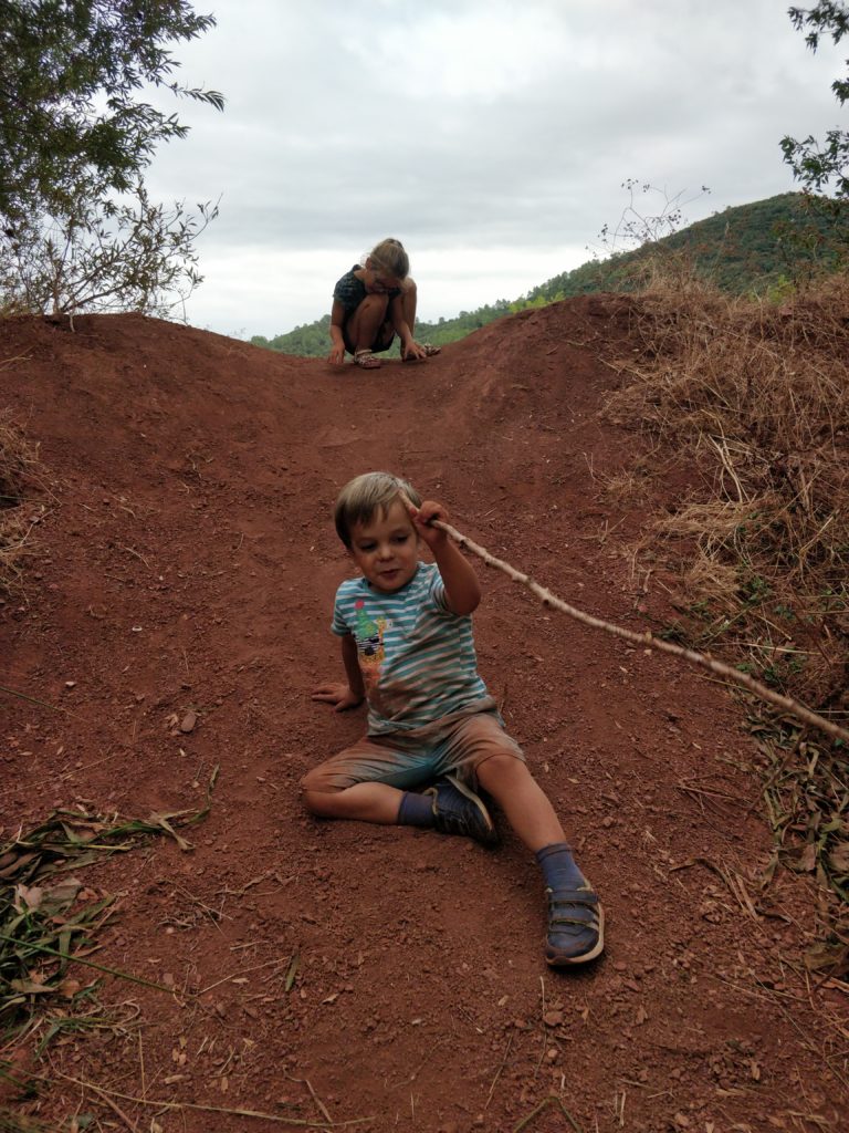 Nous avons marché au bord du lac pour prendre un pique-nique. Les enfants ont joué avec bonheur dans la terre rouge qui borde le lac !