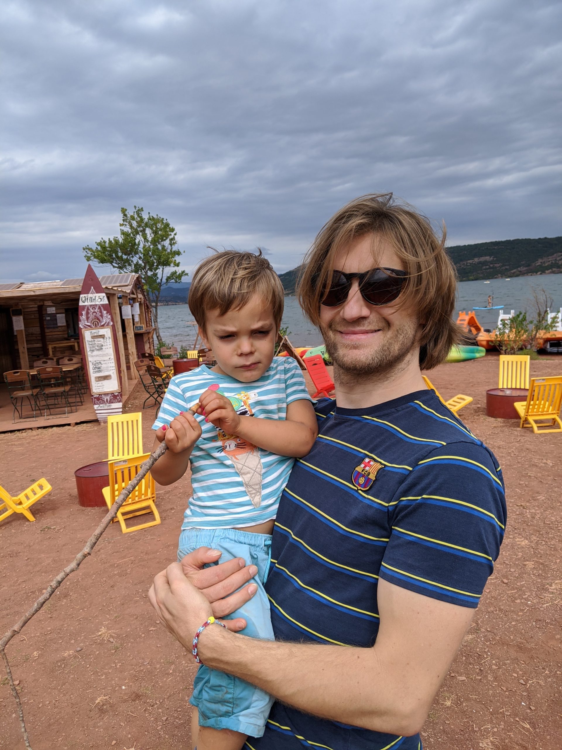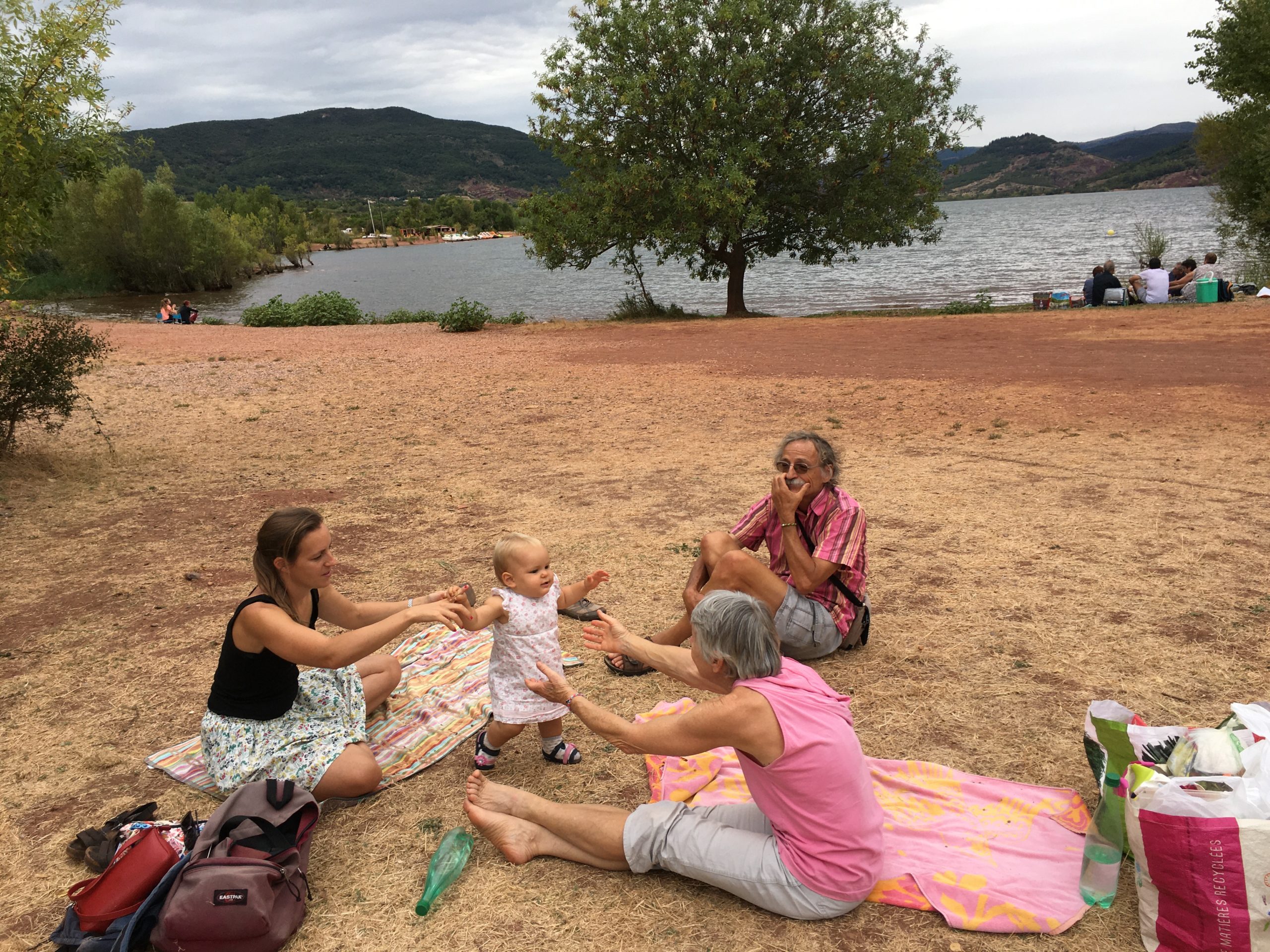 Le matin du 28 août, nous avons pris un bon petit déjeuner, avant de partir presque tous en voiture pour le lac du Salagou. Louise et Odile, qui faisait son adaptation à la crèche, nous ont rejoint un peu plus tard.