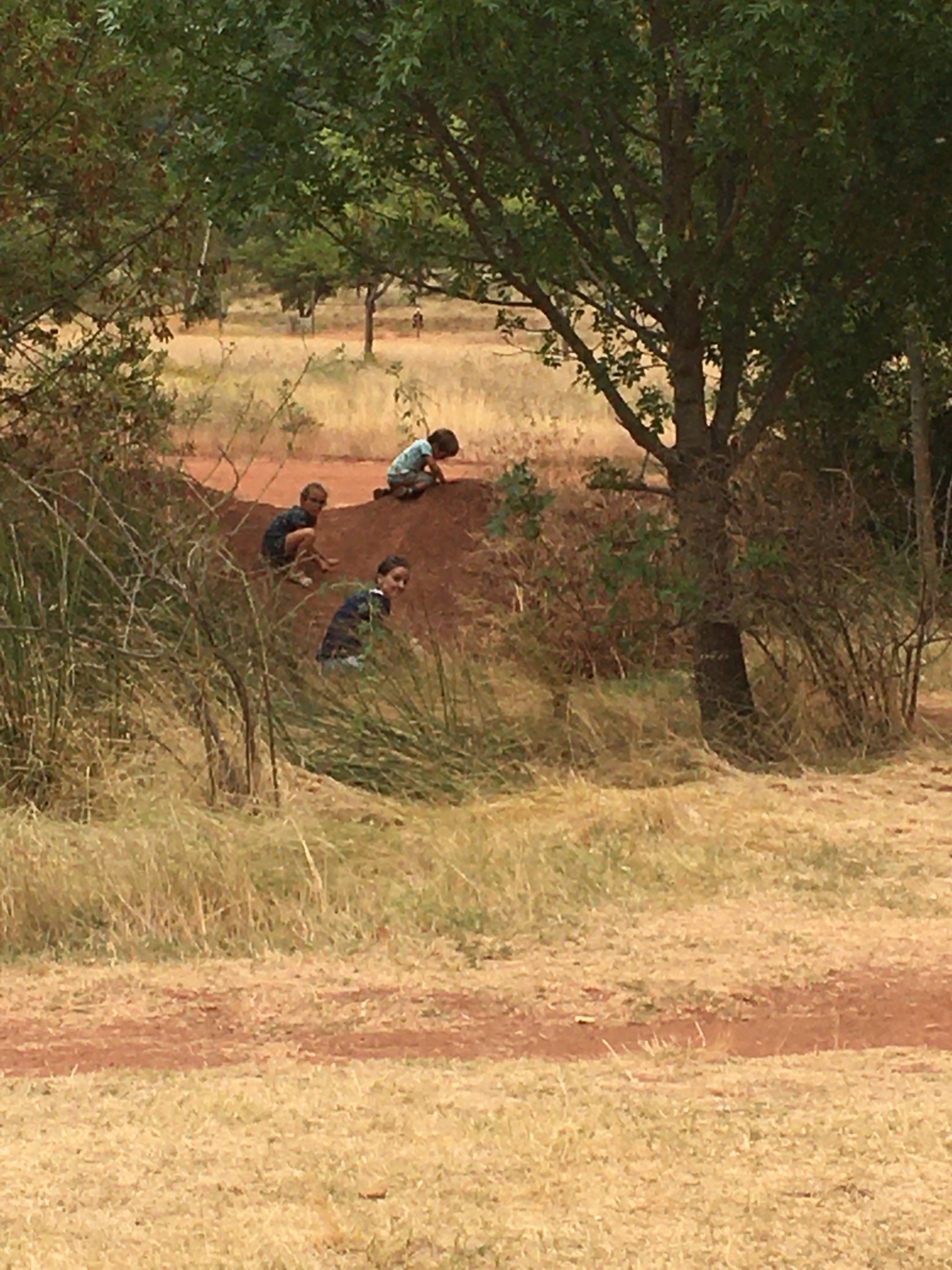 Nous avons marché au bord du lac pour prendre un pique-nique. Les enfants ont joué avec bonheur dans la terre rouge qui borde le lac !