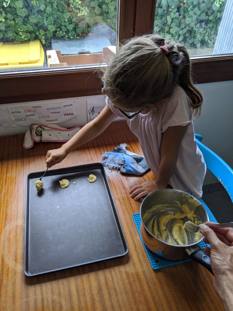 Lucie et Émile prennent plaisir à aider en cuisine. Ils sont devenus de vrais spécialistes des chouquettes ! Miam !