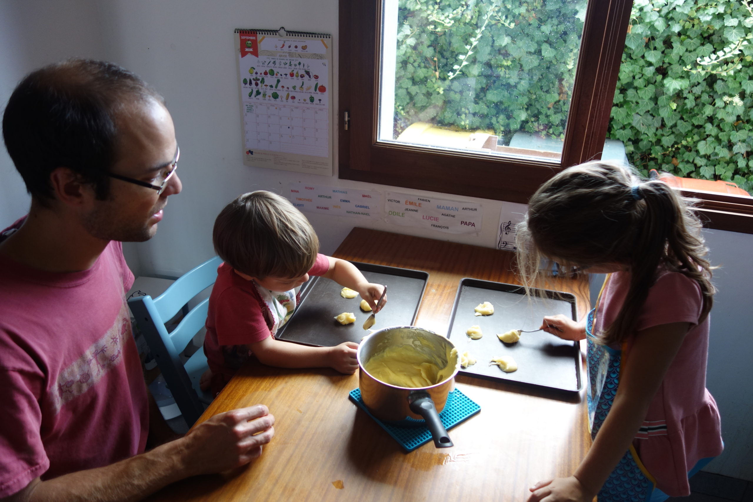 Lucie et Émile prennent plaisir à aider en cuisine. Ils sont devenus de vrais spécialistes des chouquettes ! Miam !