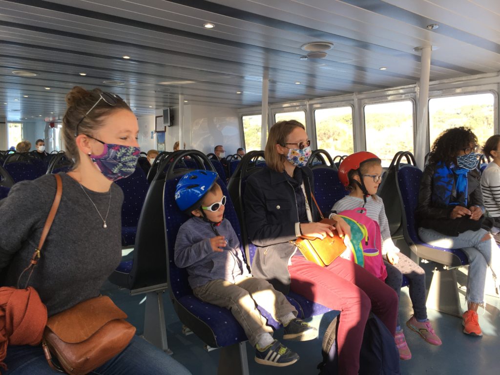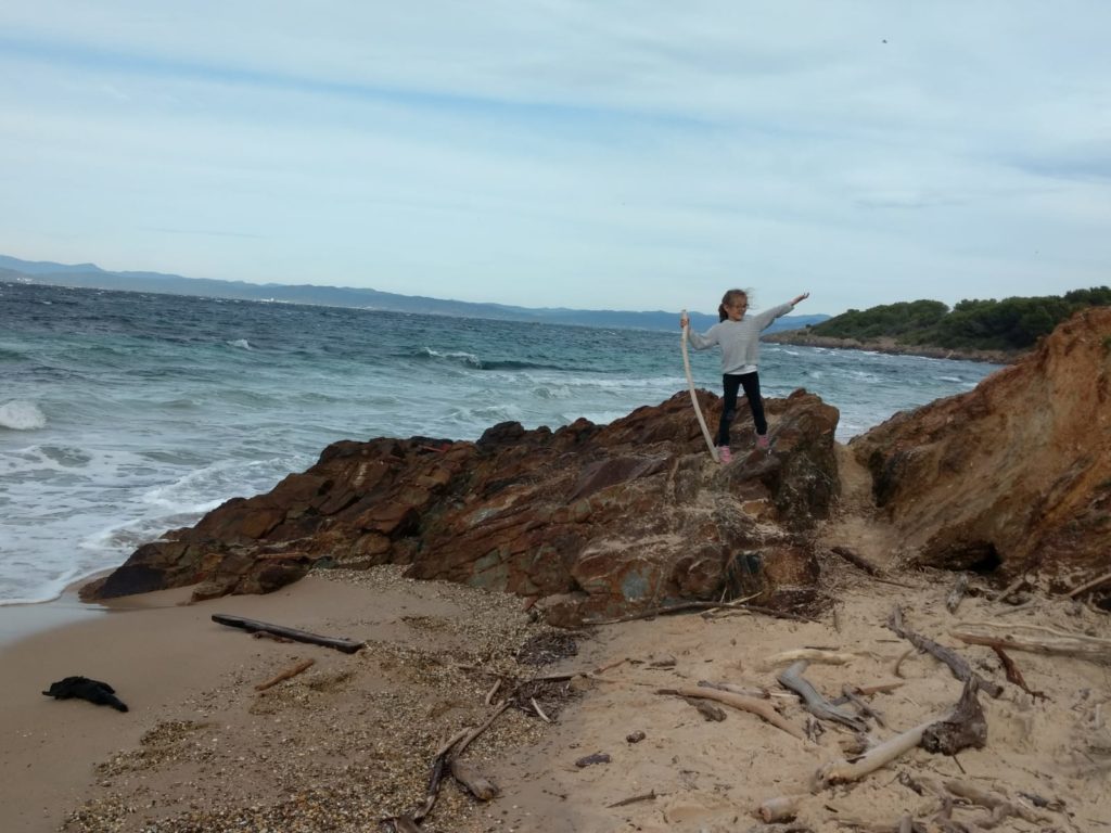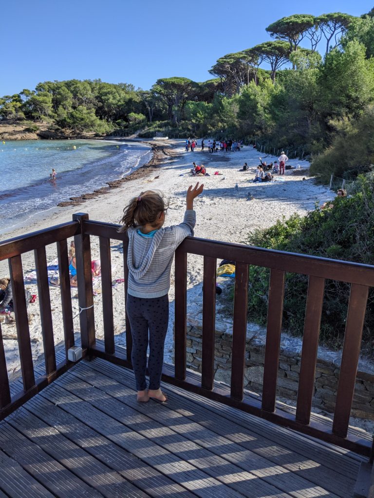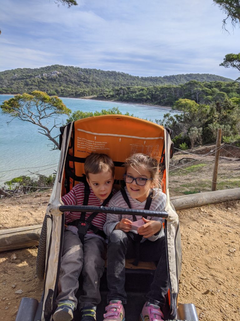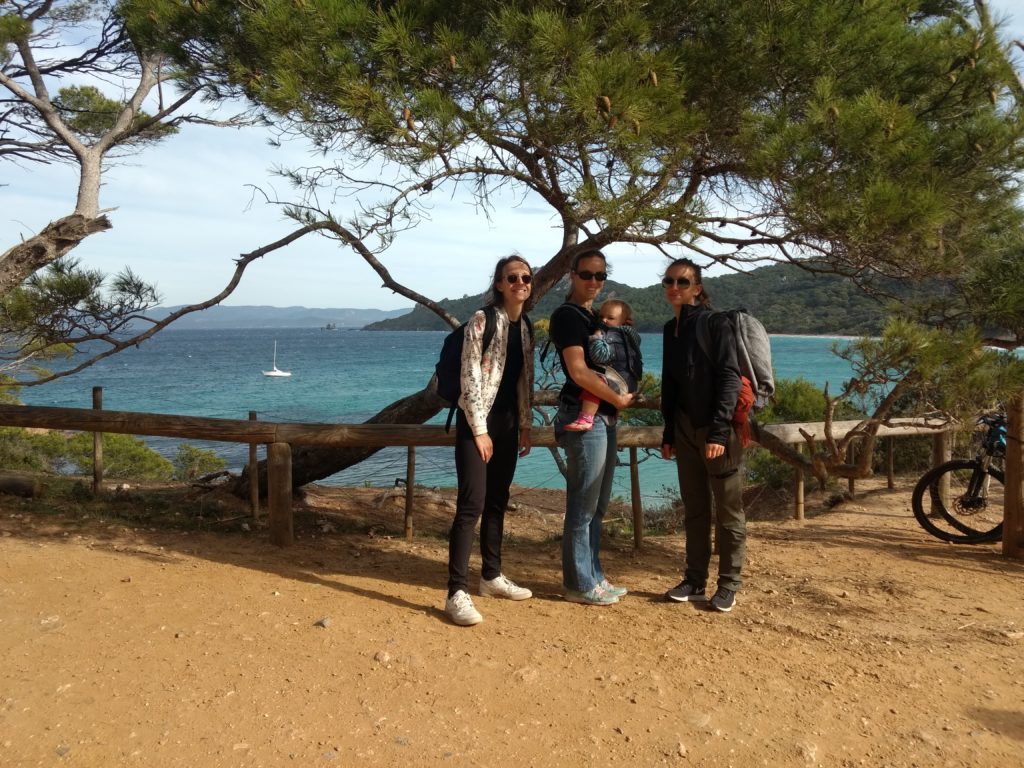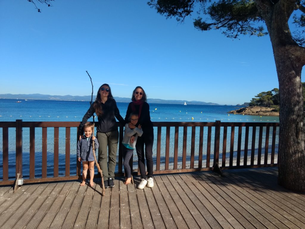 Cette année à Porquerolles, nous étions Geneviève & Éric, Arthur & Tess, Victor & Dalal, Agathe, Jeanne et nous cinq. Au début de notre séjour, le deuxième confinement a été annoncé et les hôtels ont été fermés. L’île s’est alors vidée comme jamais. Heureusement, nous avions loué une maison et avons pu rester jusqu’au dimanche soir. Nous avons quand même pu bien profiter de notre séjour même si les déplacements ont été limités à 1km pendant une heure, Nous n’avons heureusement rencontré aucun contrôle !