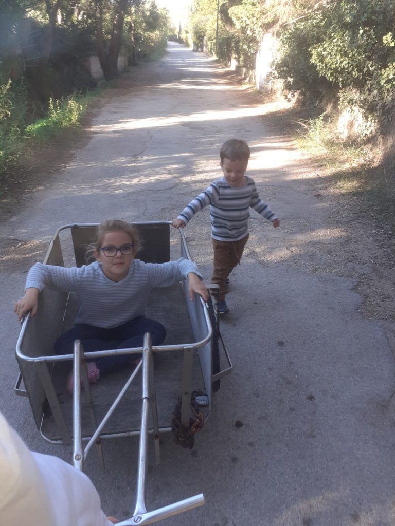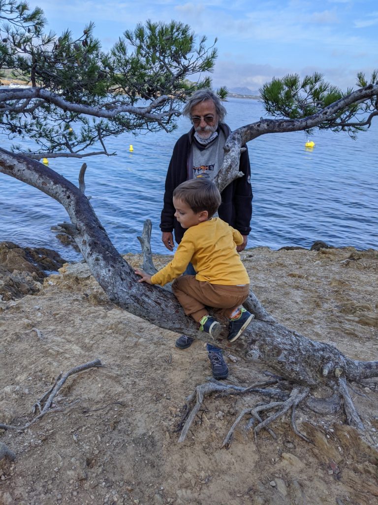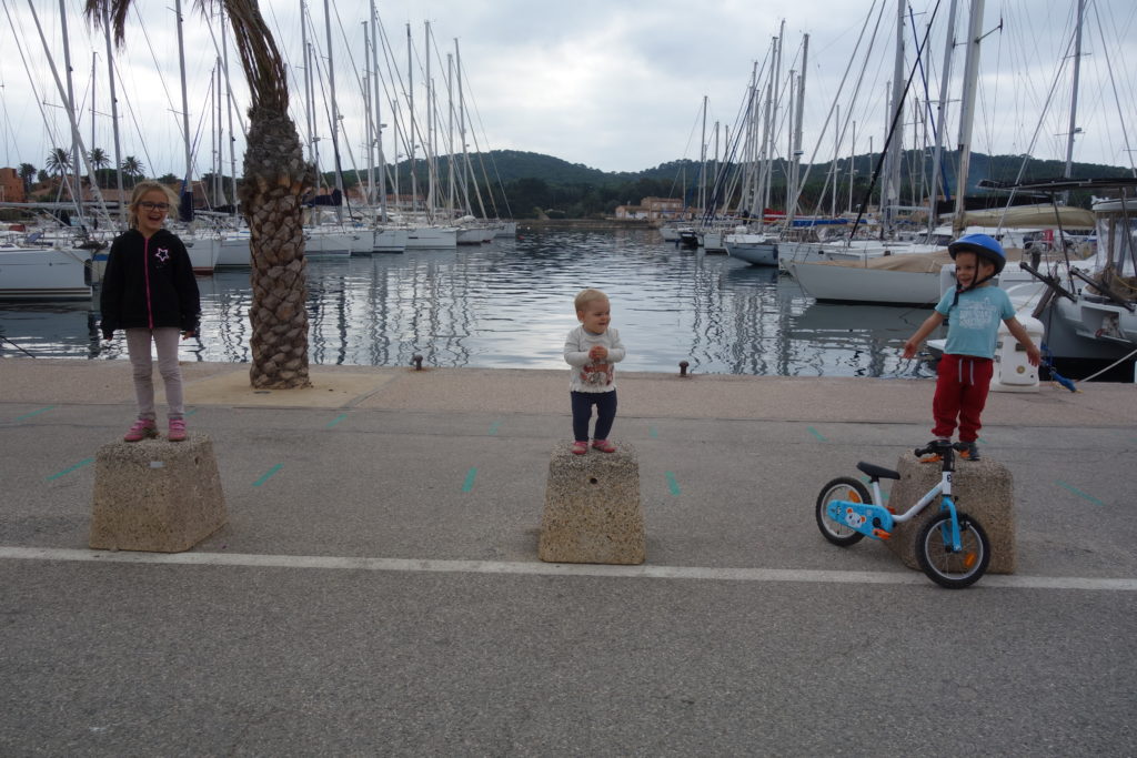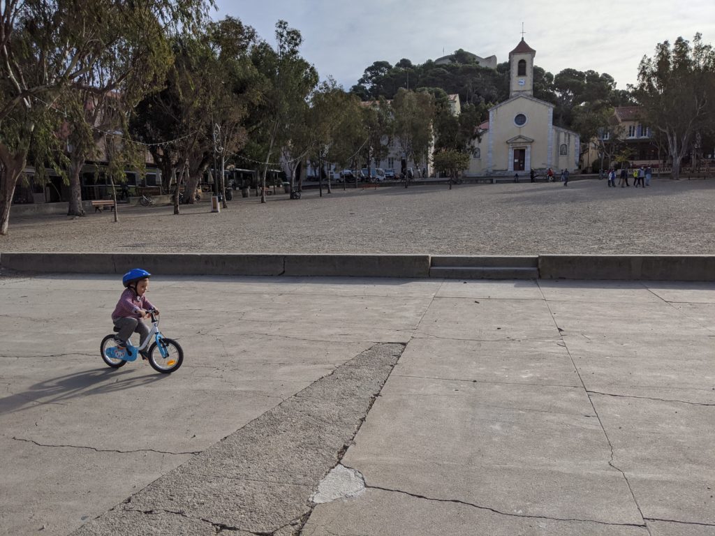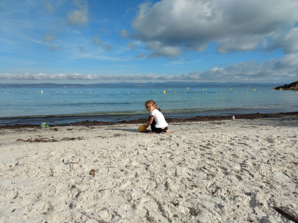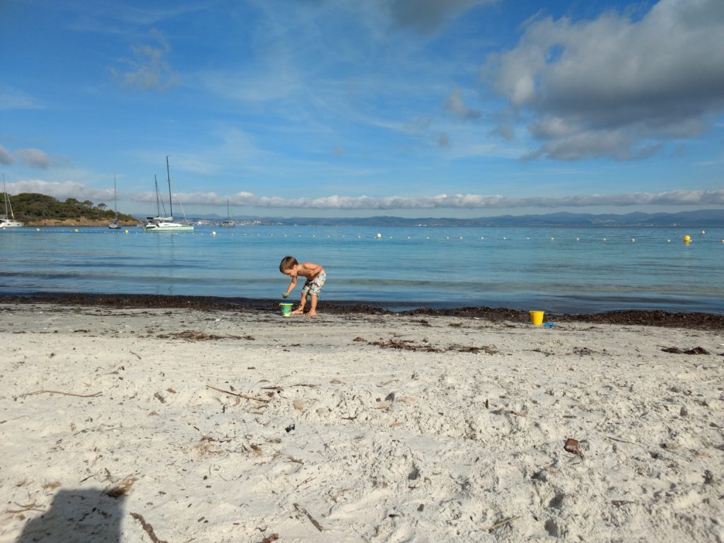 Cette année à Porquerolles, nous étions Geneviève & Éric, Arthur & Tess, Victor & Dalal, Agathe, Jeanne et nous cinq. Au début de notre séjour, le deuxième confinement a été annoncé et les hôtels ont été fermés. L’île s’est alors vidée comme jamais. Heureusement, nous avions loué une maison et avons pu rester jusqu’au dimanche soir. Nous avons quand même pu bien profiter de notre séjour même si les déplacements ont été limités à 1km pendant une heure, Nous n’avons heureusement rencontré aucun contrôle !