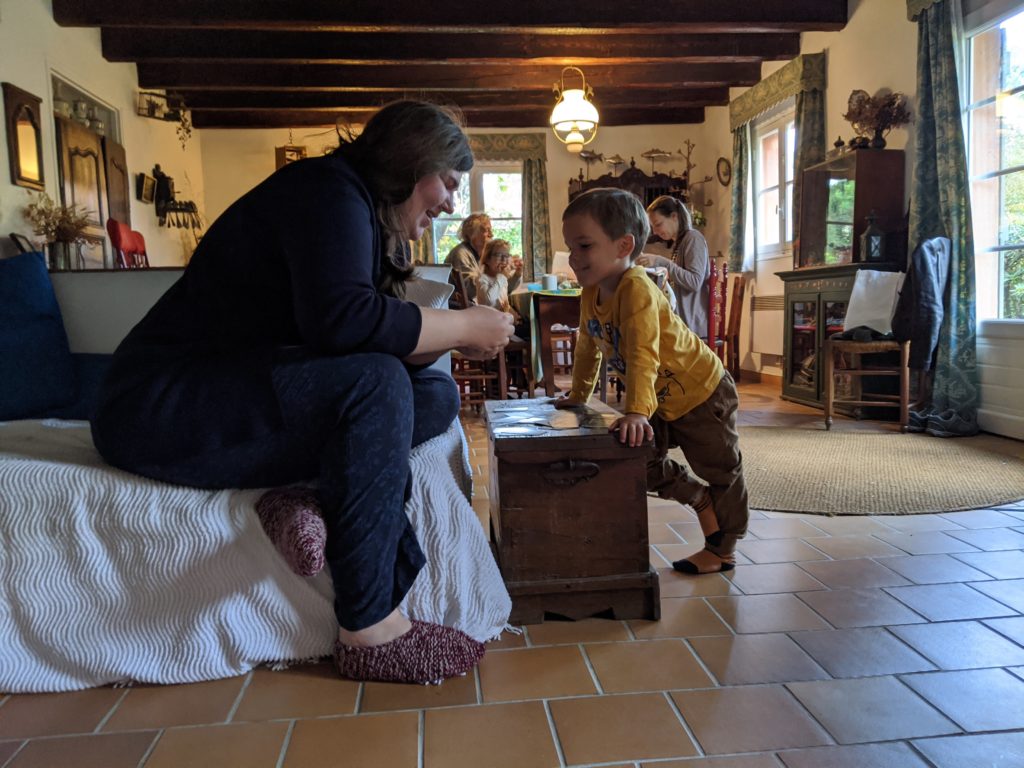 Nous avons bien profité de la maison, pour les repas et pour les jeux notamment. Nous avons aussi organisé une mini chasse aux bonbons d’halloween dans le petit jardin de la maison, puisqu’il n’y avait aucun commerce chez qui quémander !