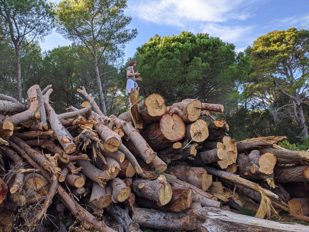 Victor a trouvé, dans un champ, des chênes lièges abattus. Nous sommes donc allés chercher du bois :