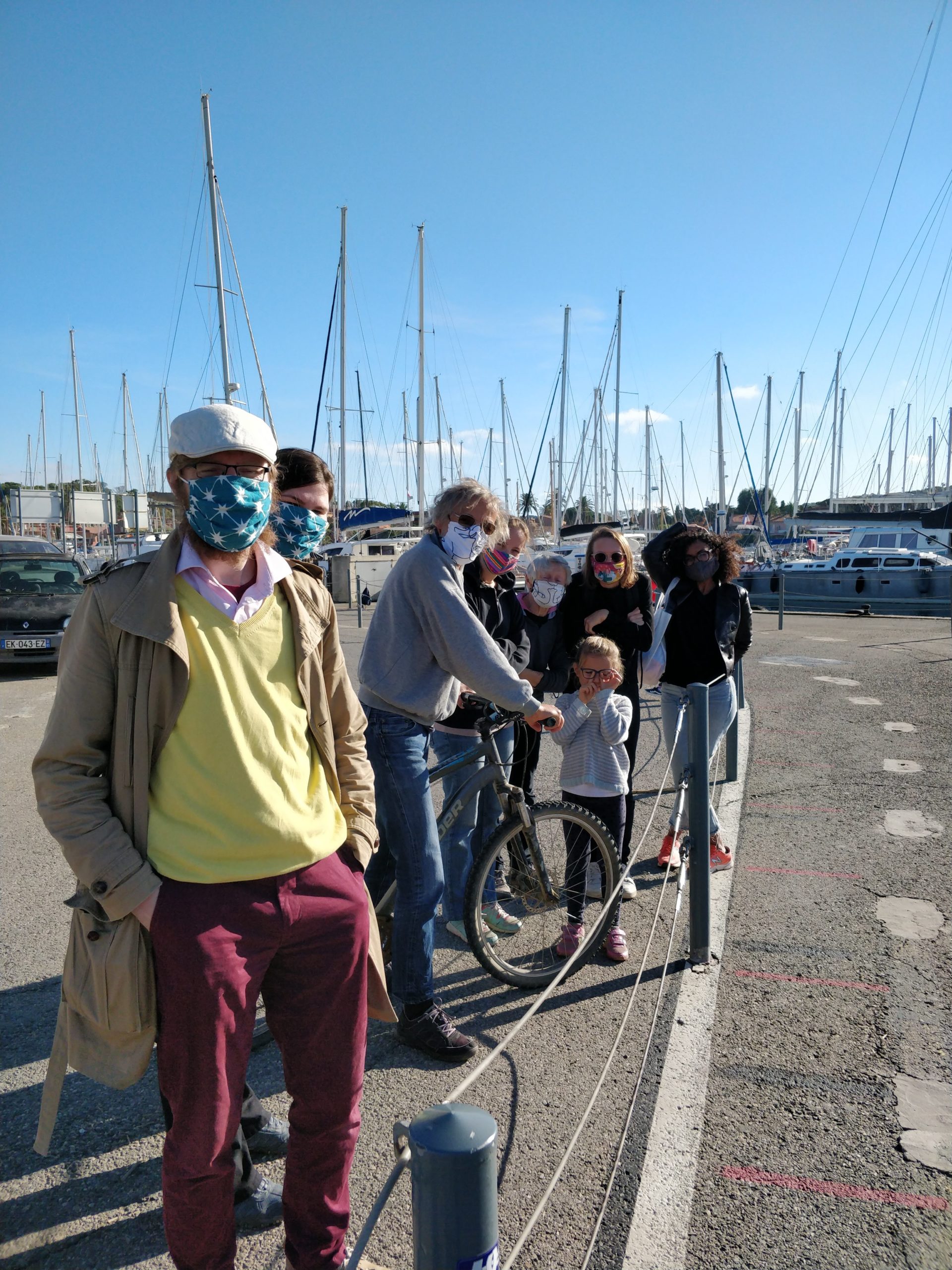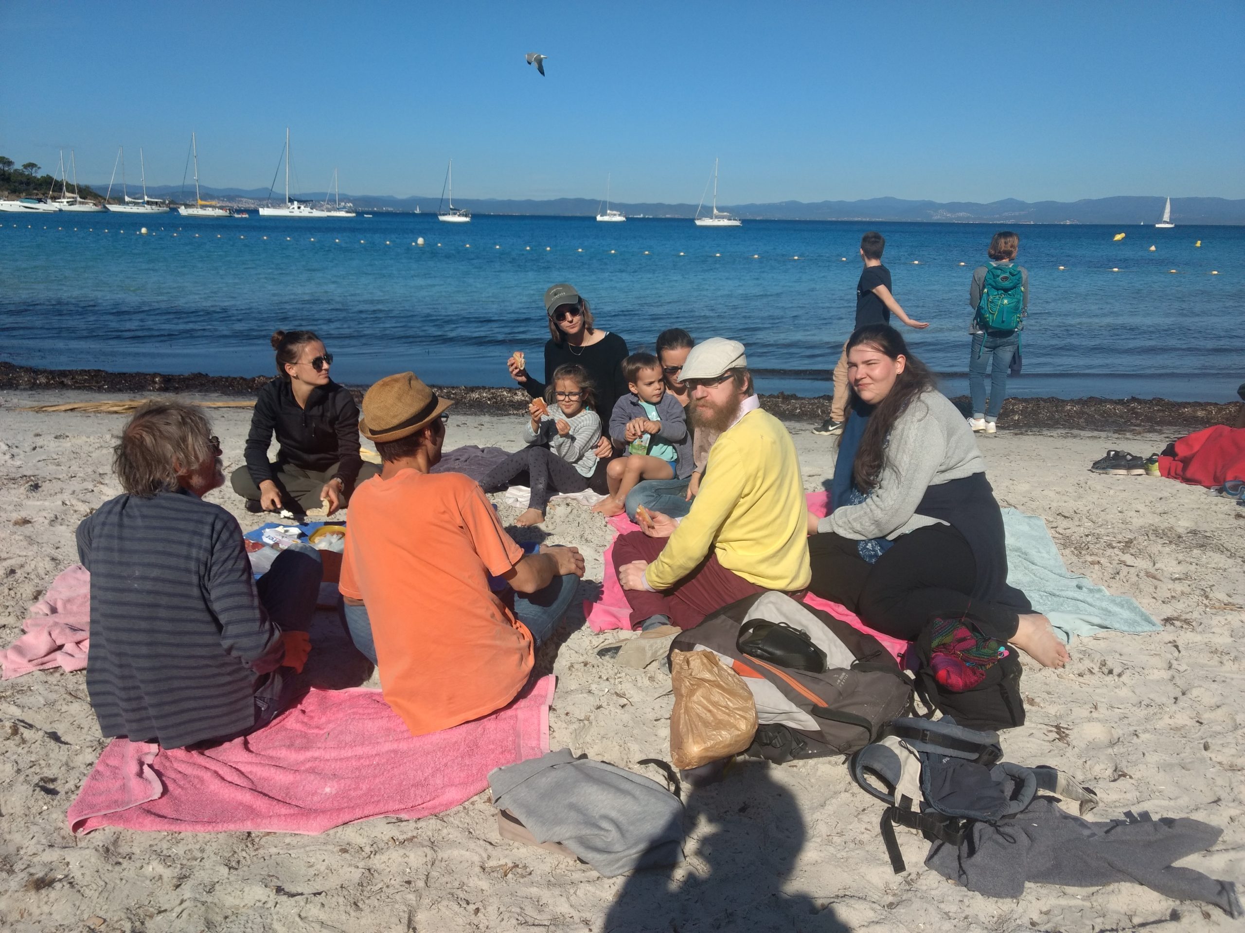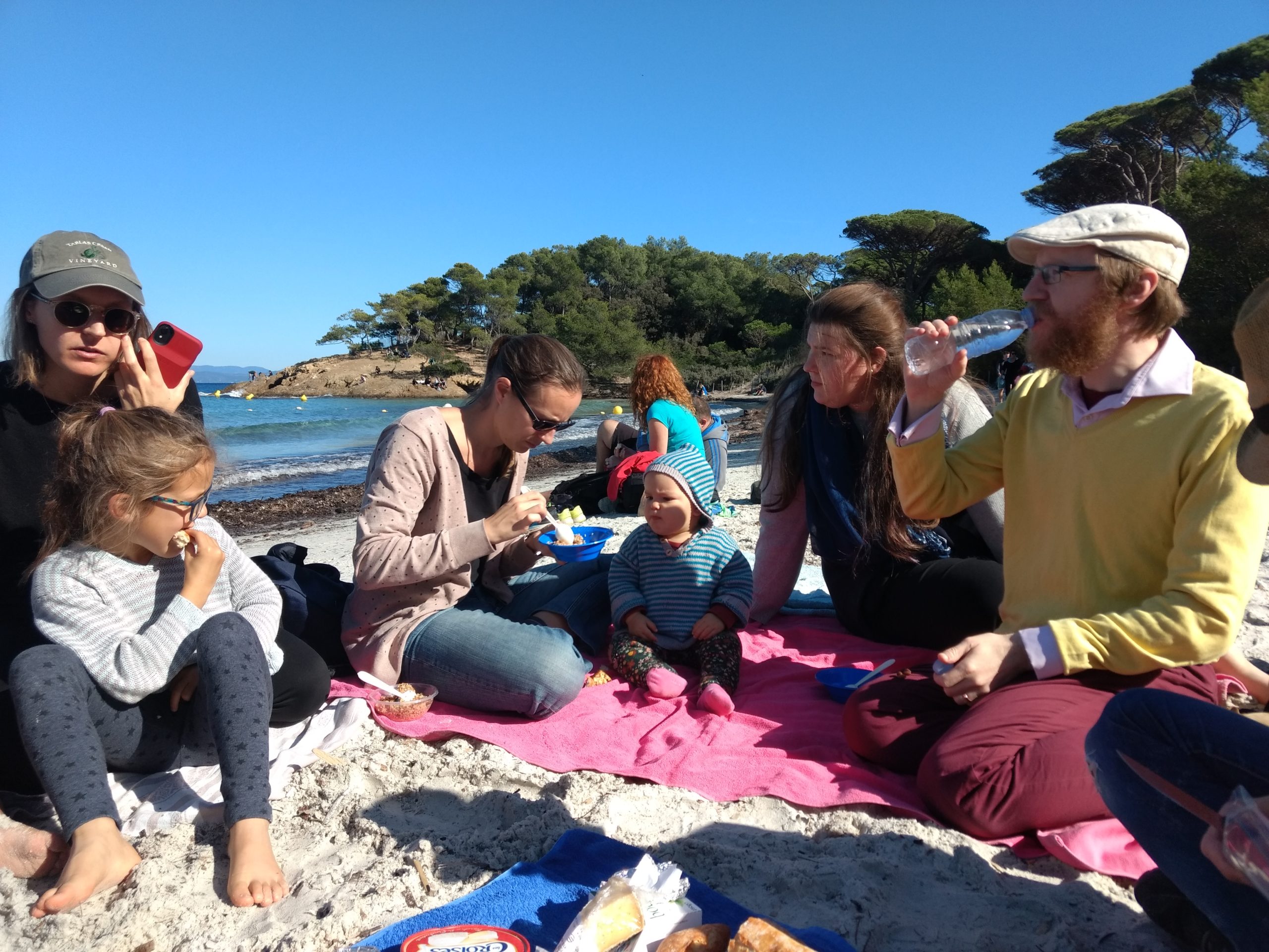 Cette année à Porquerolles, nous étions Geneviève & Éric, Arthur & Tess, Victor & Dalal, Agathe, Jeanne et nous cinq. Au début de notre séjour, le deuxième confinement a été annoncé et les hôtels ont été fermés. L’île s’est alors vidée comme jamais. Heureusement, nous avions loué une maison et avons pu rester jusqu’au dimanche soir. Nous avons quand même pu bien profiter de notre séjour même si les déplacements ont été limités à 1km pendant une heure, Nous n’avons heureusement rencontré aucun contrôle !