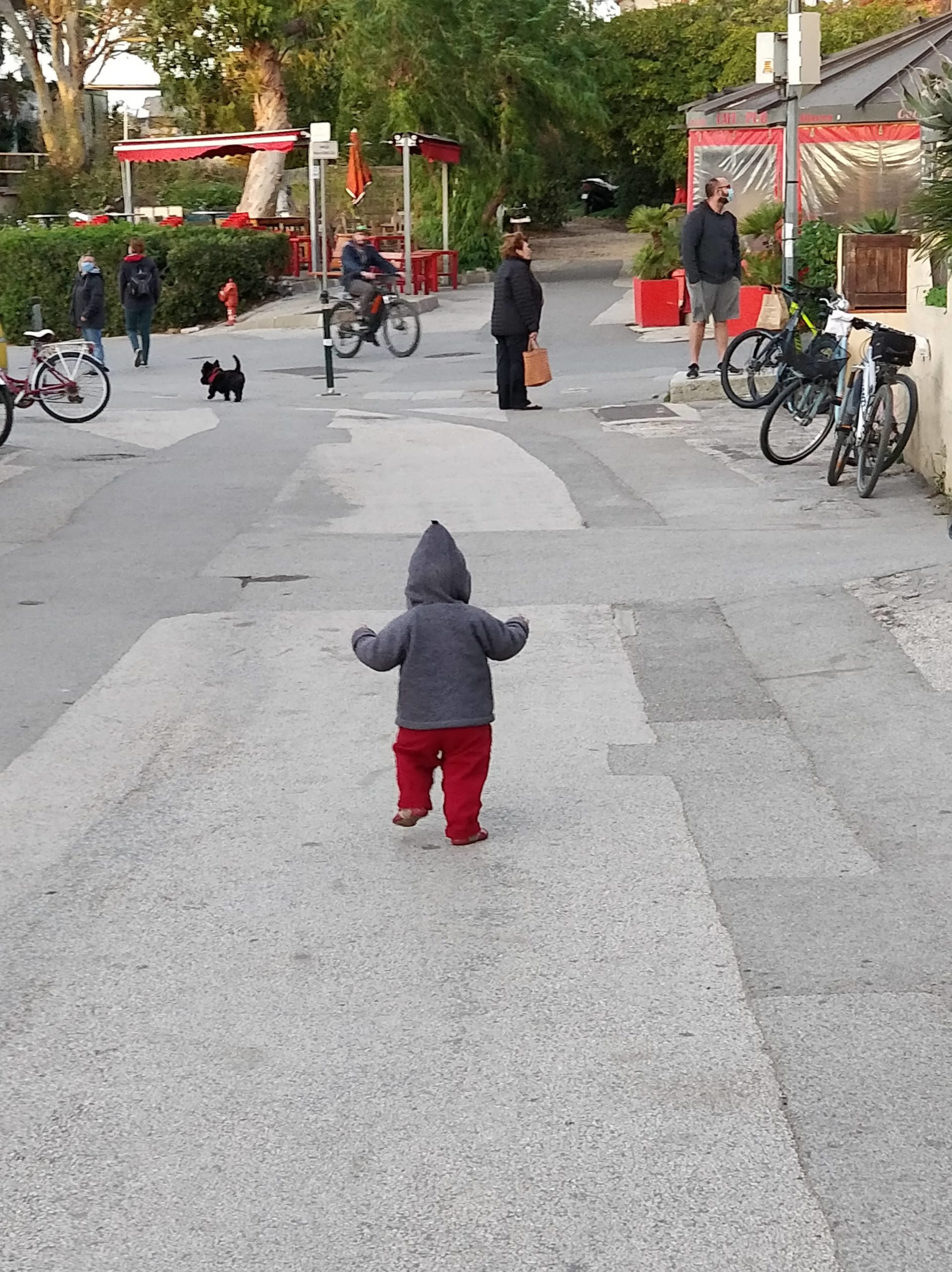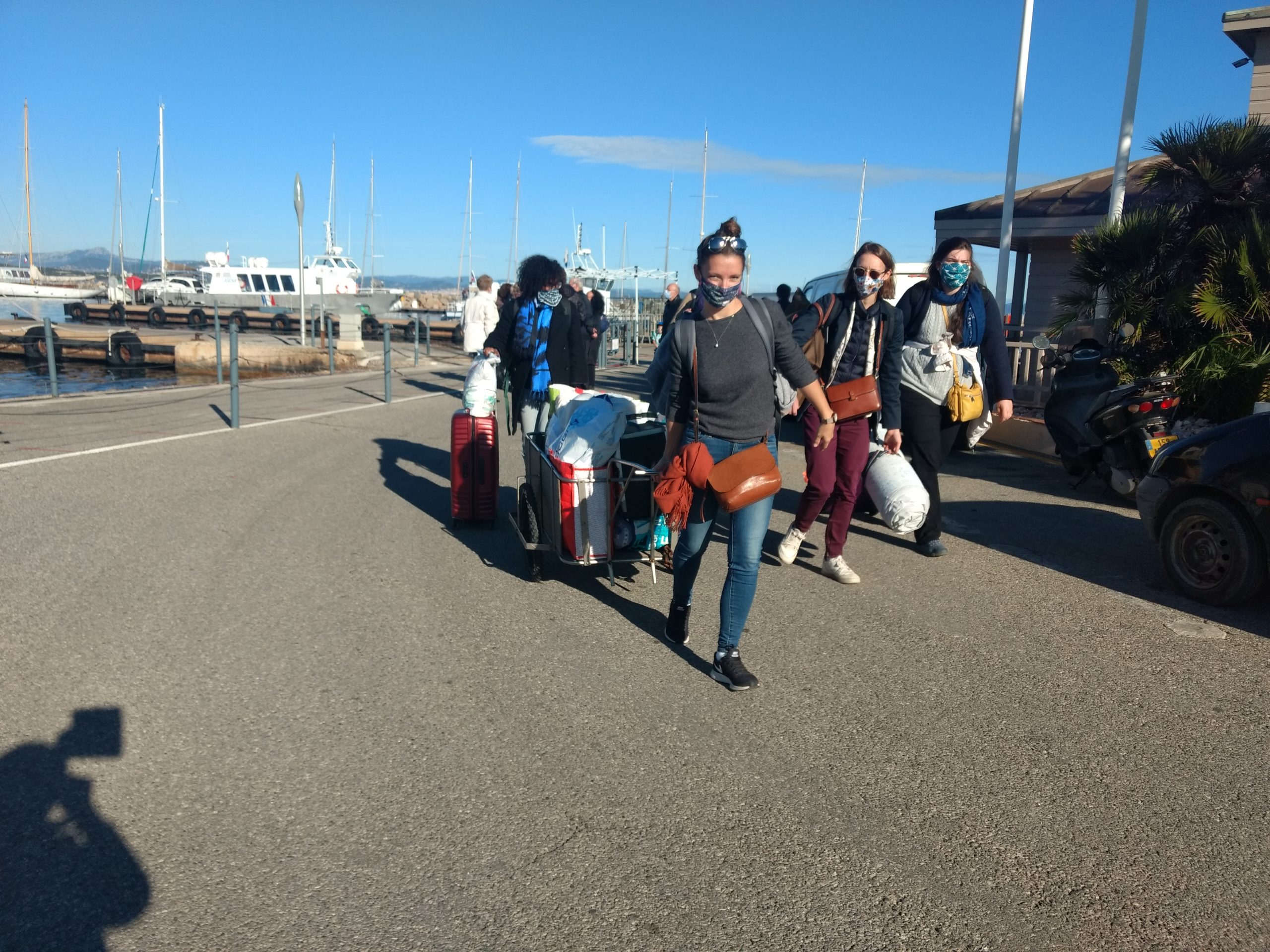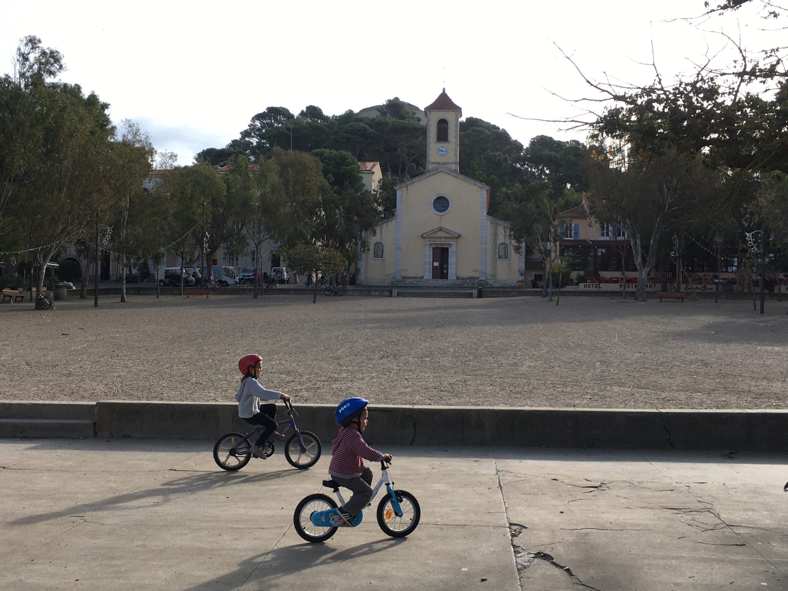 Cette année à Porquerolles, nous étions Geneviève & Éric, Arthur & Tess, Victor & Dalal, Agathe, Jeanne et nous cinq. Au début de notre séjour, le deuxième confinement a été annoncé et les hôtels ont été fermés. L’île s’est alors vidée comme jamais. Heureusement, nous avions loué une maison et avons pu rester jusqu’au dimanche soir. Nous avons quand même pu bien profiter de notre séjour même si les déplacements ont été limités à 1km pendant une heure, Nous n’avons heureusement rencontré aucun contrôle !