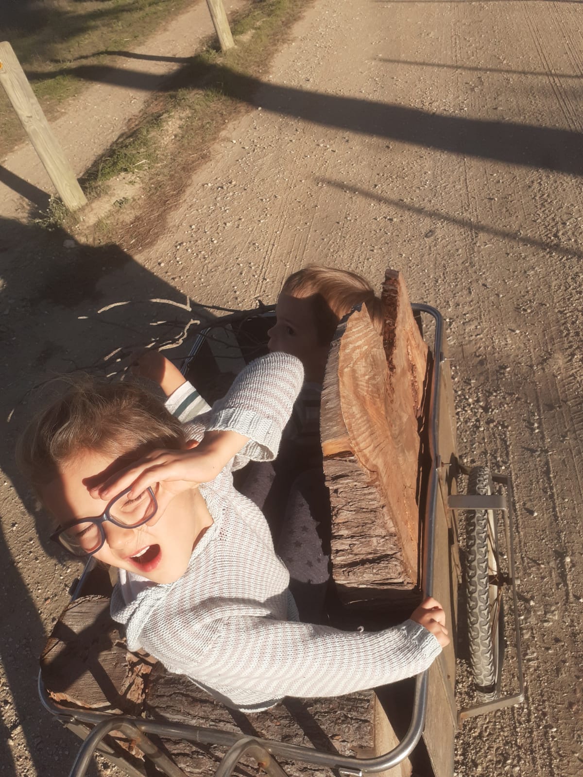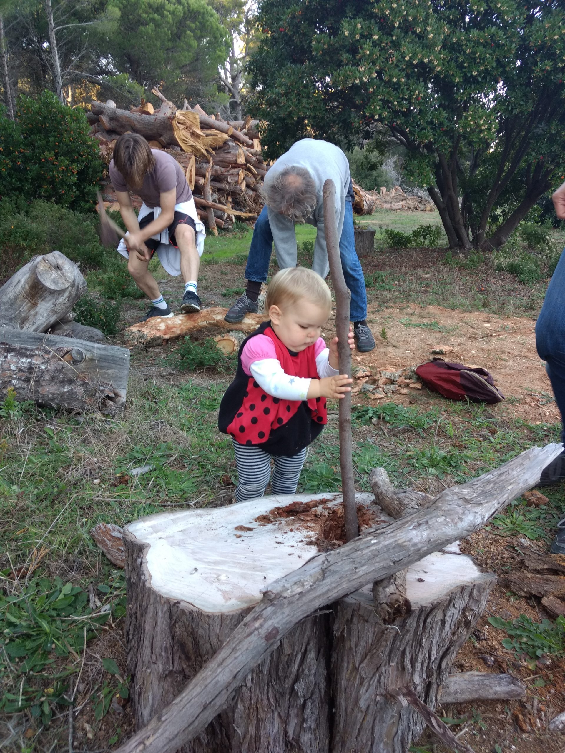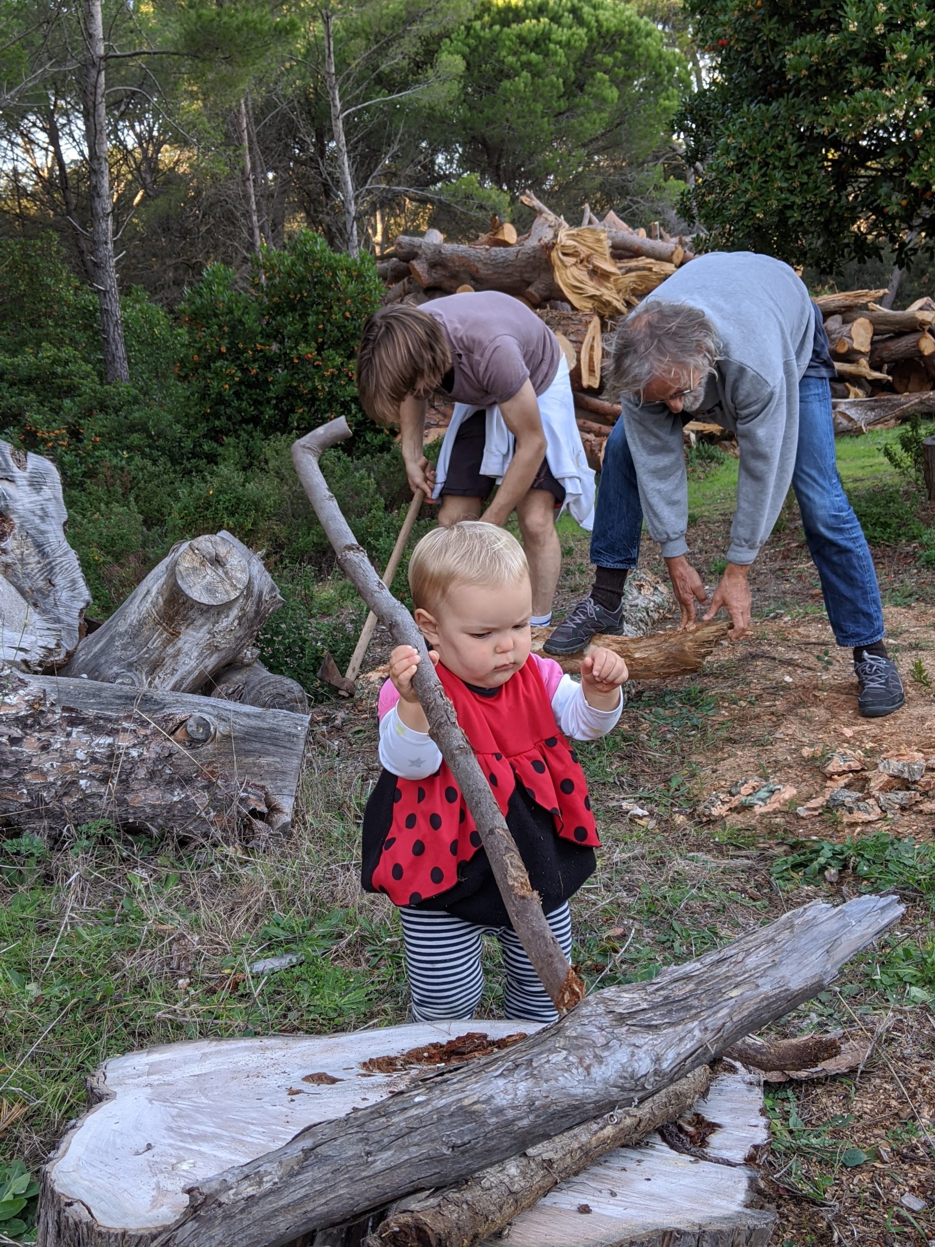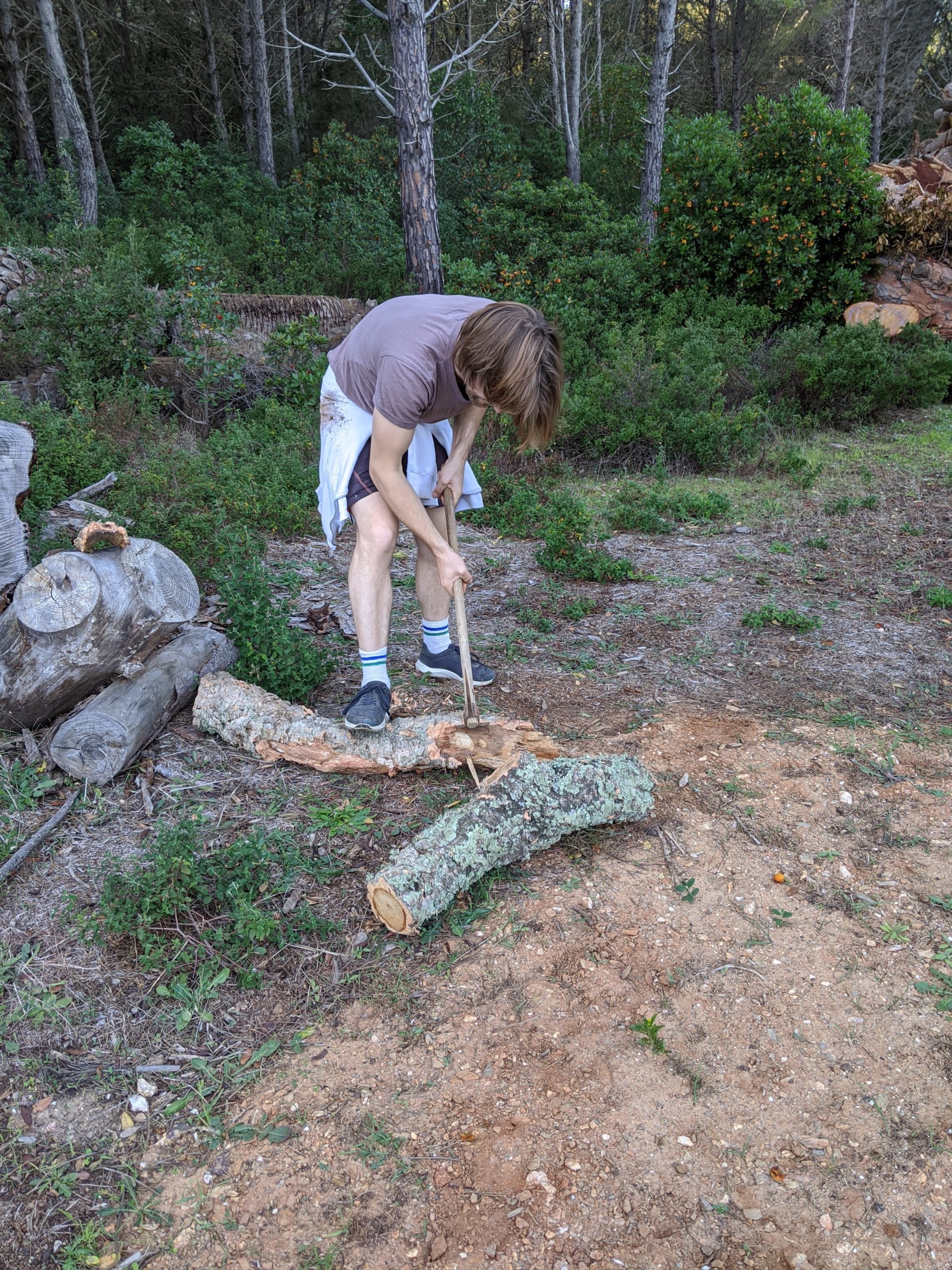 Victor a trouvé, dans un champ, des chênes lièges abattus. Nous sommes donc allés chercher du bois :