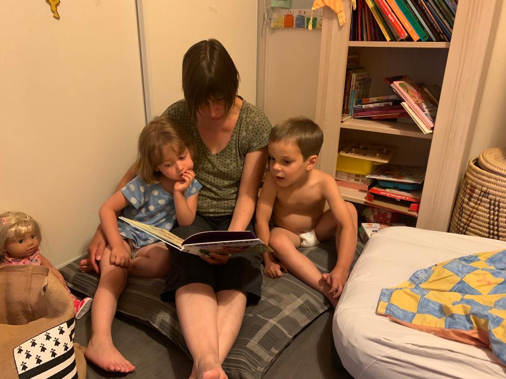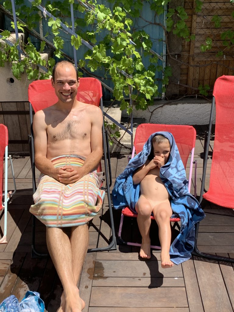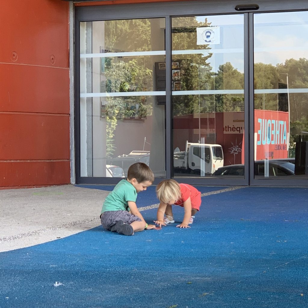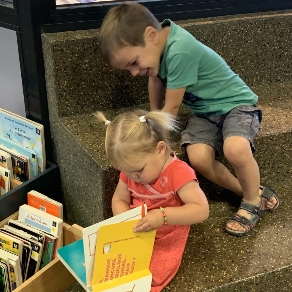 Samedi matin, nous sommes allés à la médiathèque. Émile et Odile étaient particulièrement complices. Puis nous avons profité de la piscine.