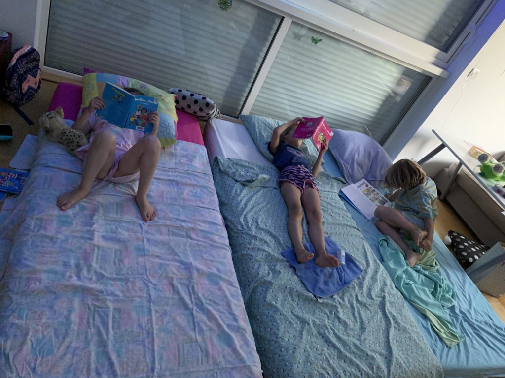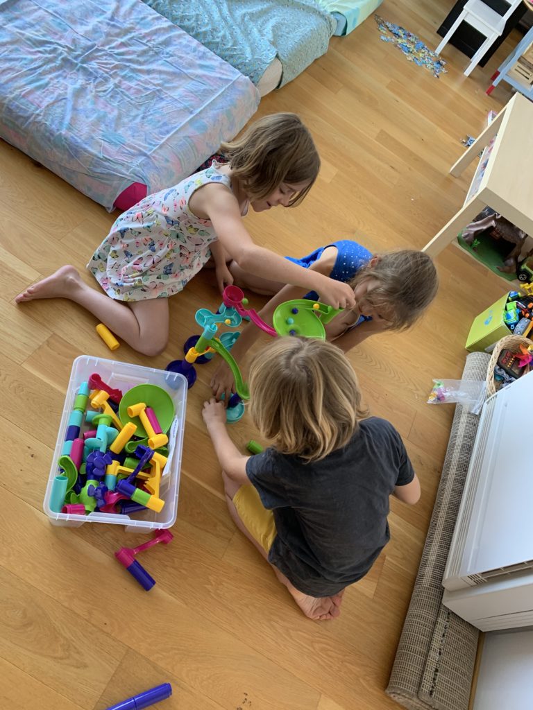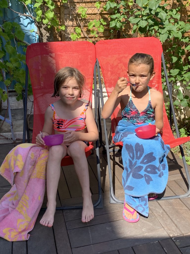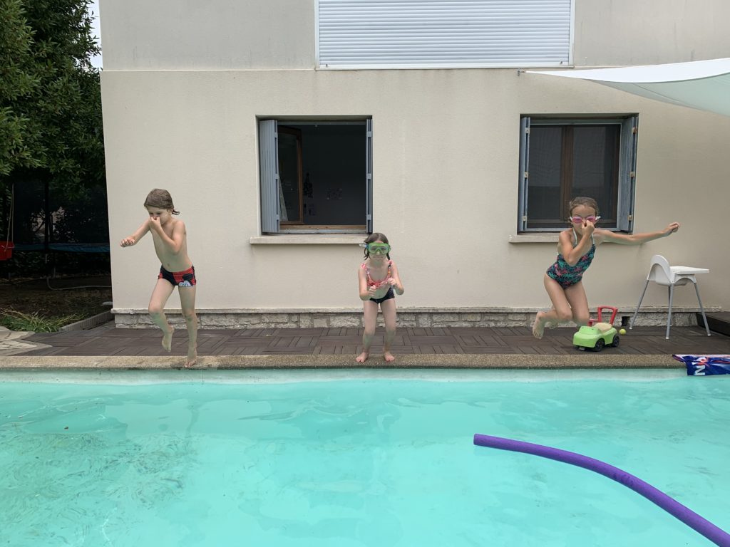 De son côté, Lucie a invité ses amis Timothée et Violette, également pour la nuit. Elle ne parlait que de ça depuis plusieurs jours … En attendant Timothée, les filles se sont baignées, ont mangé des glaces, fait du trampoline, fait un circuit de billes, et installés les lits.