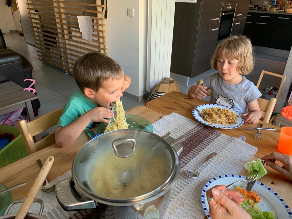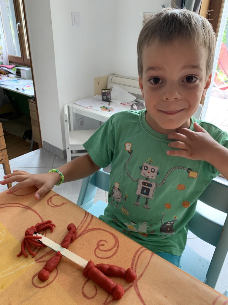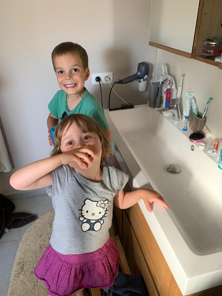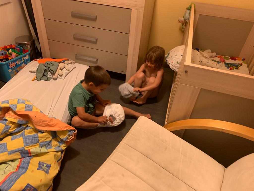 Et le soir, Émile était invité à dormir chez sa copine Lena. C’est sa première invitation à dormir, et il était très fier ! Nous avons préparé ensemble son sac, et il était ravi ! Je ne suis pas restée, mais voici les photos prises par mon espionne sur place.