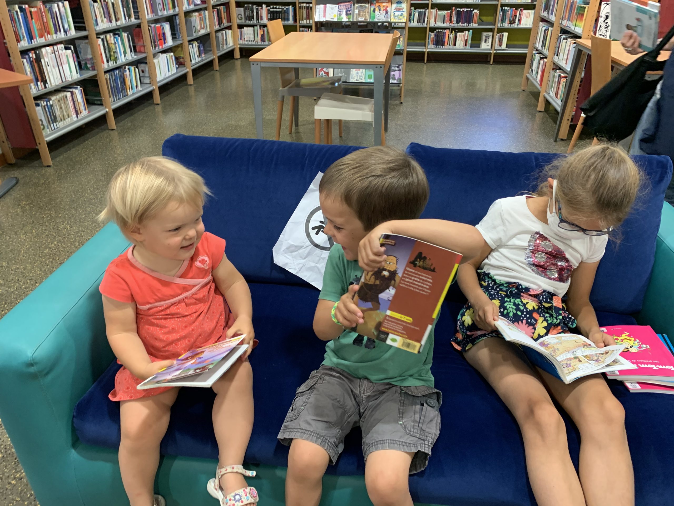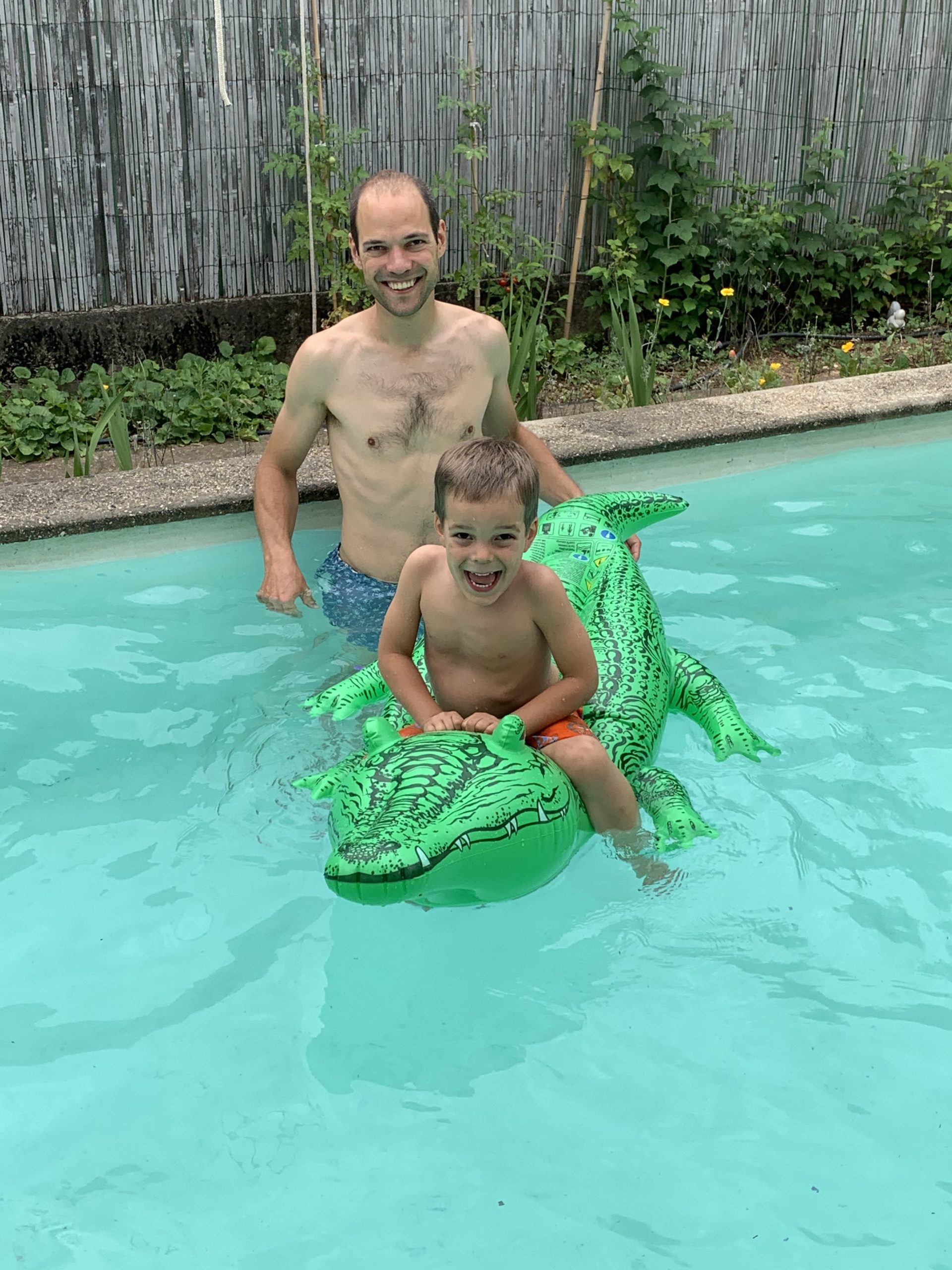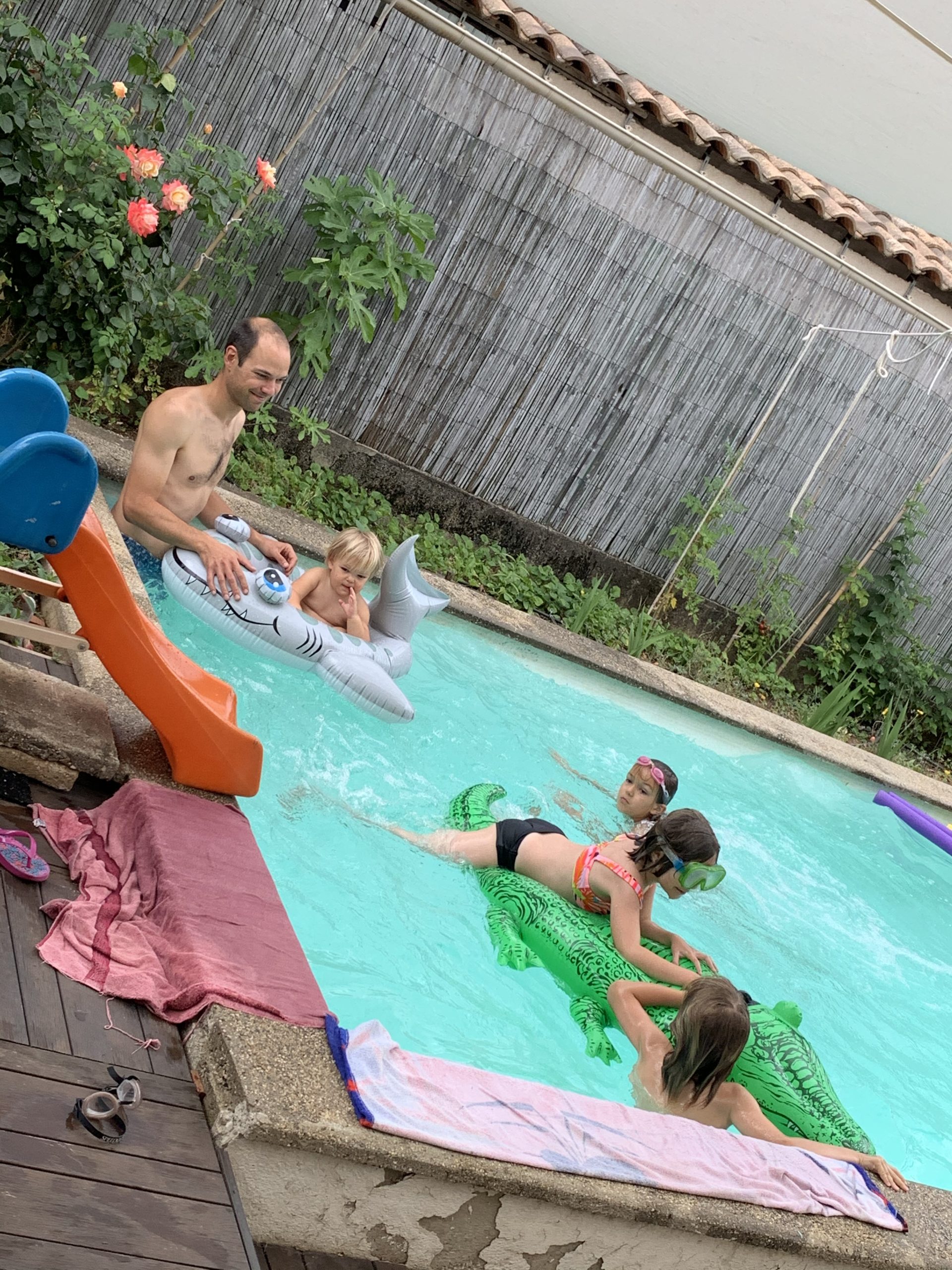 Samedi matin, nous sommes allés à la médiathèque. Émile et Odile étaient particulièrement complices. Puis nous avons profité de la piscine.