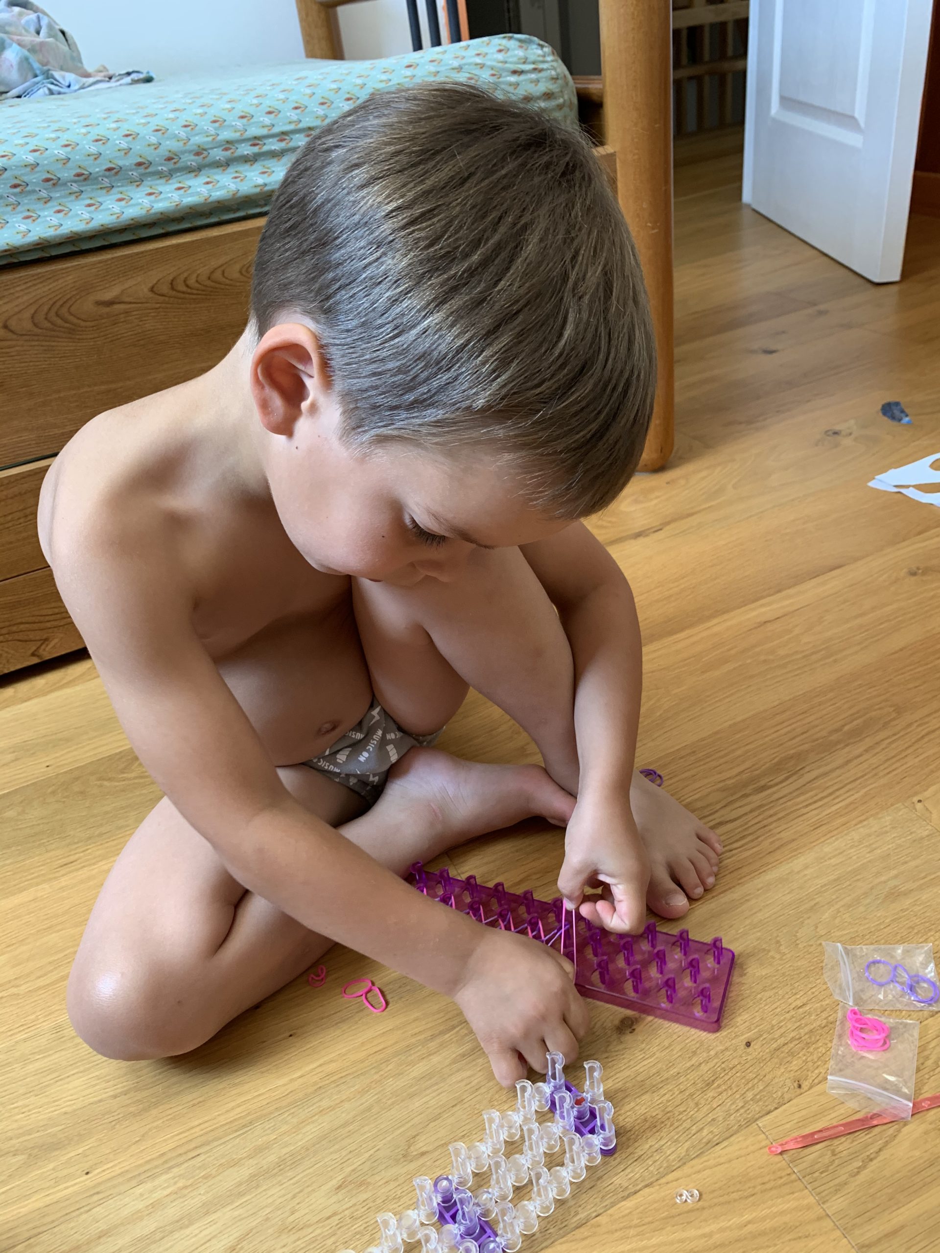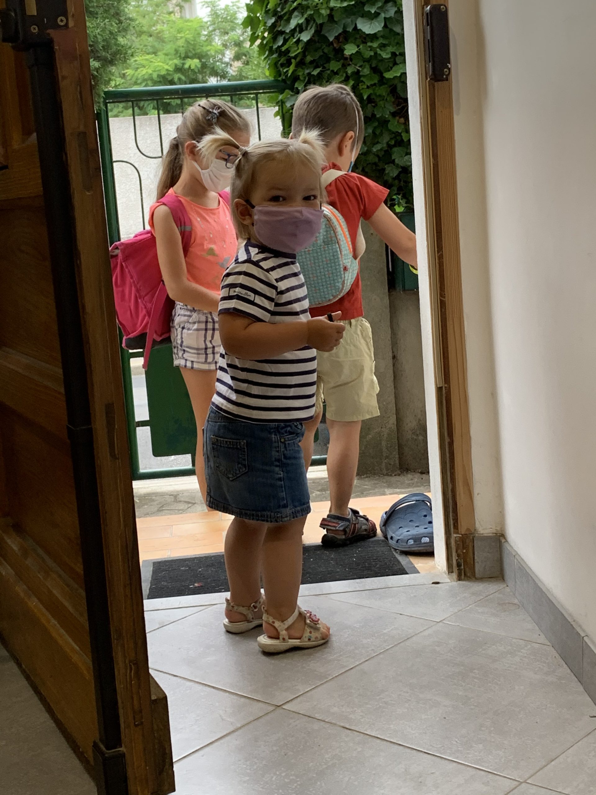 Et le soir, Émile était invité à dormir chez sa copine Lena. C’est sa première invitation à dormir, et il était très fier ! Nous avons préparé ensemble son sac, et il était ravi ! Je ne suis pas restée, mais voici les photos prises par mon espionne sur place.