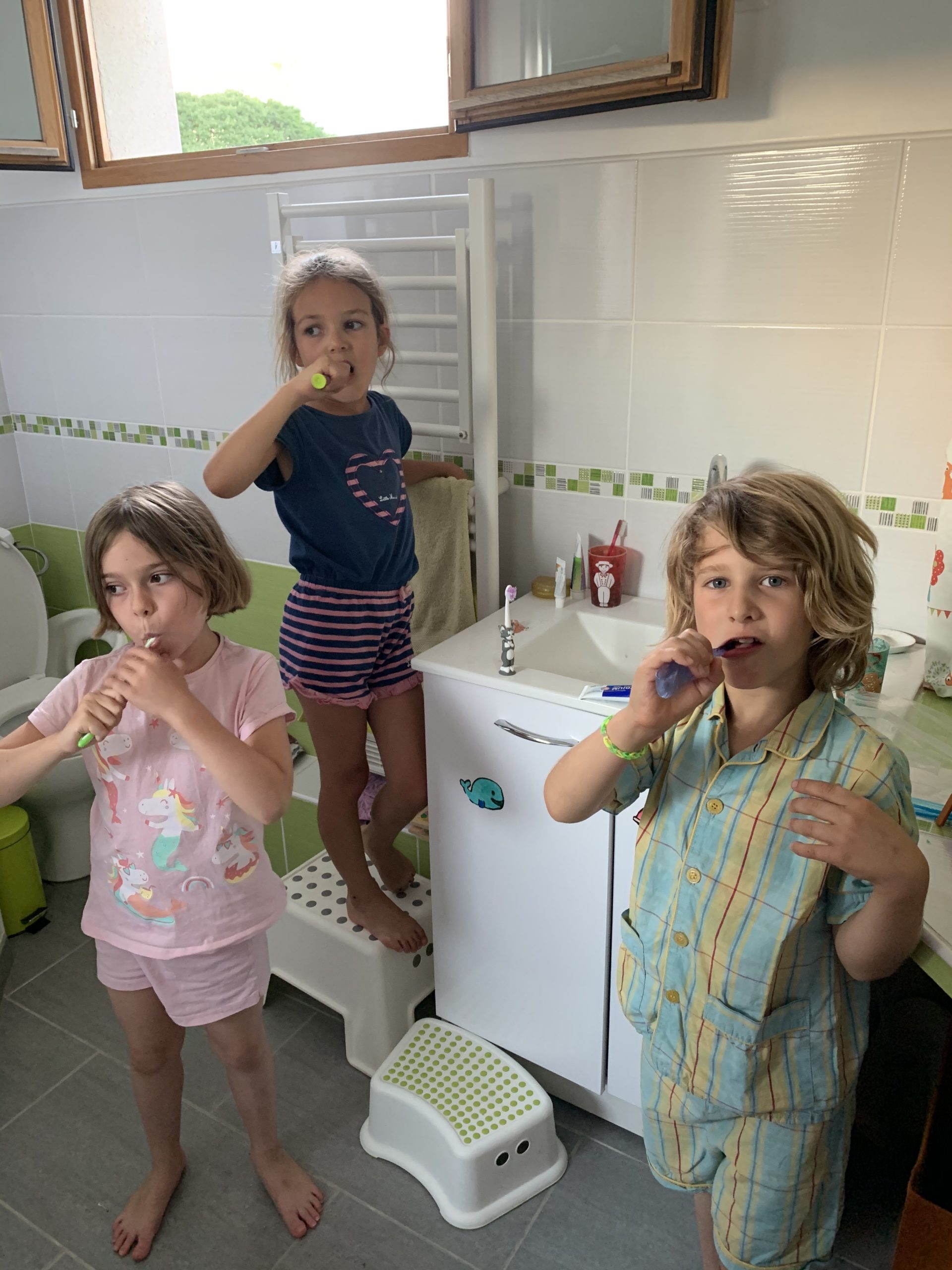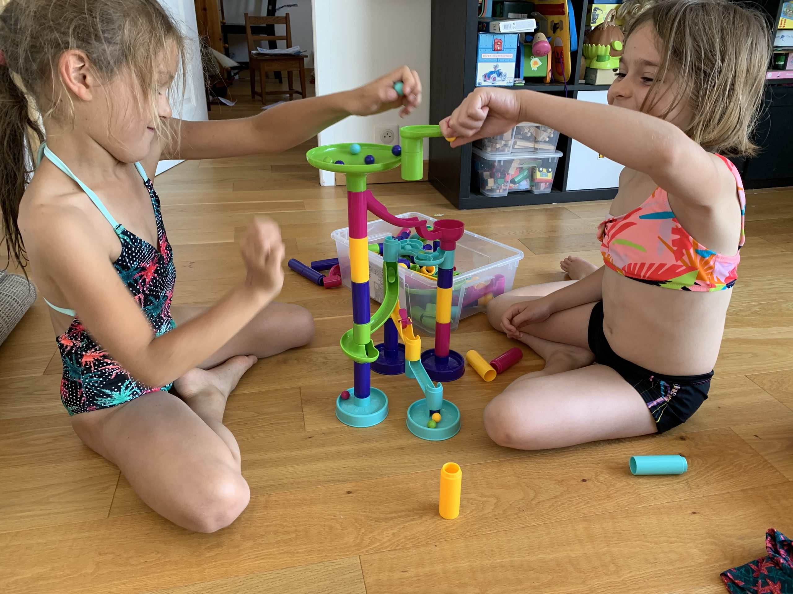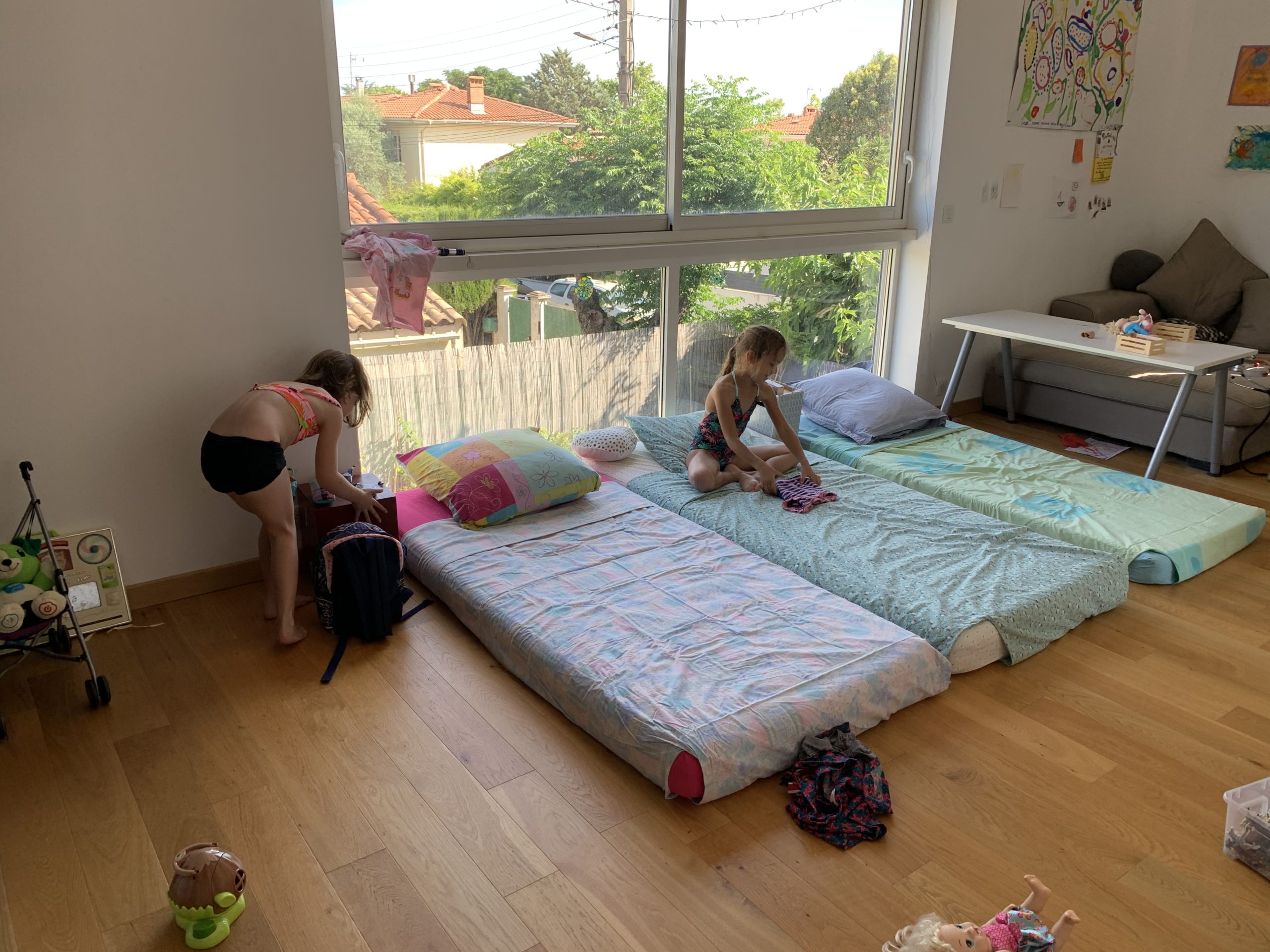 De son côté, Lucie a invité ses amis Timothée et Violette, également pour la nuit. Elle ne parlait que de ça depuis plusieurs jours … En attendant Timothée, les filles se sont baignées, ont mangé des glaces, fait du trampoline, fait un circuit de billes, et installés les lits.