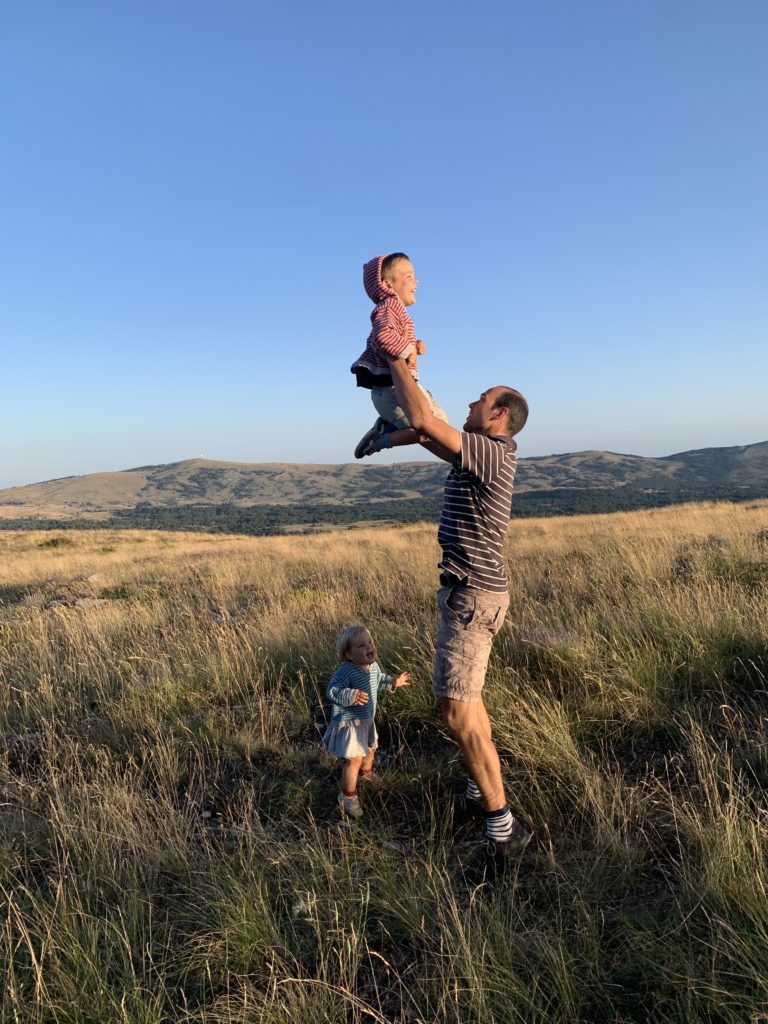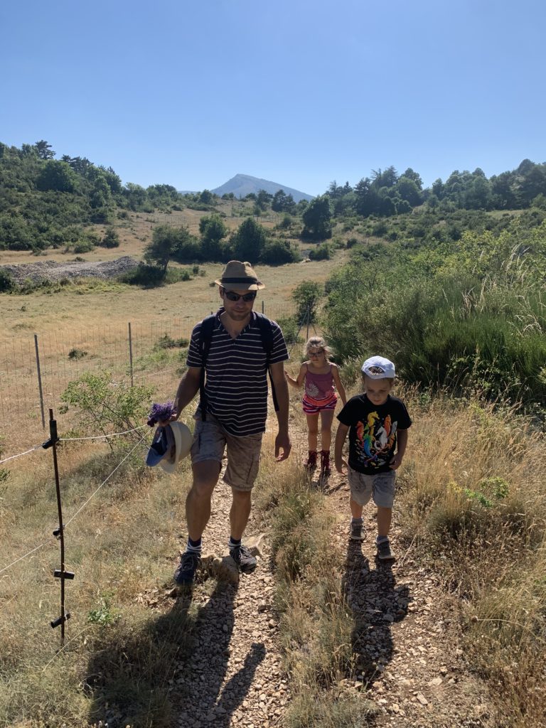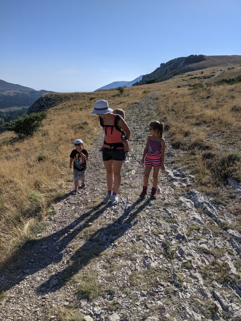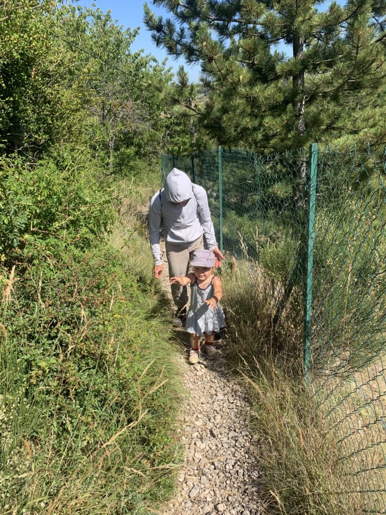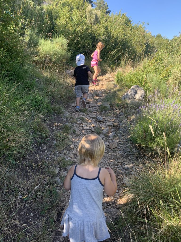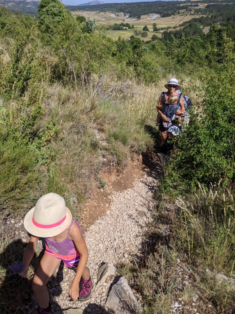 Comme le veut maintenant la tradition, nous sommes allés camper cette nuit. Grand-papa et Grand-maman nous ont amené sur le plateau de Calern, tout près de l’observatoire. Nous avons ainsi pu monter à pied, tandis que Grand-papa amenait les affaires en voiture, pas trop loin de notre endroit de camping. Lucie et Émile ont monté les 200m de dénivelé sans râler, Odile a aussi bien marché avec ses petites jambes, mais je l’ai aussi portée en manduca bien sûr.