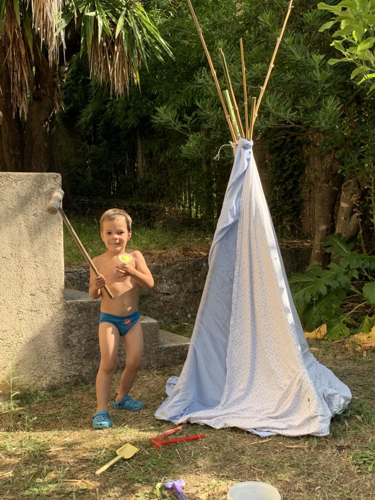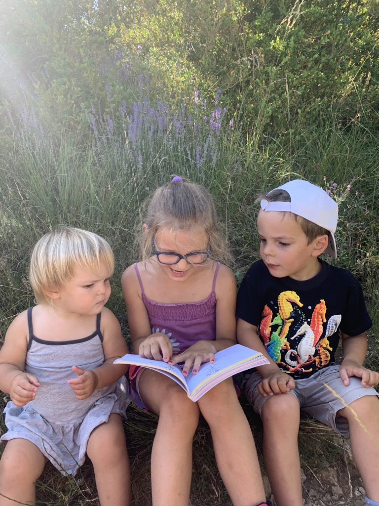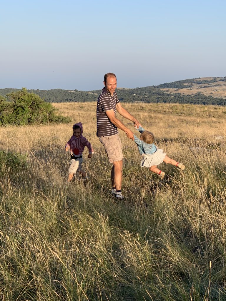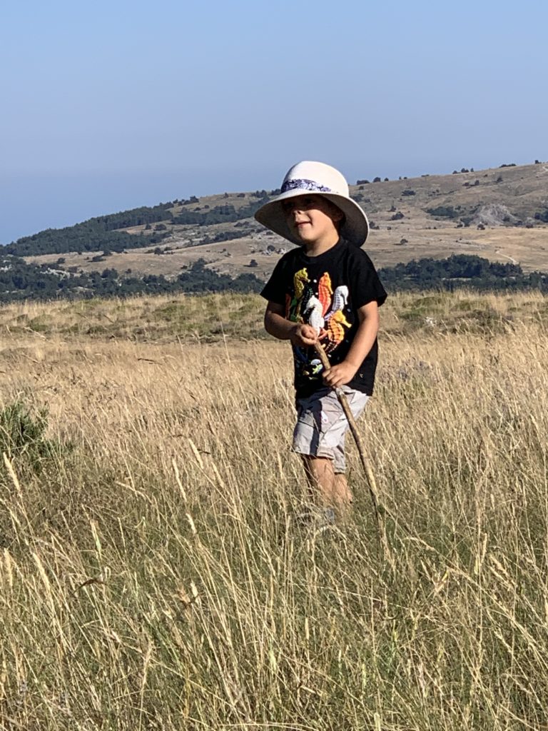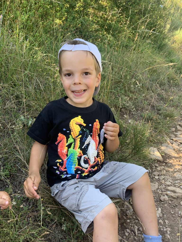 Comme le veut maintenant la tradition, nous sommes allés camper cette nuit. Grand-papa et Grand-maman nous ont amené sur le plateau de Calern, tout près de l’observatoire. Nous avons ainsi pu monter à pied, tandis que Grand-papa amenait les affaires en voiture, pas trop loin de notre endroit de camping. Lucie et Émile ont monté les 200m de dénivelé sans râler, Odile a aussi bien marché avec ses petites jambes, mais je l’ai aussi portée en manduca bien sûr.