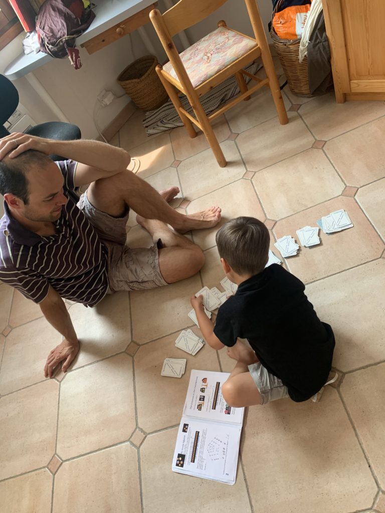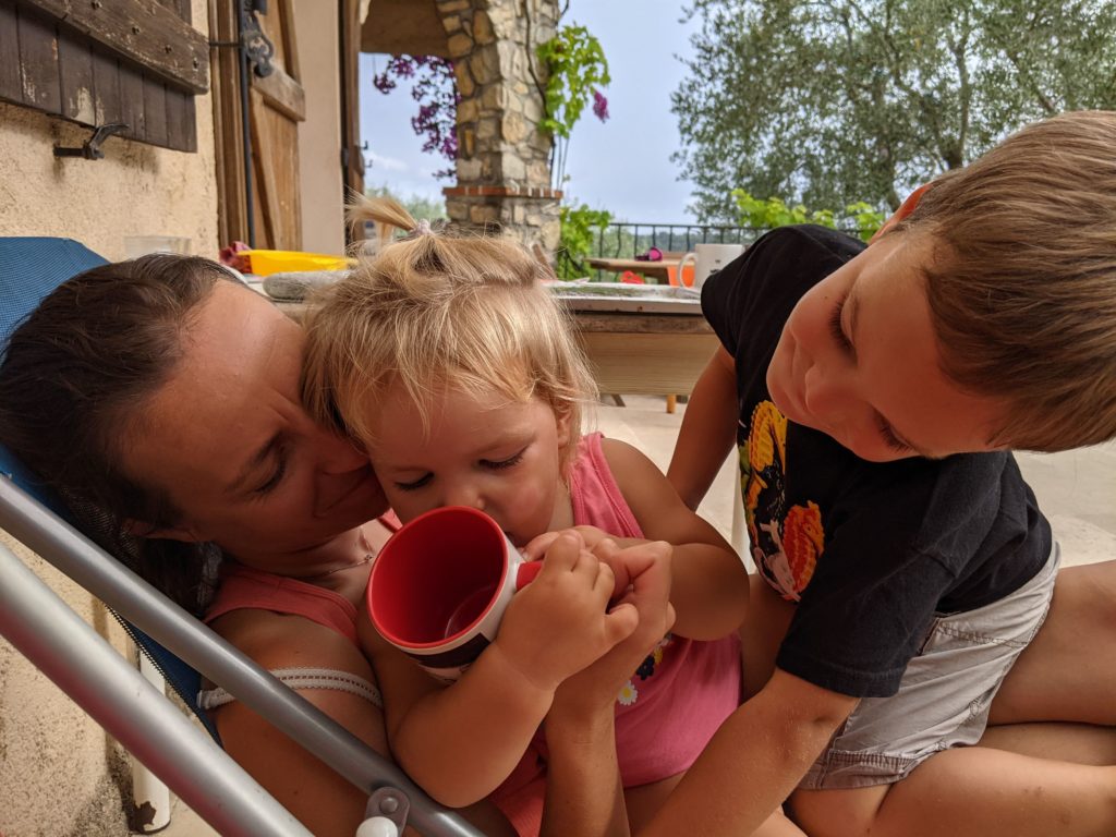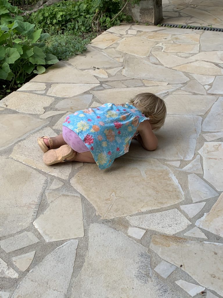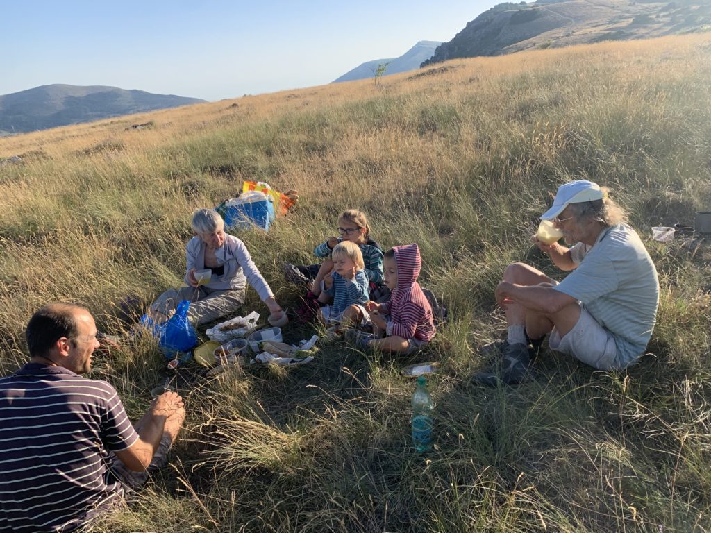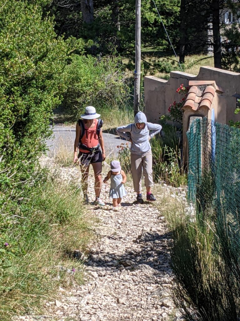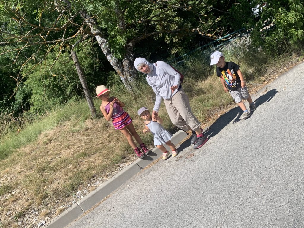 Comme le veut maintenant la tradition, nous sommes allés camper cette nuit. Grand-papa et Grand-maman nous ont amené sur le plateau de Calern, tout près de l’observatoire. Nous avons ainsi pu monter à pied, tandis que Grand-papa amenait les affaires en voiture, pas trop loin de notre endroit de camping. Lucie et Émile ont monté les 200m de dénivelé sans râler, Odile a aussi bien marché avec ses petites jambes, mais je l’ai aussi portée en manduca bien sûr.