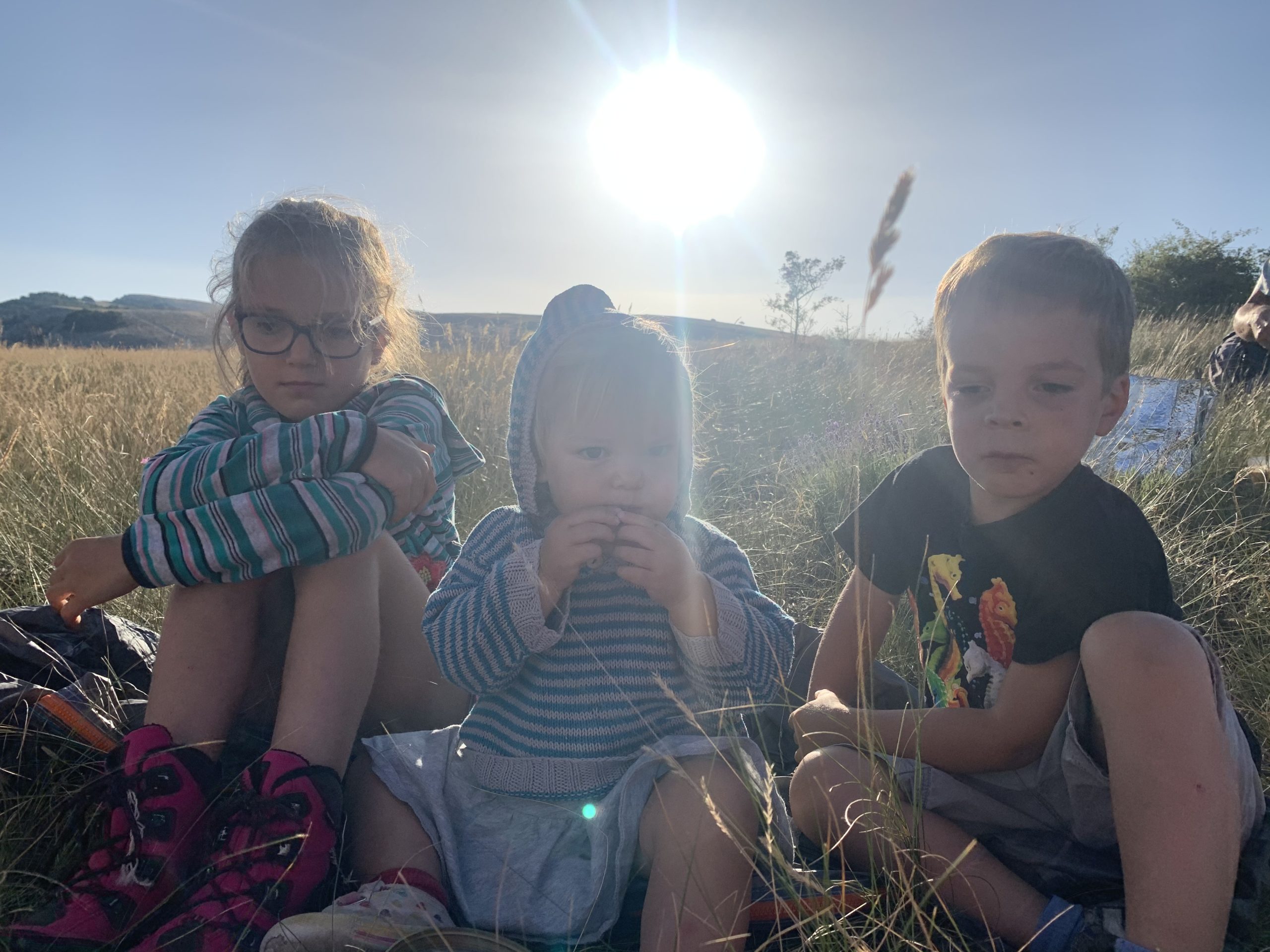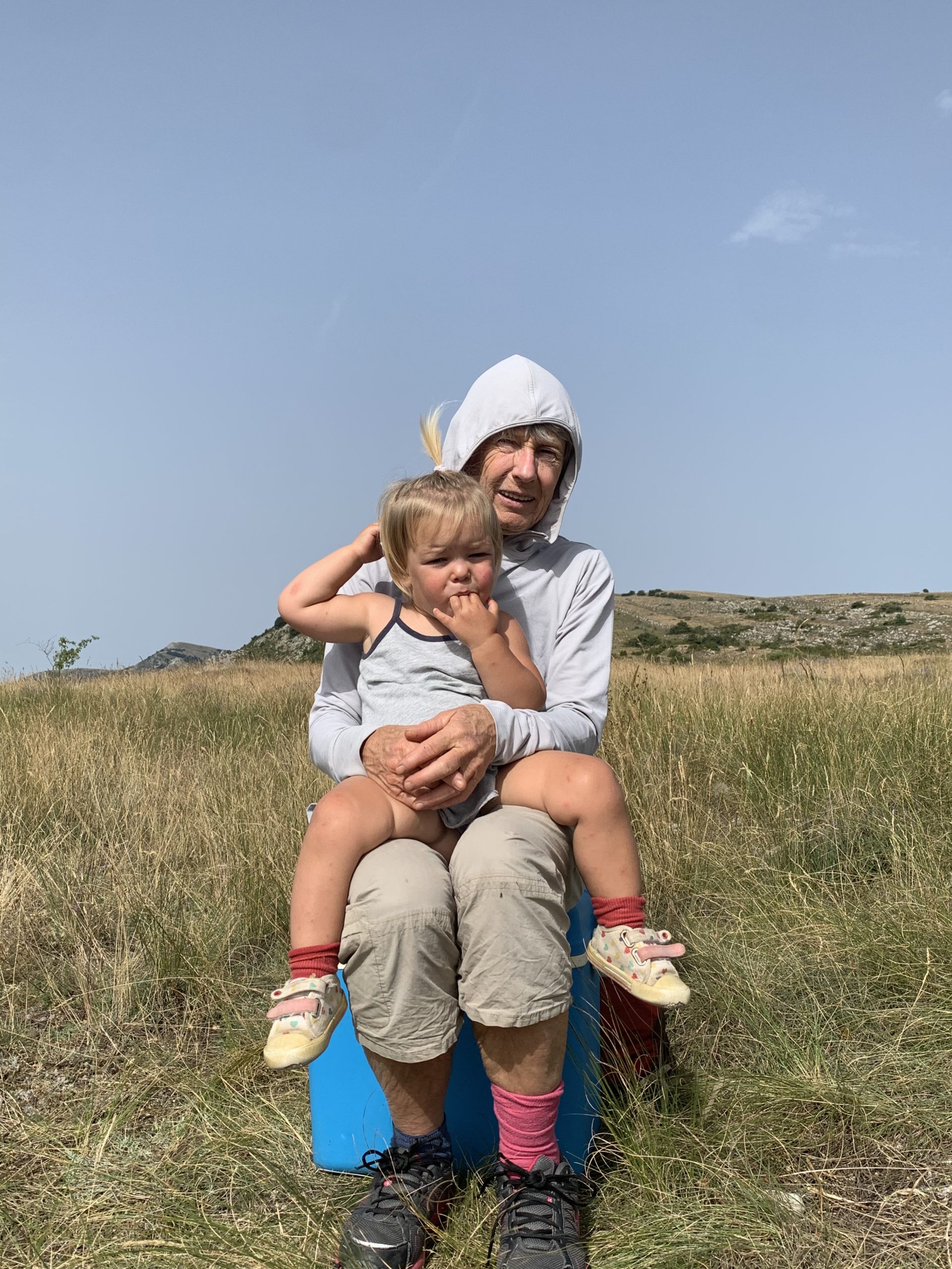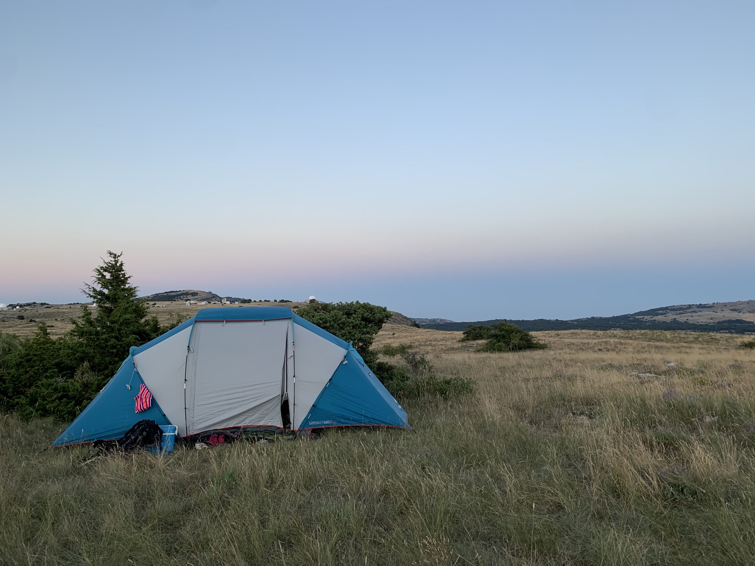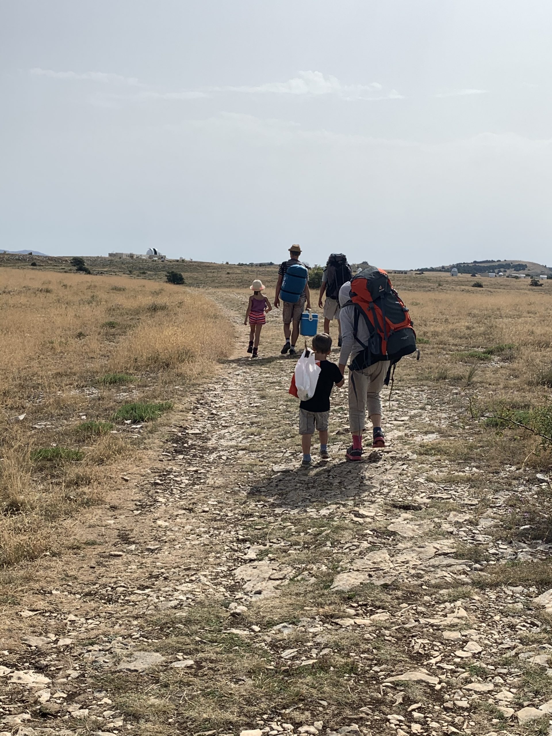 Comme le veut maintenant la tradition, nous sommes allés camper cette nuit. Grand-papa et Grand-maman nous ont amené sur le plateau de Calern, tout près de l’observatoire. Nous avons ainsi pu monter à pied, tandis que Grand-papa amenait les affaires en voiture, pas trop loin de notre endroit de camping. Lucie et Émile ont monté les 200m de dénivelé sans râler, Odile a aussi bien marché avec ses petites jambes, mais je l’ai aussi portée en manduca bien sûr.