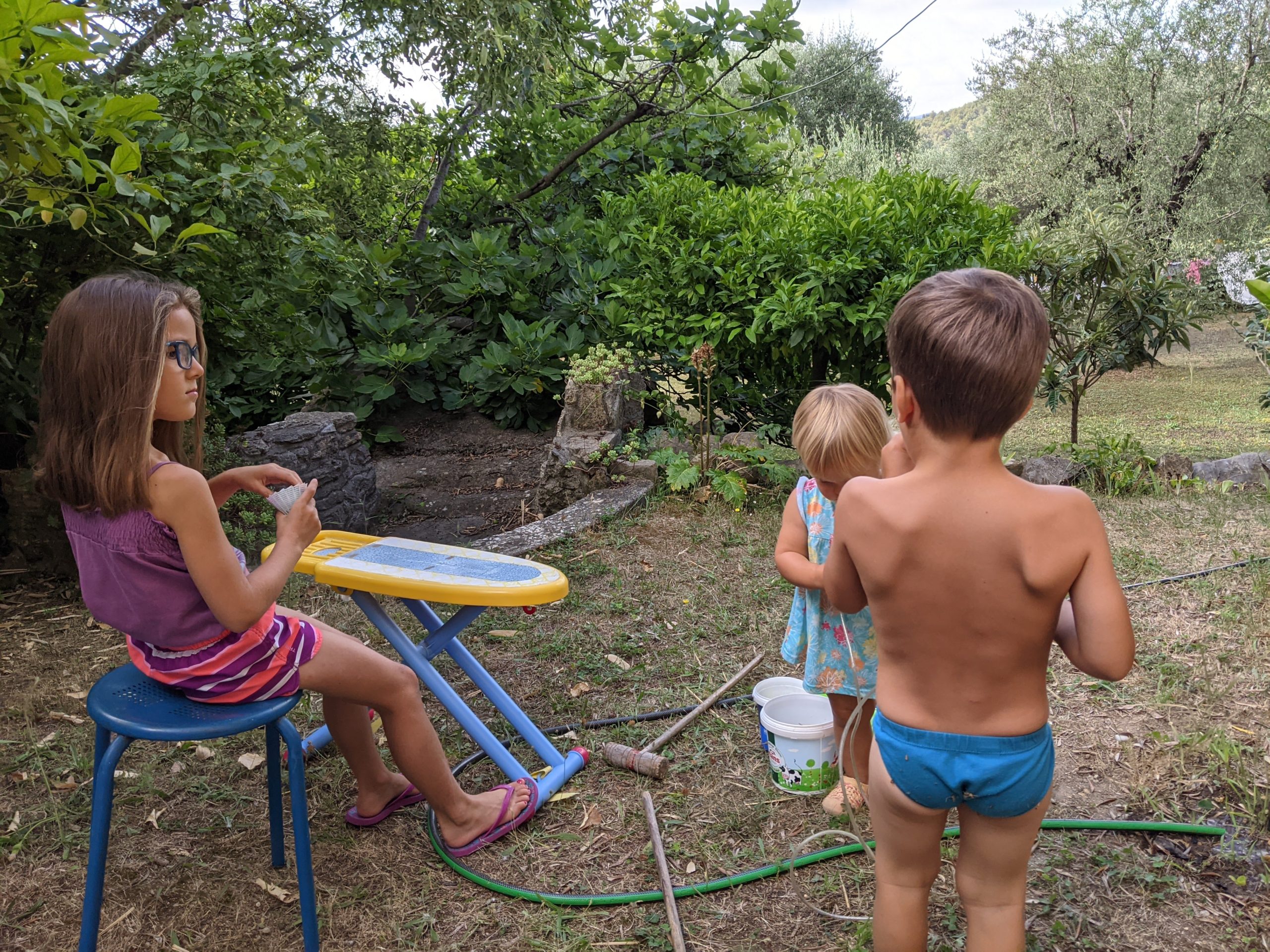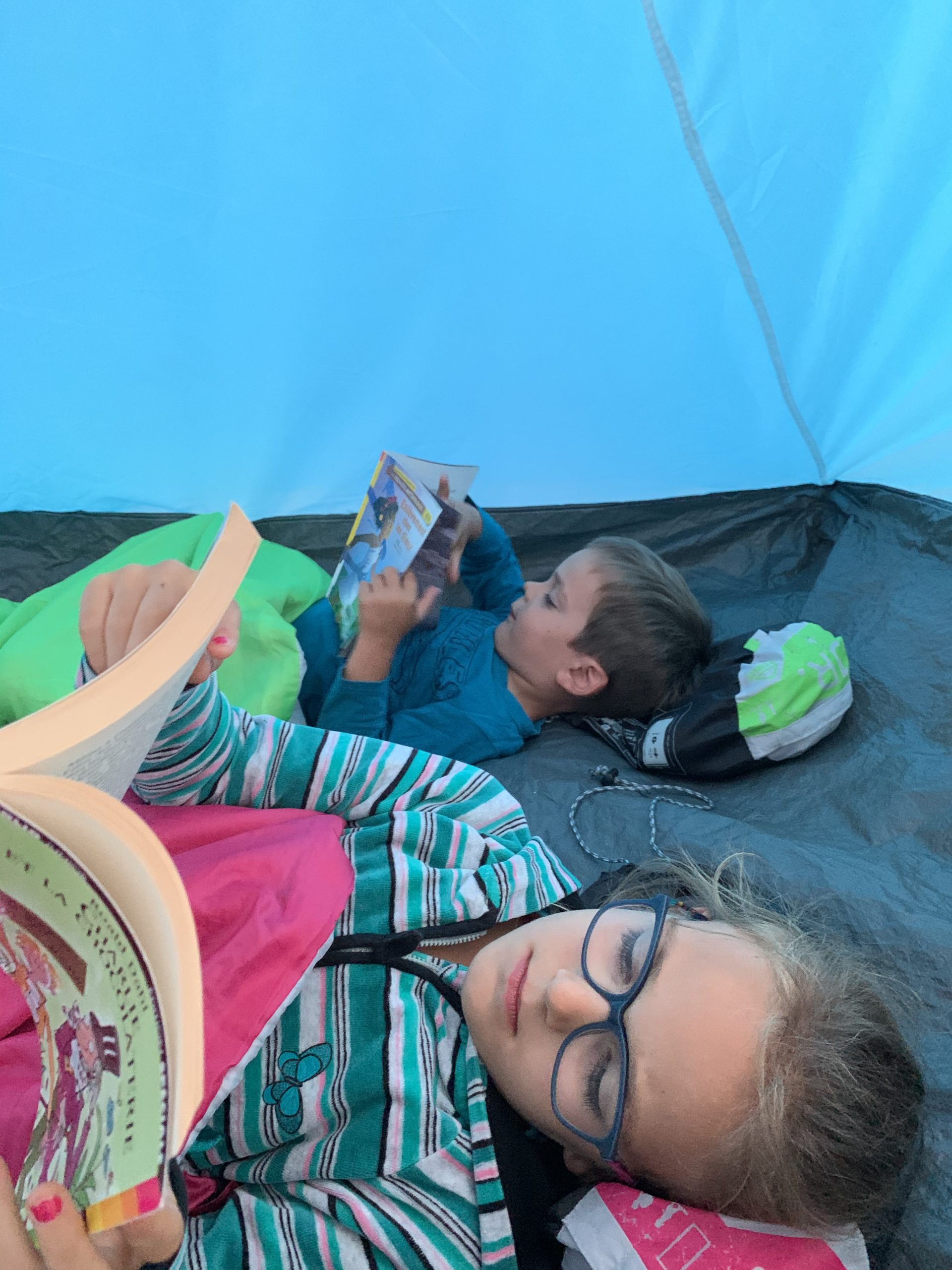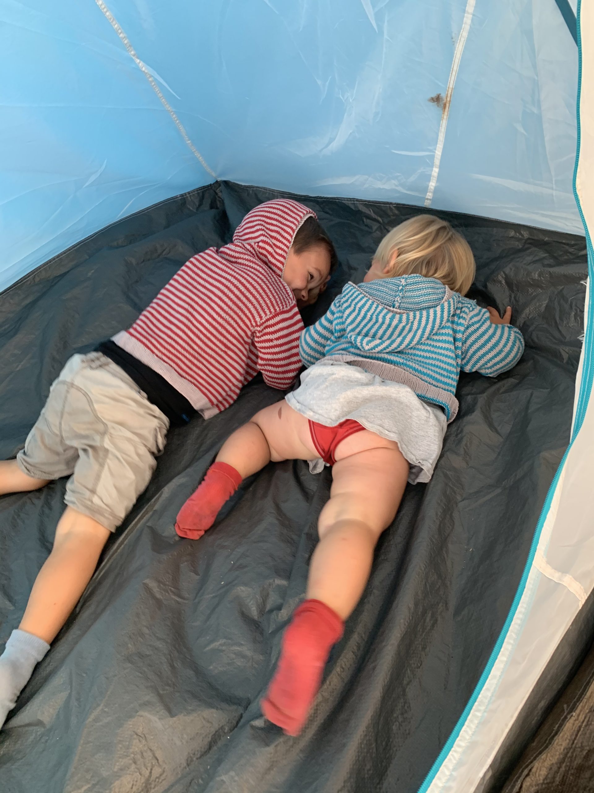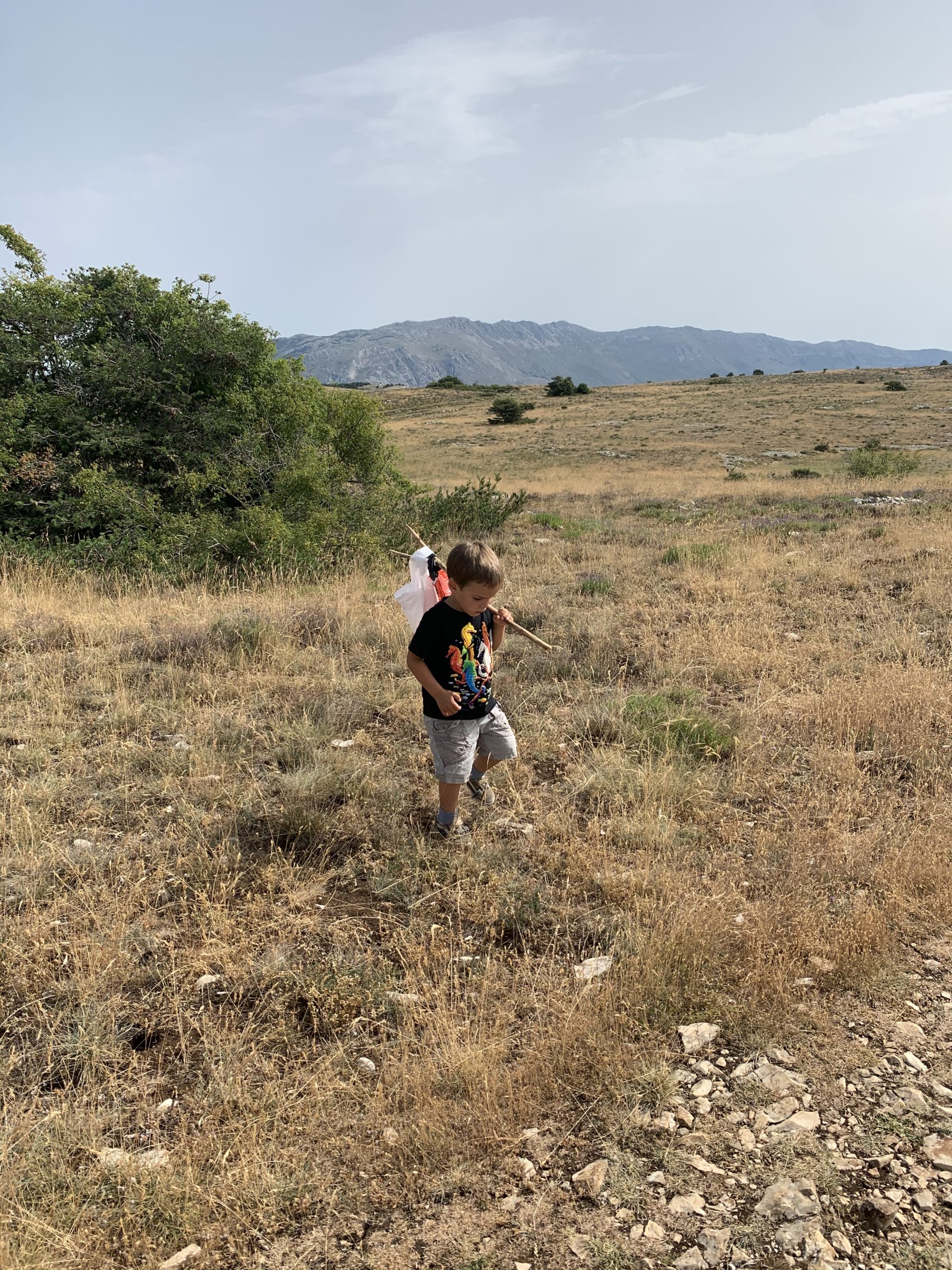 Comme le veut maintenant la tradition, nous sommes allés camper cette nuit. Grand-papa et Grand-maman nous ont amené sur le plateau de Calern, tout près de l’observatoire. Nous avons ainsi pu monter à pied, tandis que Grand-papa amenait les affaires en voiture, pas trop loin de notre endroit de camping. Lucie et Émile ont monté les 200m de dénivelé sans râler, Odile a aussi bien marché avec ses petites jambes, mais je l’ai aussi portée en manduca bien sûr.