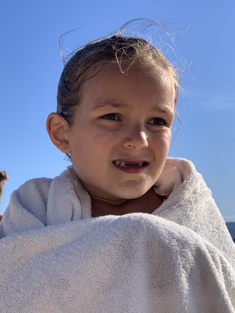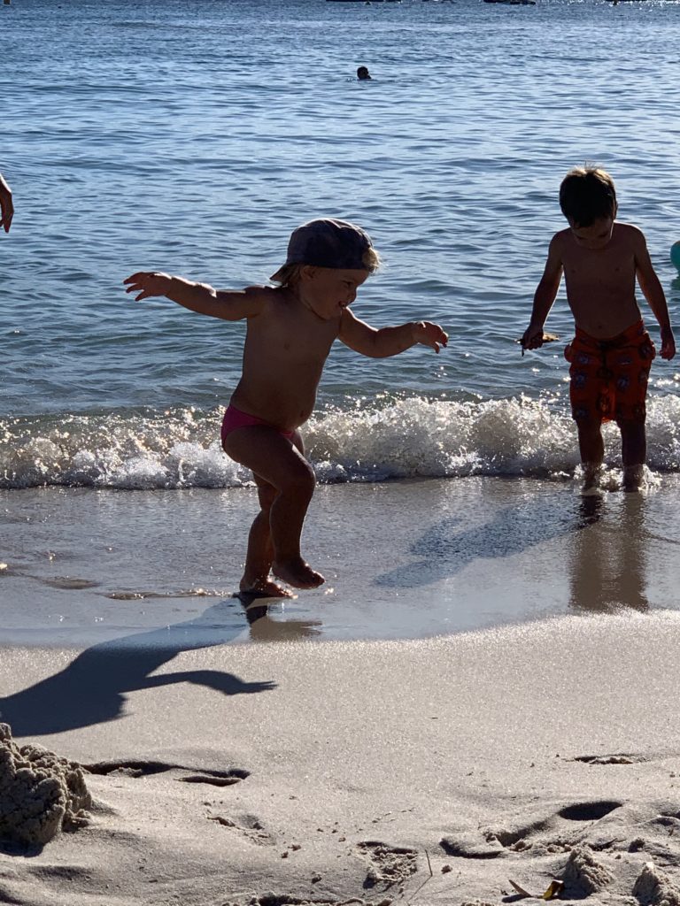 Odile a vraiment profité de la mer, elle était spécialement à l’aise ce soir, et a beaucoup joué à se jeter dans l’eau. De beaux progrès depuis les premières sorties à la plage le mois dernier où elle était beaucoup plus craintive.
