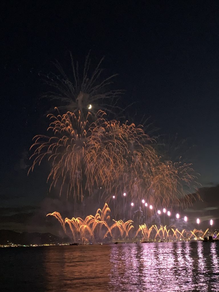 Le feu d’artifice de ce soir était le spectacle d’ouverture du festival pyrotechnique, avec ce soir une prestation du Groupe F. Un beau spectacle !