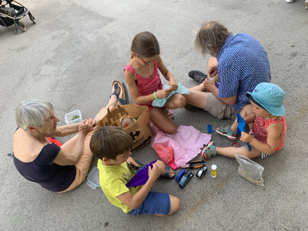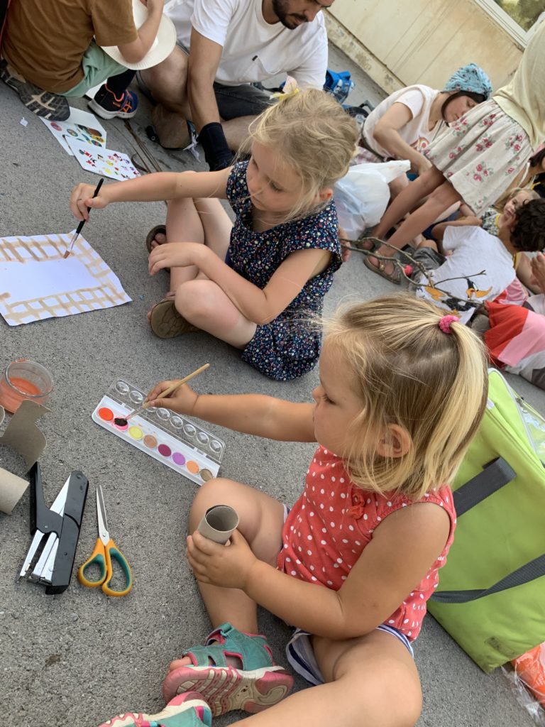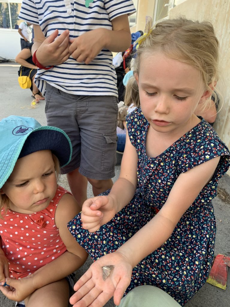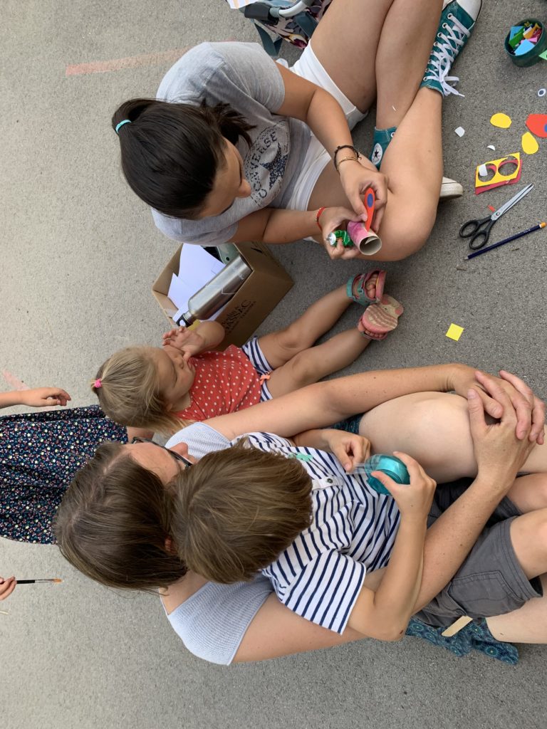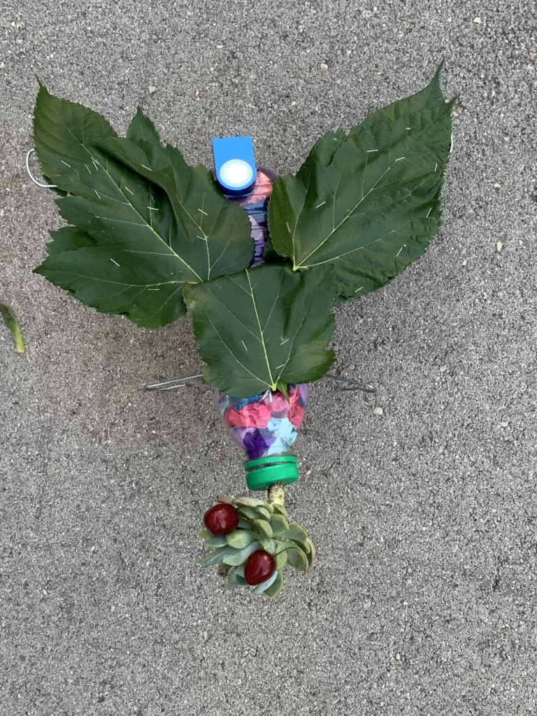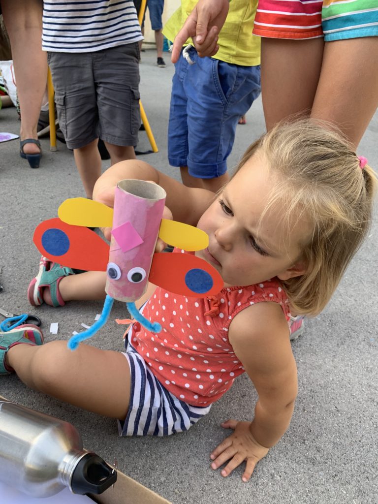 Nous nous sommes tous retrouvés le soir pour la fête de l’école maternelle. Au programme : bricolage d’un insecte. Nous avons construit une luciole, à partir d’une bouteille en plastique, de ceintres, de papier crépon, d’une lampe de vélo, d’une plante grasse et de feuilles de murier !