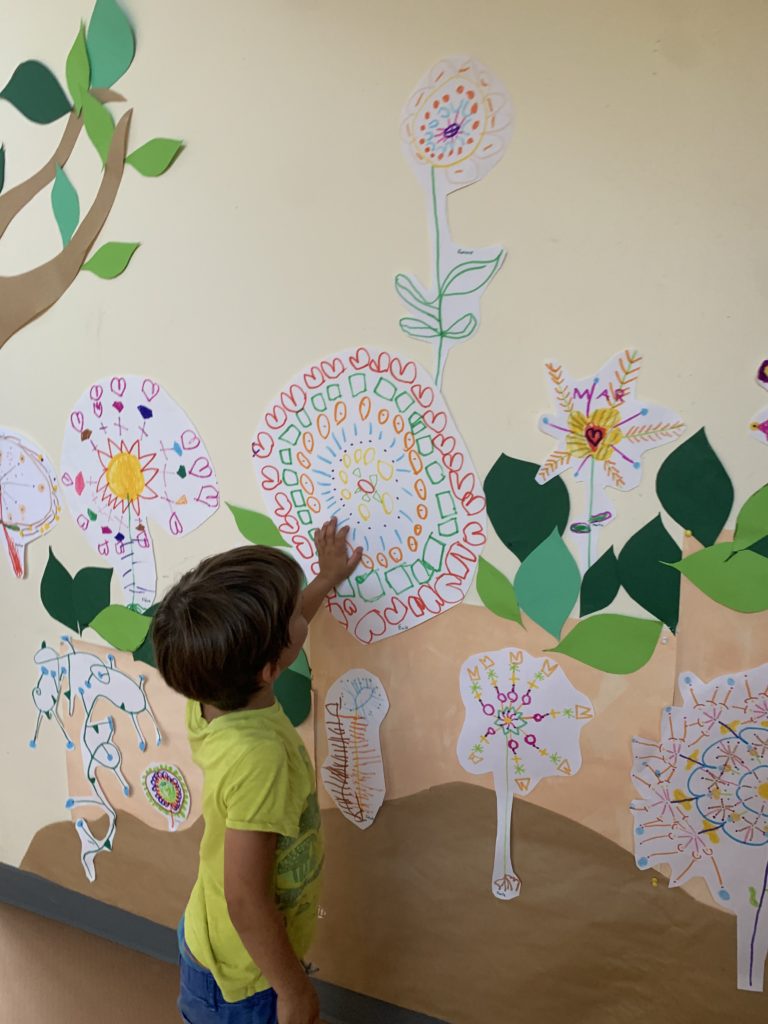 Dans la salle de motricité étaient exposés les oeuvres de toutes les classes sur le thème des insecte.