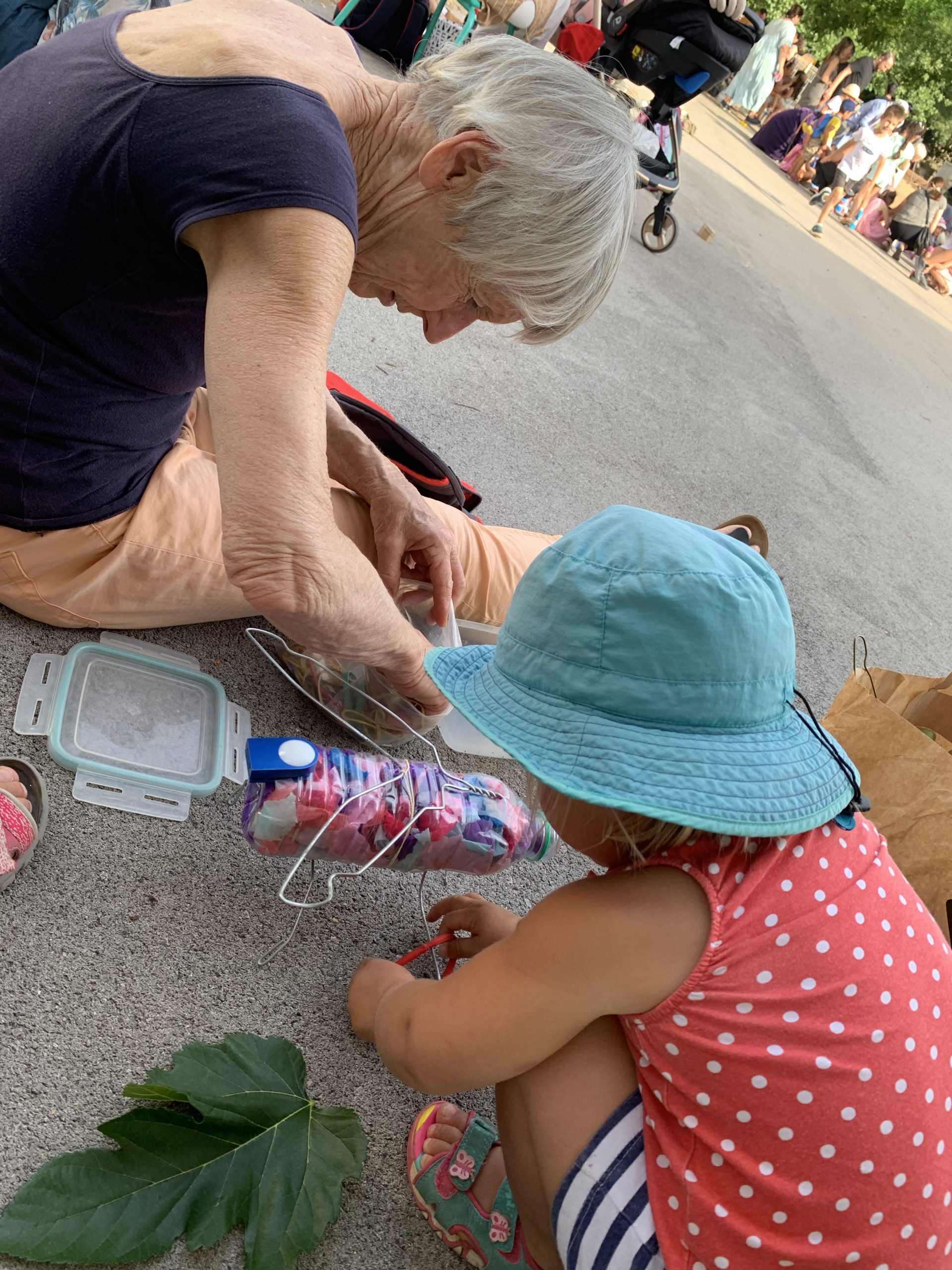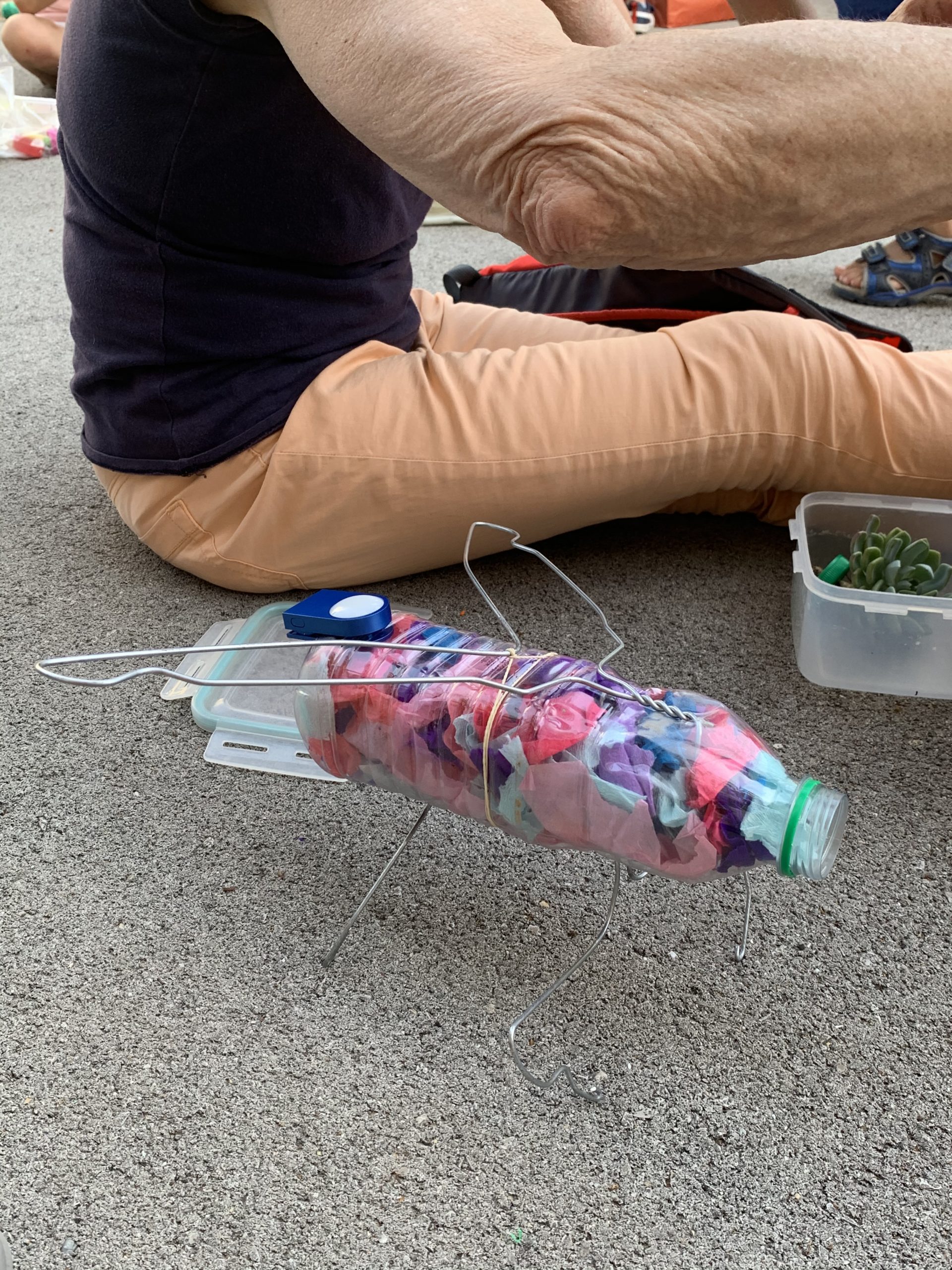 Nous nous sommes tous retrouvés le soir pour la fête de l’école maternelle. Au programme : bricolage d’un insecte. Nous avons construit une luciole, à partir d’une bouteille en plastique, de ceintres, de papier crépon, d’une lampe de vélo, d’une plante grasse et de feuilles de murier !