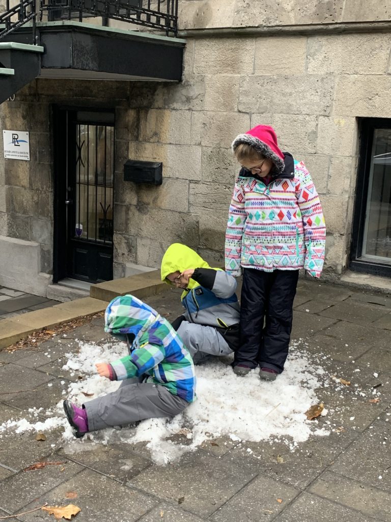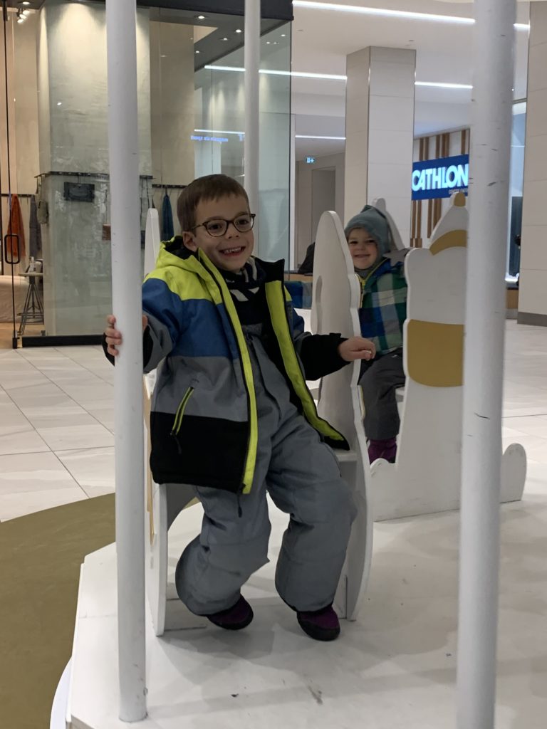 Nous leur avons aussi trouvé des bonnets bien chauds pour les jours à venir, car la température va bien baisser d’après les prévisions … On attend en tout cas la neige avec impatience, car pour l’instant on en est réduits à jouer dans les vieilles flaques toutes grises…