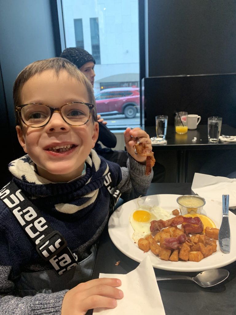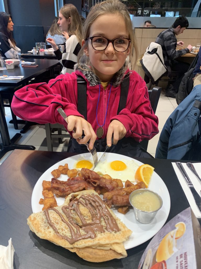 J’ai été bien gâtée pour mon anniversaire canadien, nous sommes allés bruncher en ville. Les enfants ont été bien surpris des assiettes sucrées/salées mélangées !