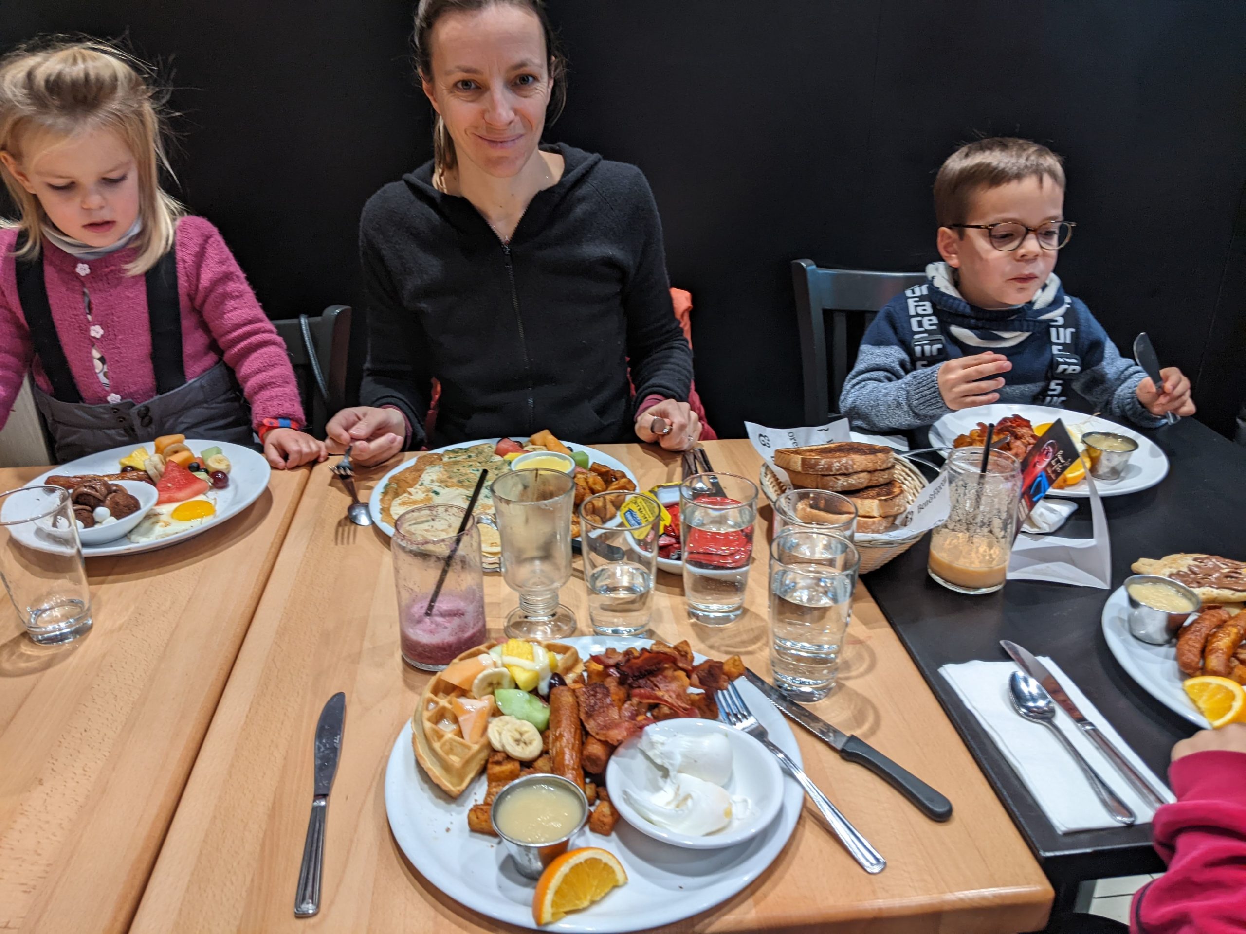 J’ai été bien gâtée pour mon anniversaire canadien, nous sommes allés bruncher en ville. Les enfants ont été bien surpris des assiettes sucrées/salées mélangées !