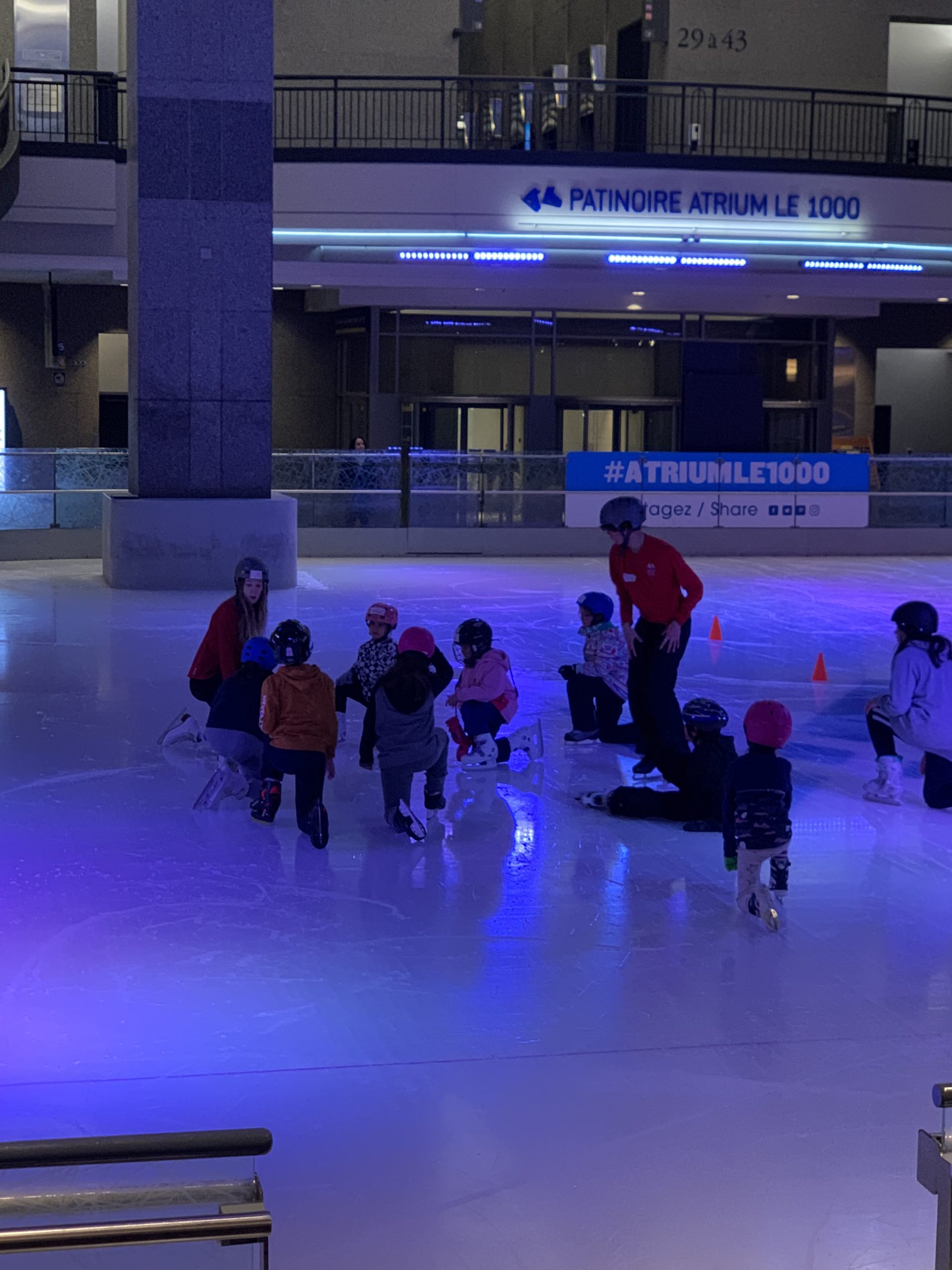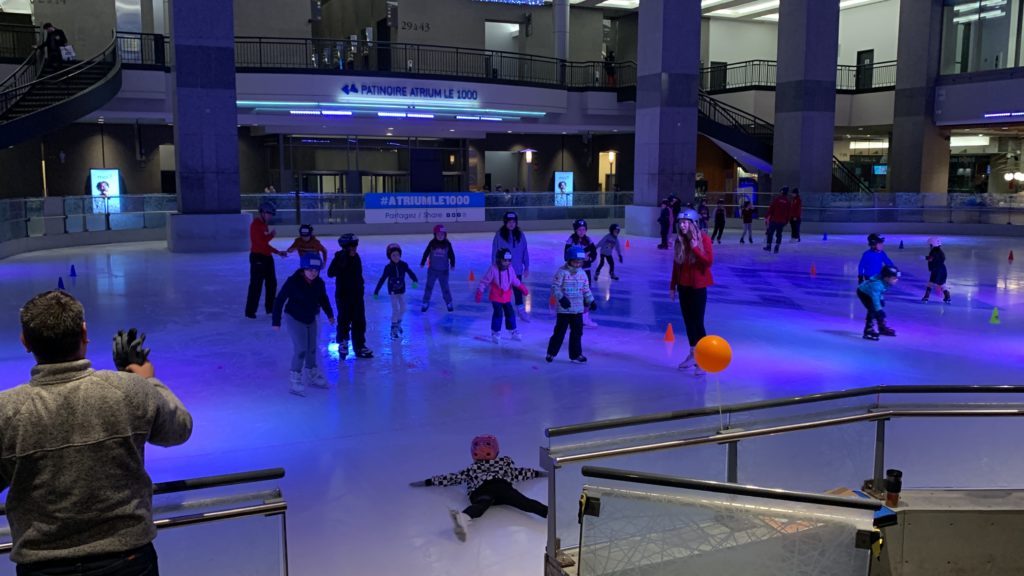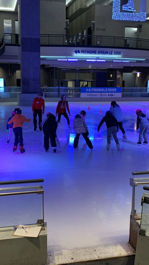 Ce soir, Odile est retournée à la gym, et Émile et Lucie ont eu leur premier cours de patin. Nous y sommes allés en métro, avec une ligne directe, c’est bien pratique.