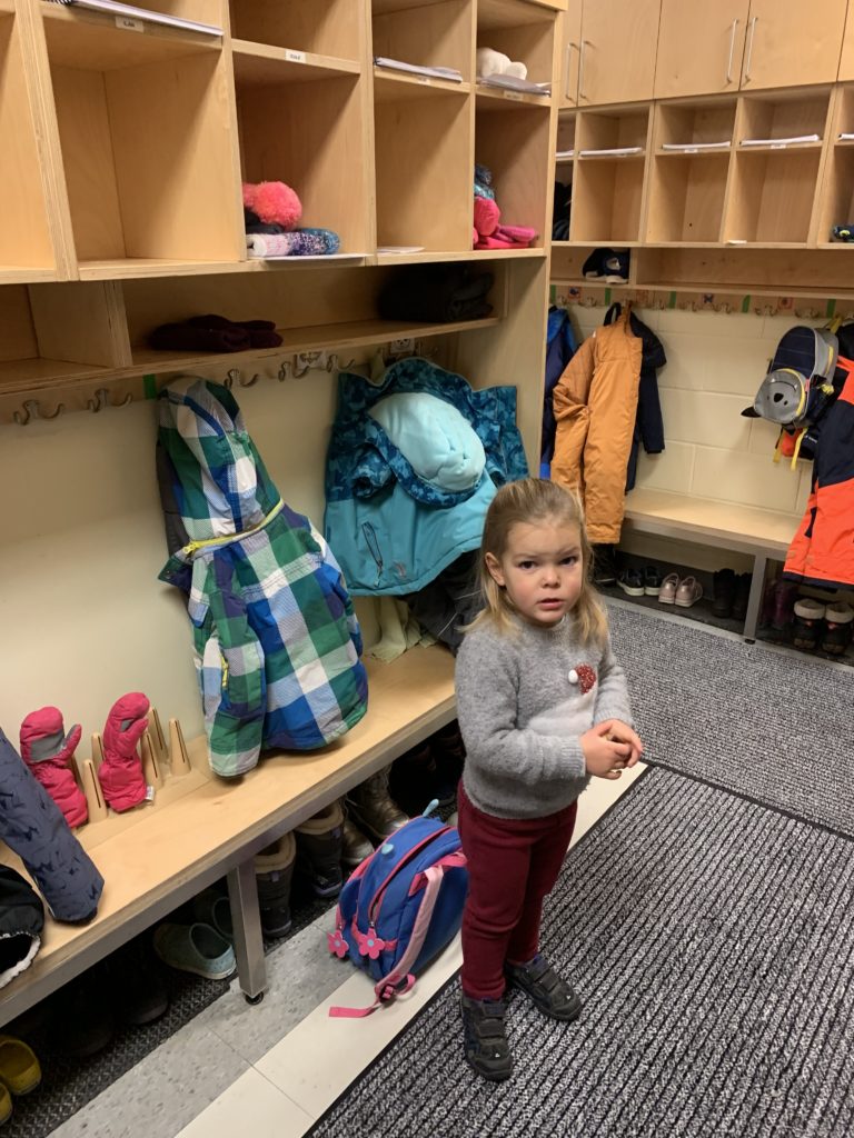 Odile a commencé la garderie ce matin. L’école ne commençant ici qu’à 5 ans, voire 4 ans pour certaines, nous avons réussi à lui trouver une place dans une garderie. Elle est donc dans un groupe de 8 enfants, avec Estela. En arrivant à 9h, les enfants se mettaient à table pour la collation du matin 🙂 Sa première journée s’est très bien passée !