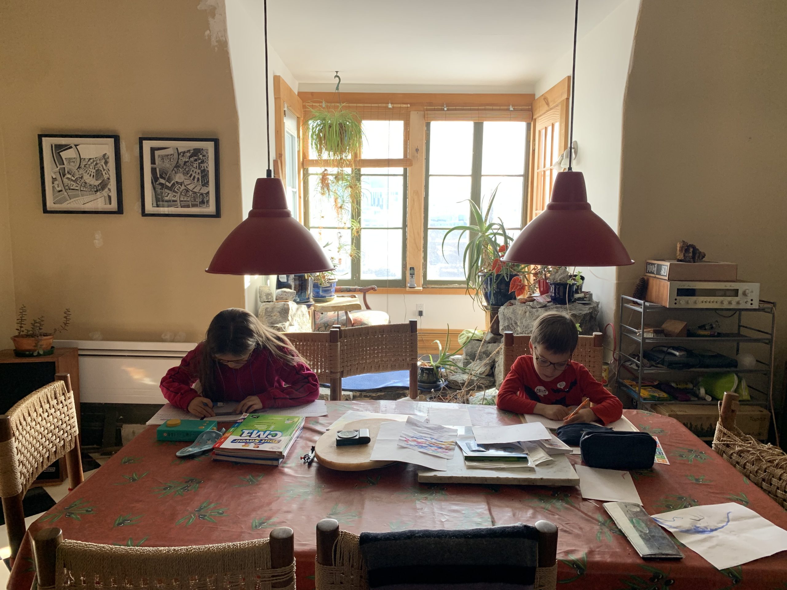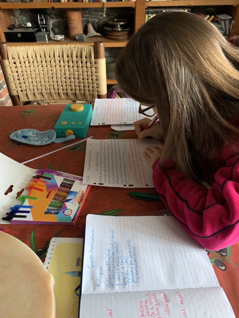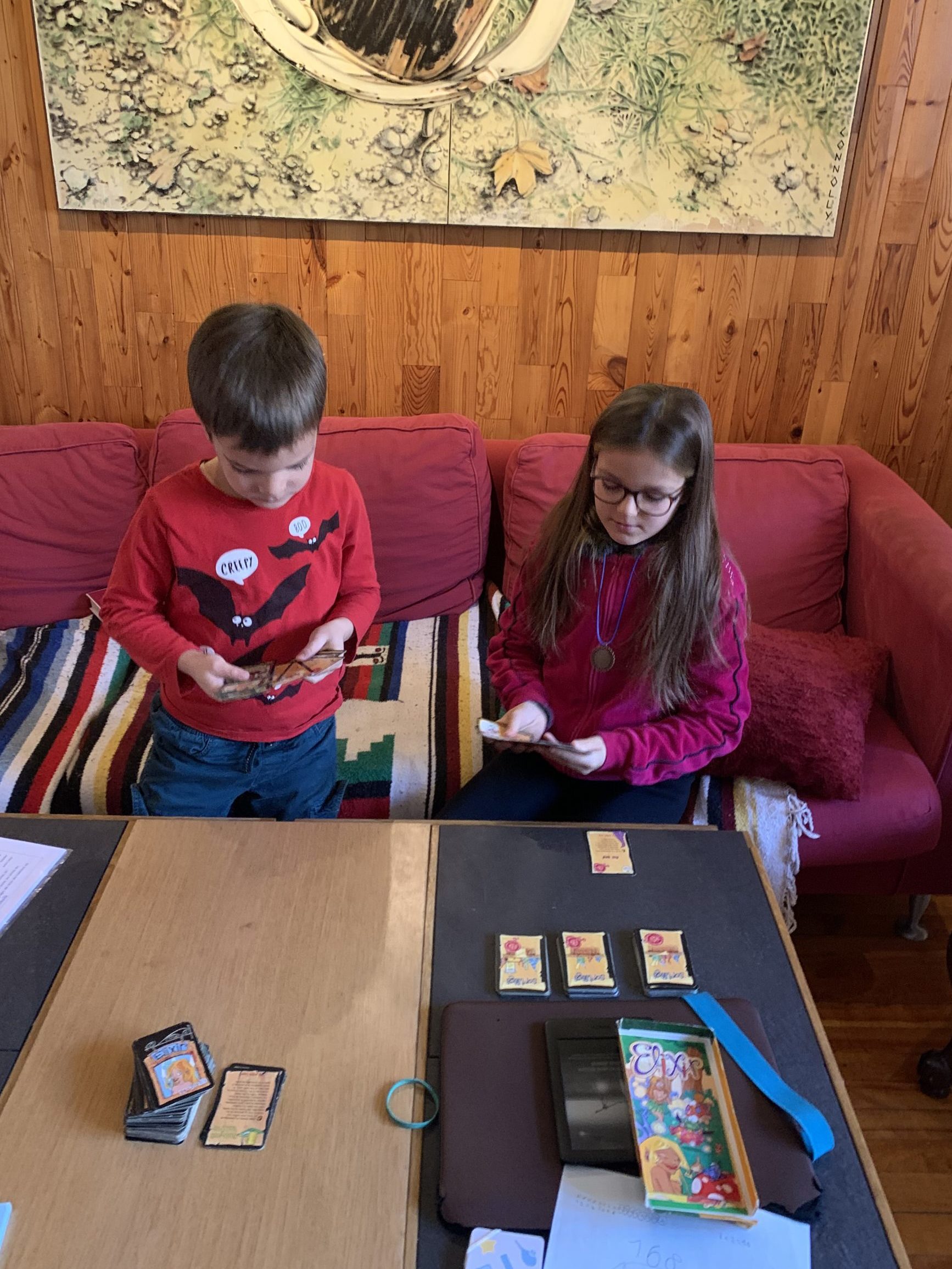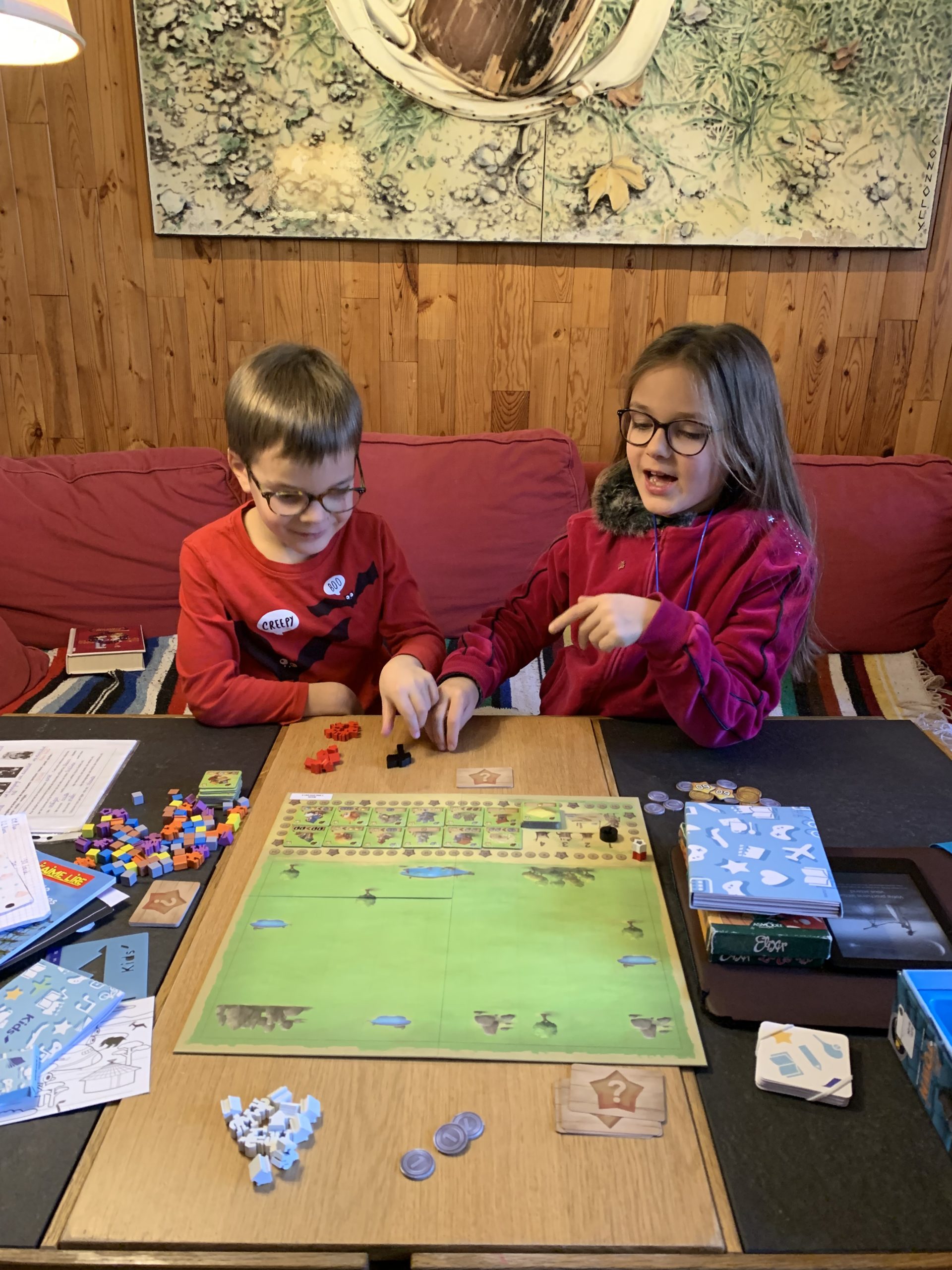 Pendant ce temps, Émile et Lucie ont pu faire un peu plus tranquillement leurs devoirs, mais aussi, beaucoup de jeux de société ! Nous en avons emprunté plusieurs à la médiathèque, c’est vraiment super !