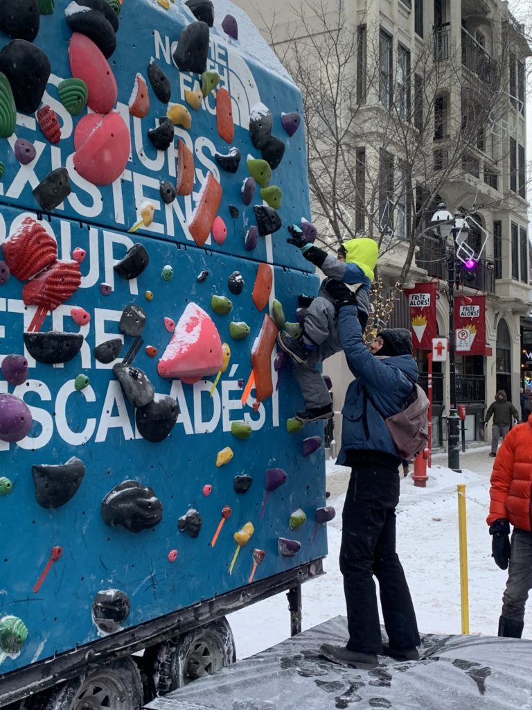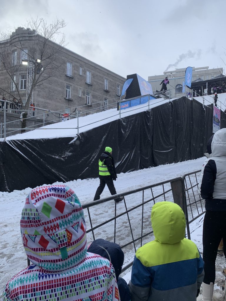 Nous avons ce week-end profité pleinement de deux festivals dans notre quartier : Montréal en lumières, déjà testé le week-end dernier, et Apik, dans la rue Saint-Denis, où a lieu ce week-end une compétition de ski et de snowboard.