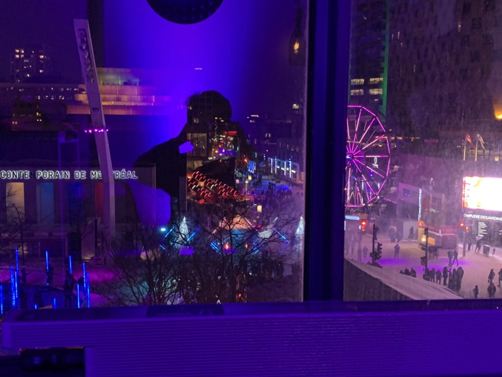 Dimanche, nous sommes retournés, d’abord à Apik voir la compétition de snowboard, puis à Montréal en lumières, où nous avons, pour la deuxième fois, eu la joie de nous trouver dans la nacelle chanceuse !! Deuxième visite du salon de la presse, avec snacks et boissons à volonté.
