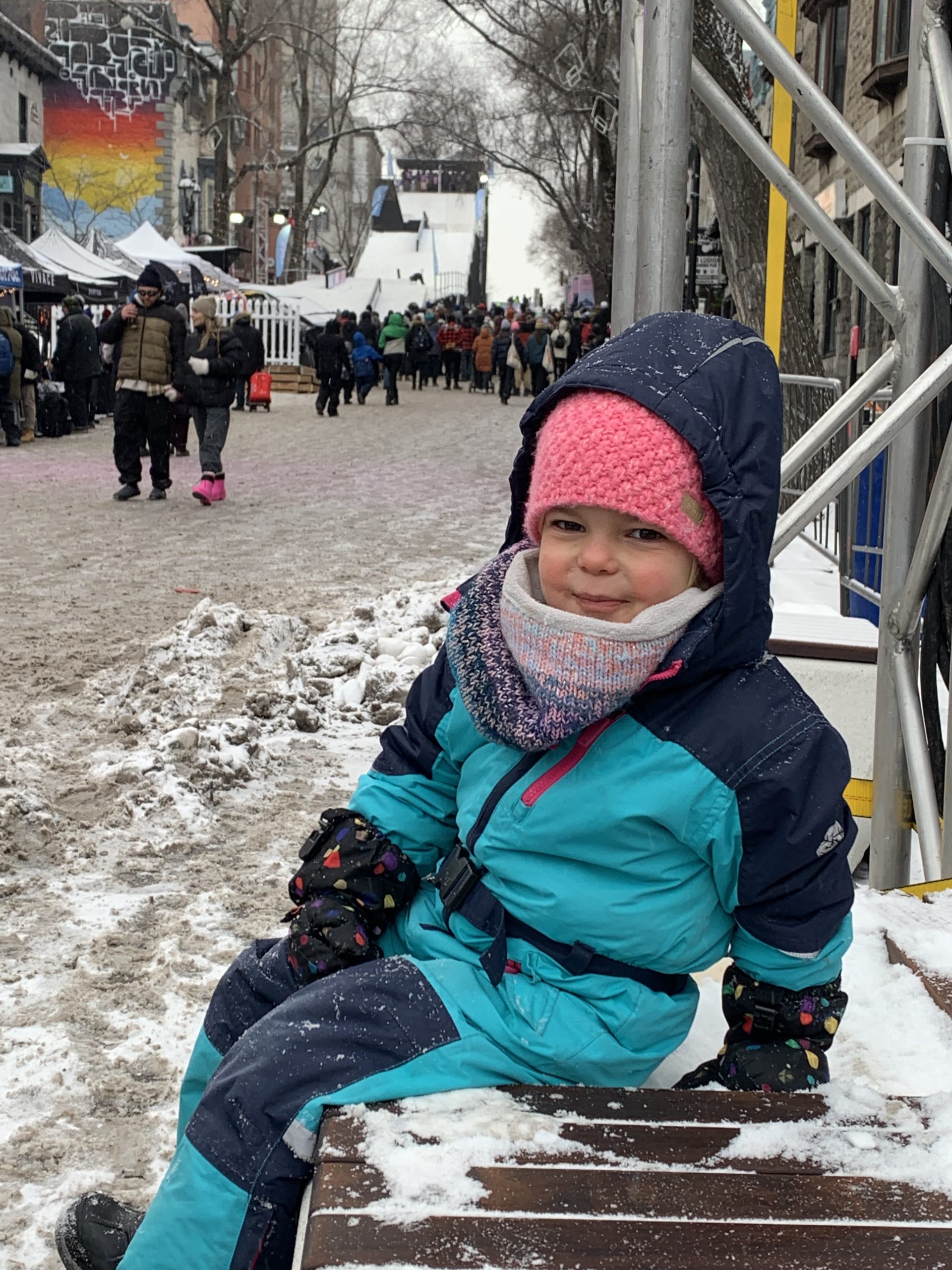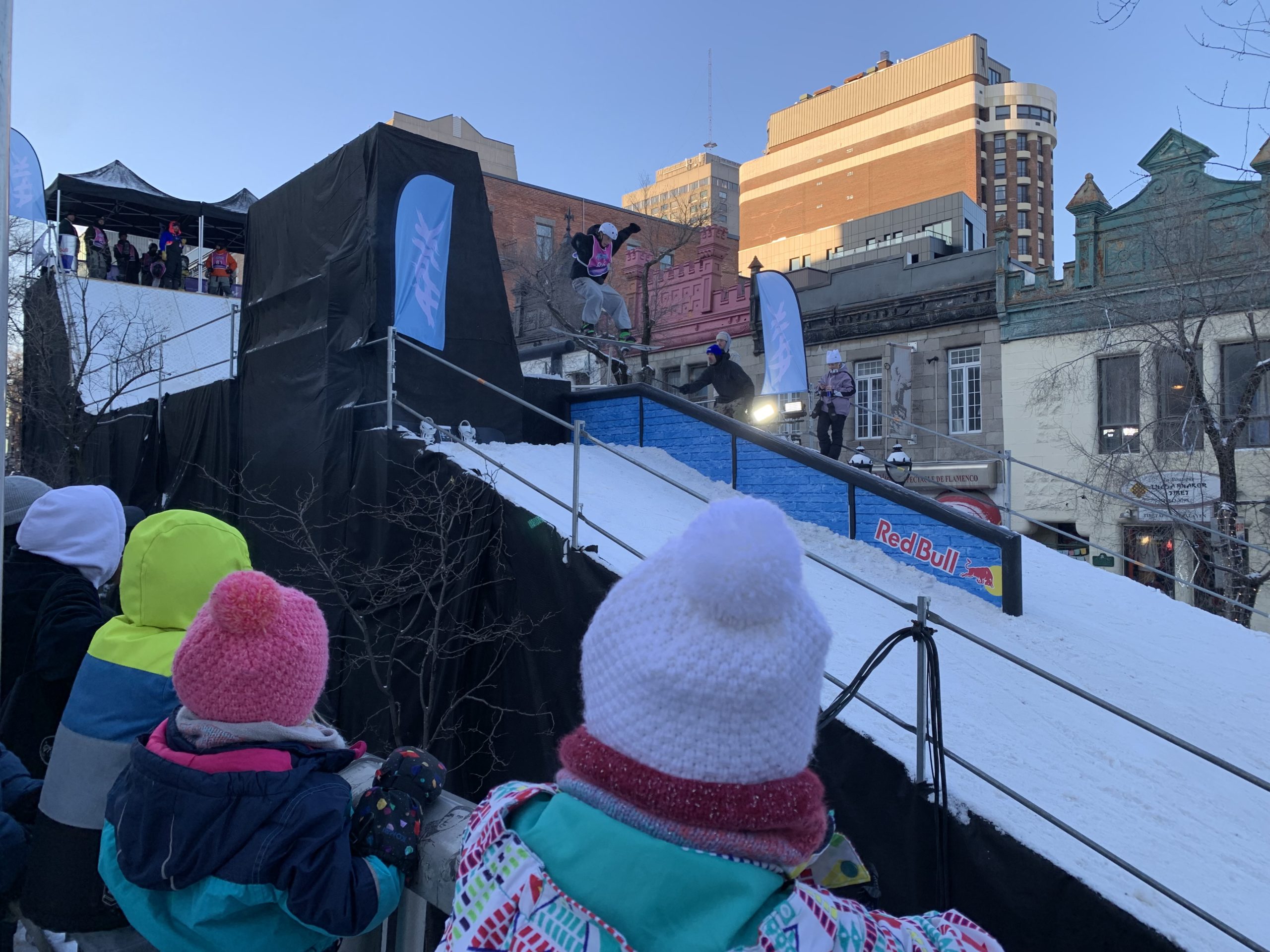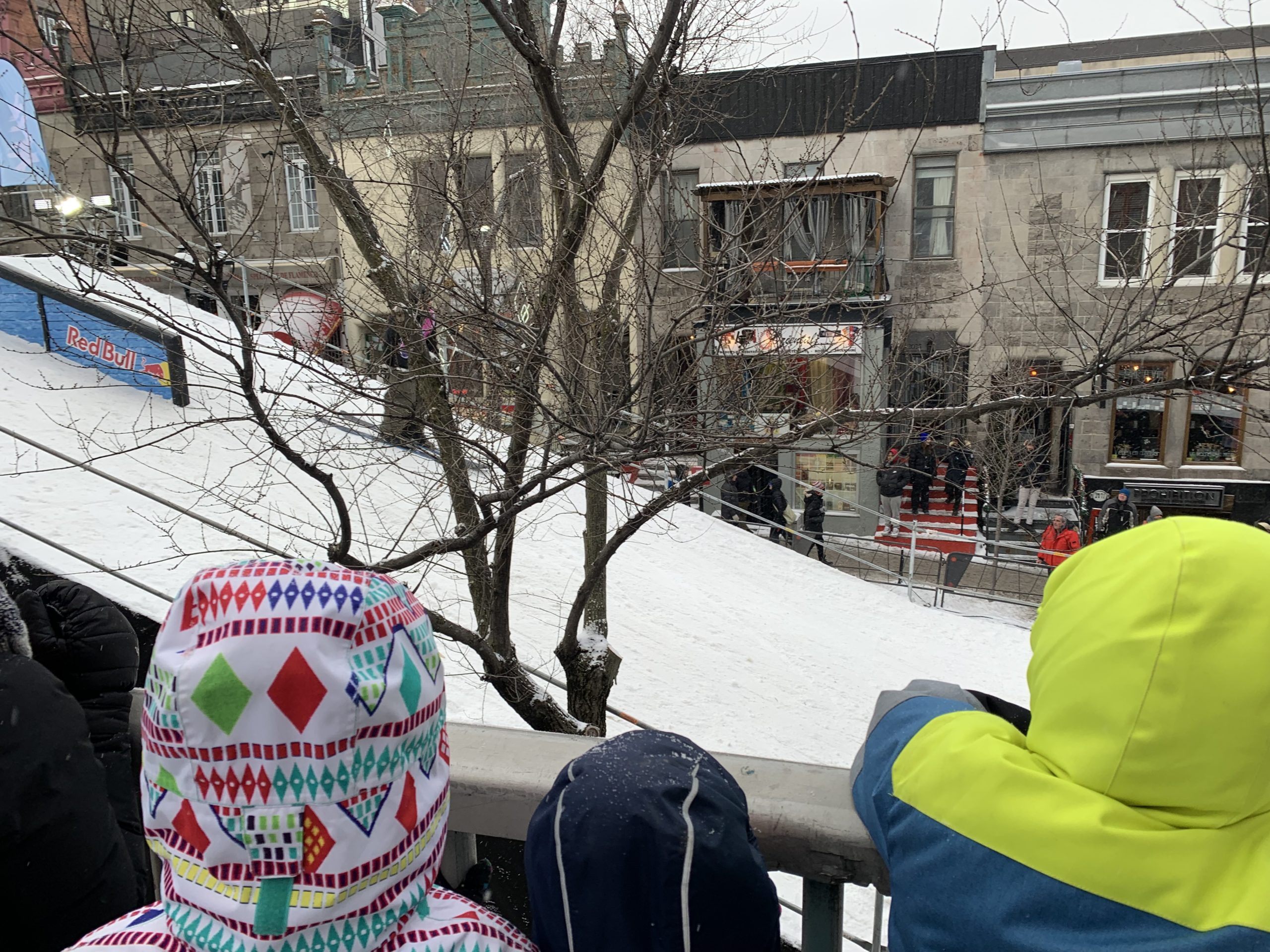Nous avons ce week-end profité pleinement de deux festivals dans notre quartier : Montréal en lumières, déjà testé le week-end dernier, et Apik, dans la rue Saint-Denis, où a lieu ce week-end une compétition de ski et de snowboard.