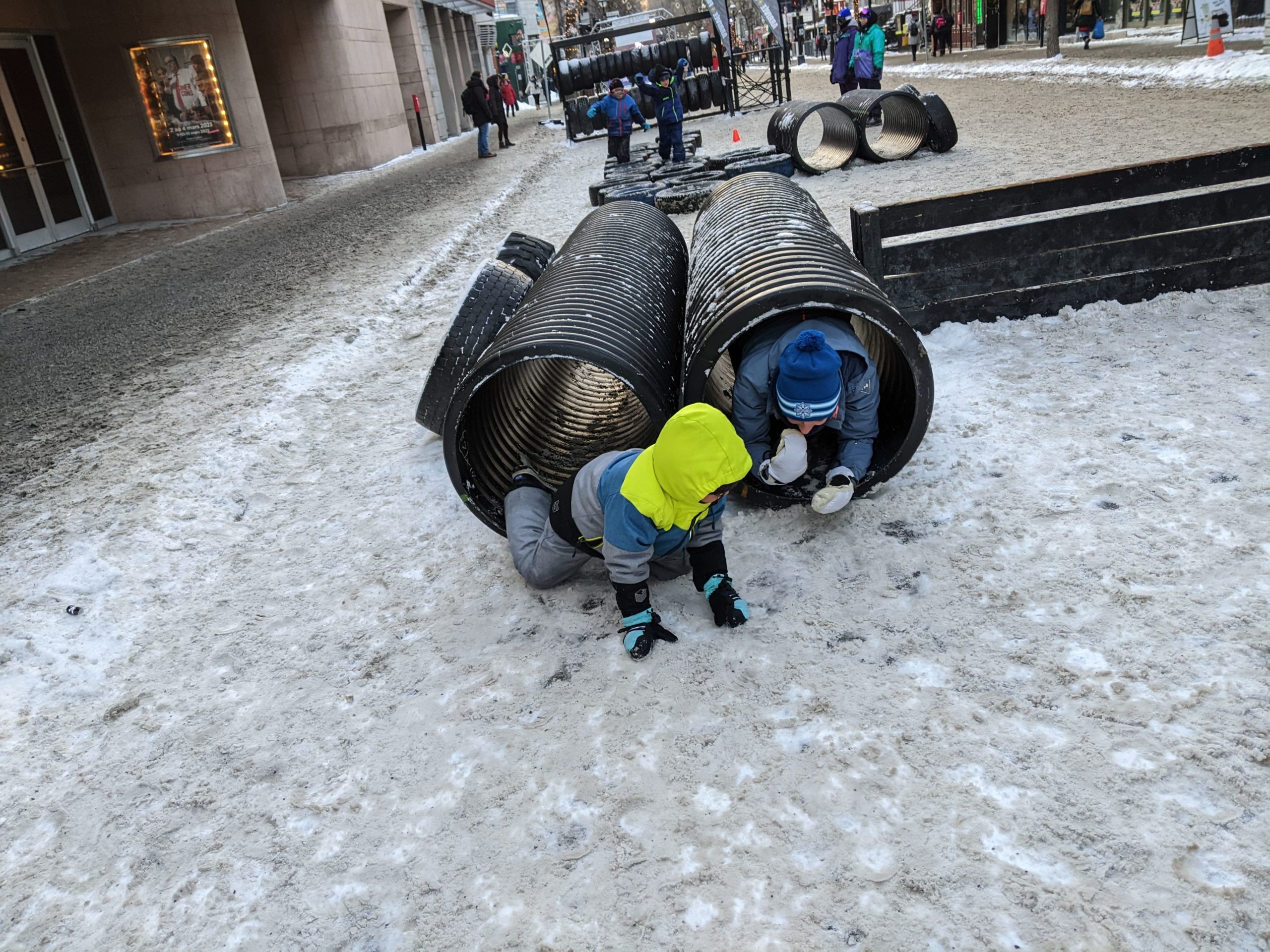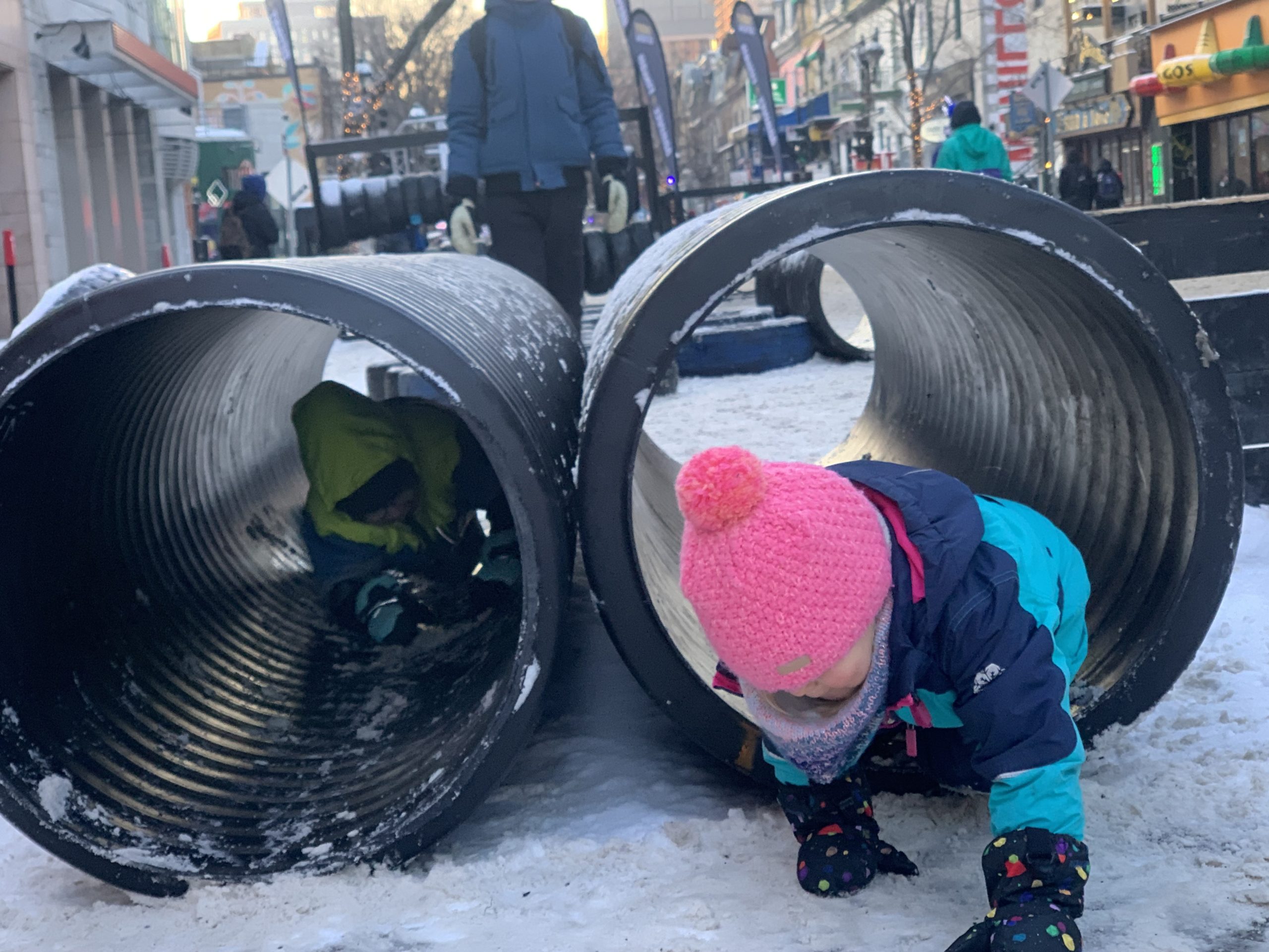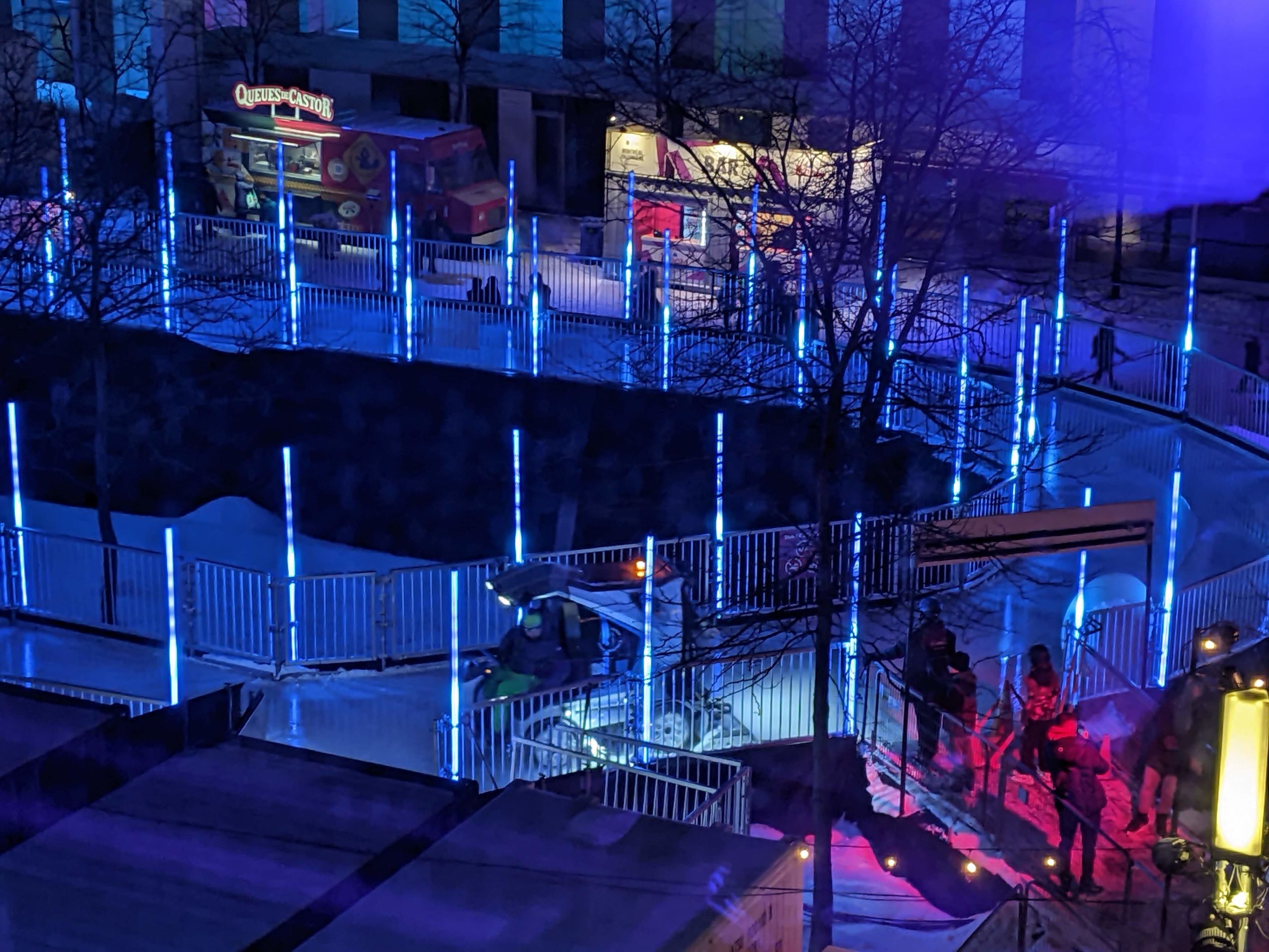 Nous avons ce week-end profité pleinement de deux festivals dans notre quartier : Montréal en lumières, déjà testé le week-end dernier, et Apik, dans la rue Saint-Denis, où a lieu ce week-end une compétition de ski et de snowboard.