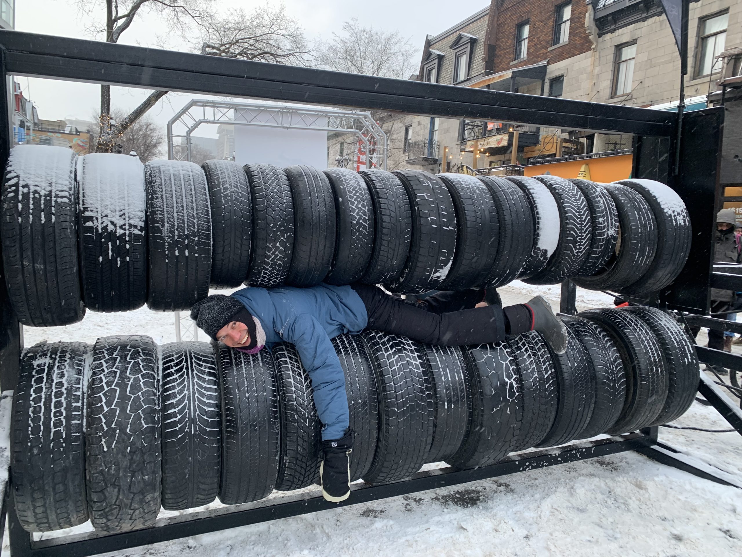 Dimanche, nous sommes retournés, d’abord à Apik voir la compétition de snowboard, puis à Montréal en lumières, où nous avons, pour la deuxième fois, eu la joie de nous trouver dans la nacelle chanceuse !! Deuxième visite du salon de la presse, avec snacks et boissons à volonté.