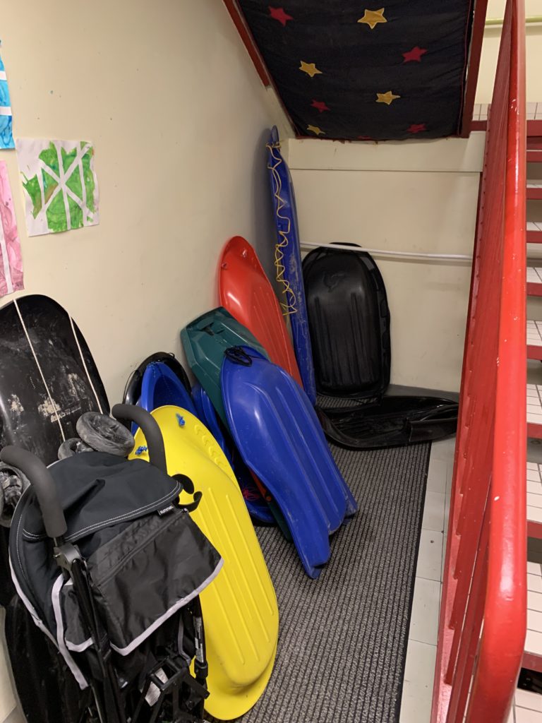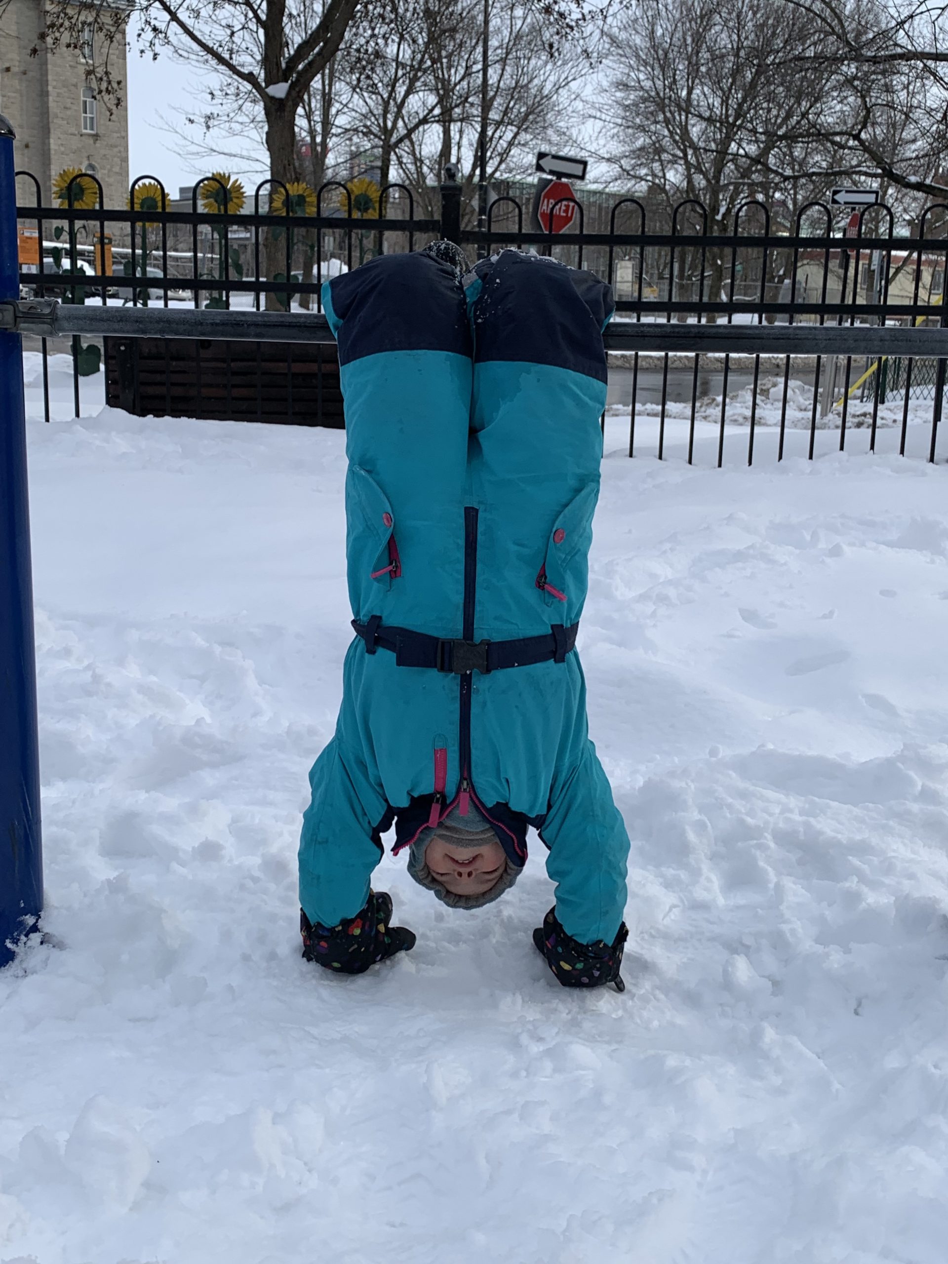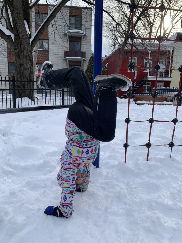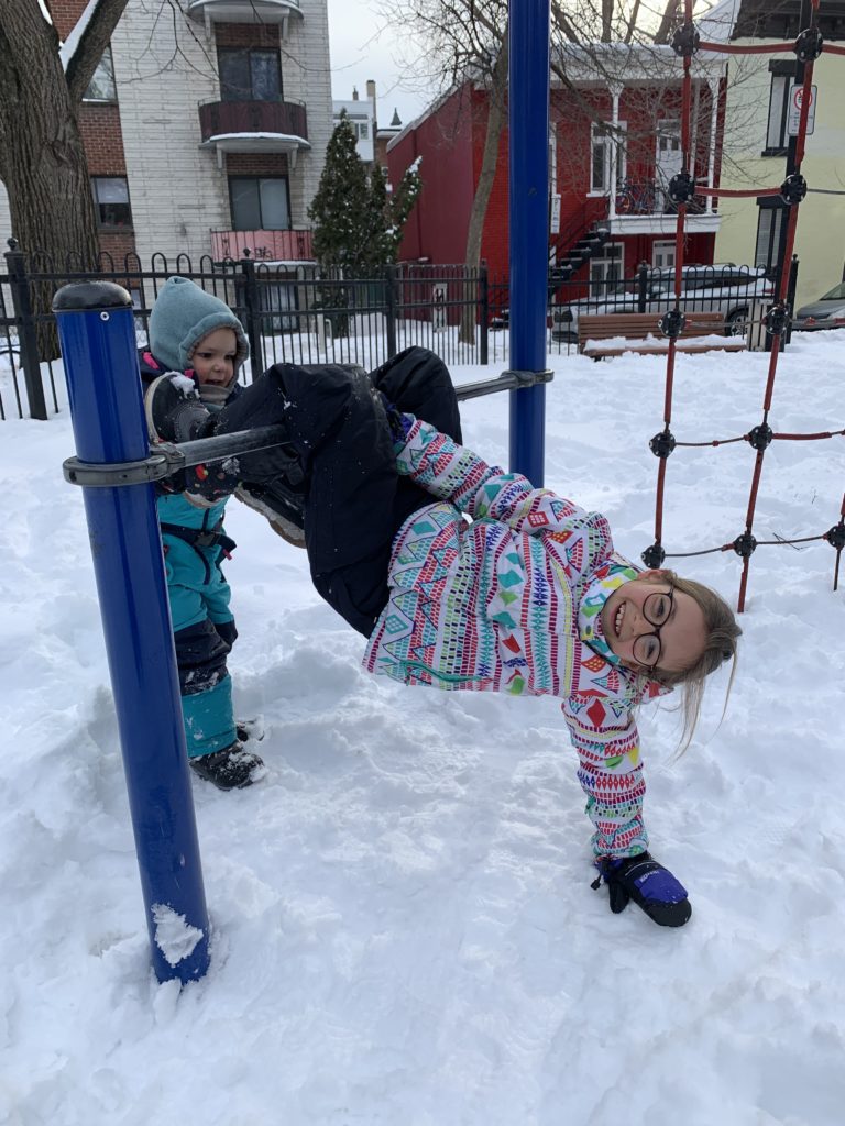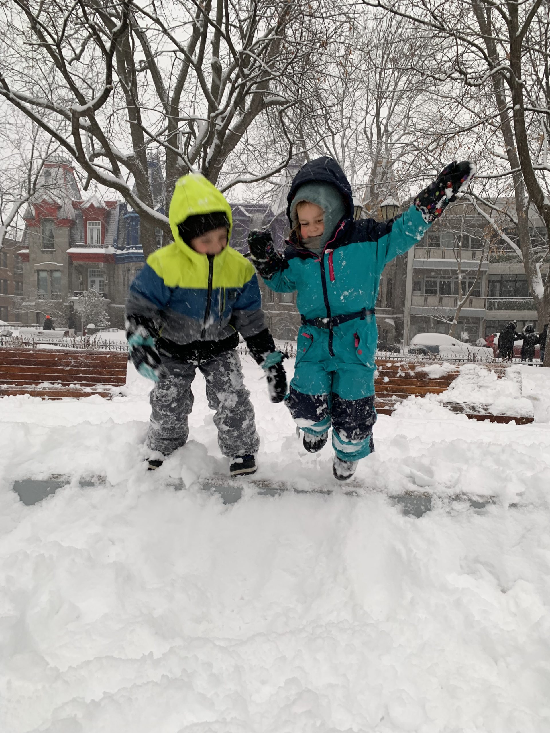 Jolie bordée de neige mardi. La dernière de la saison ? Émile, Lucie et moi étions à la médiathèque, et Odile a fait ses trajets pour la garderie en luge.