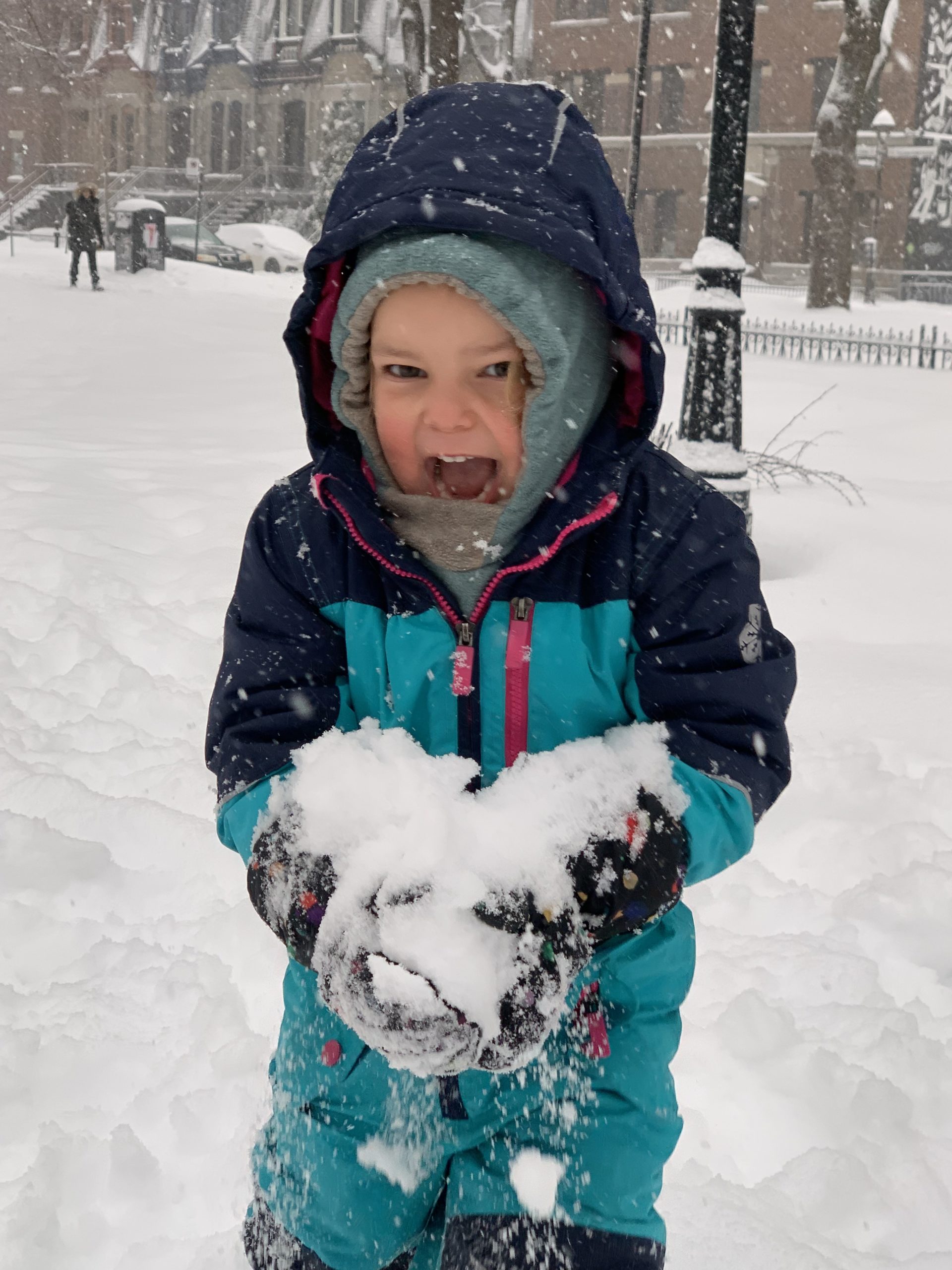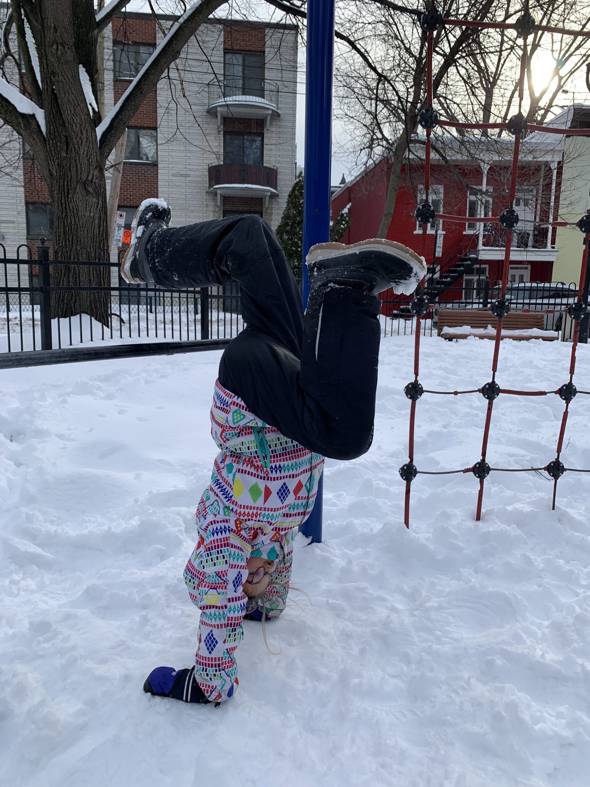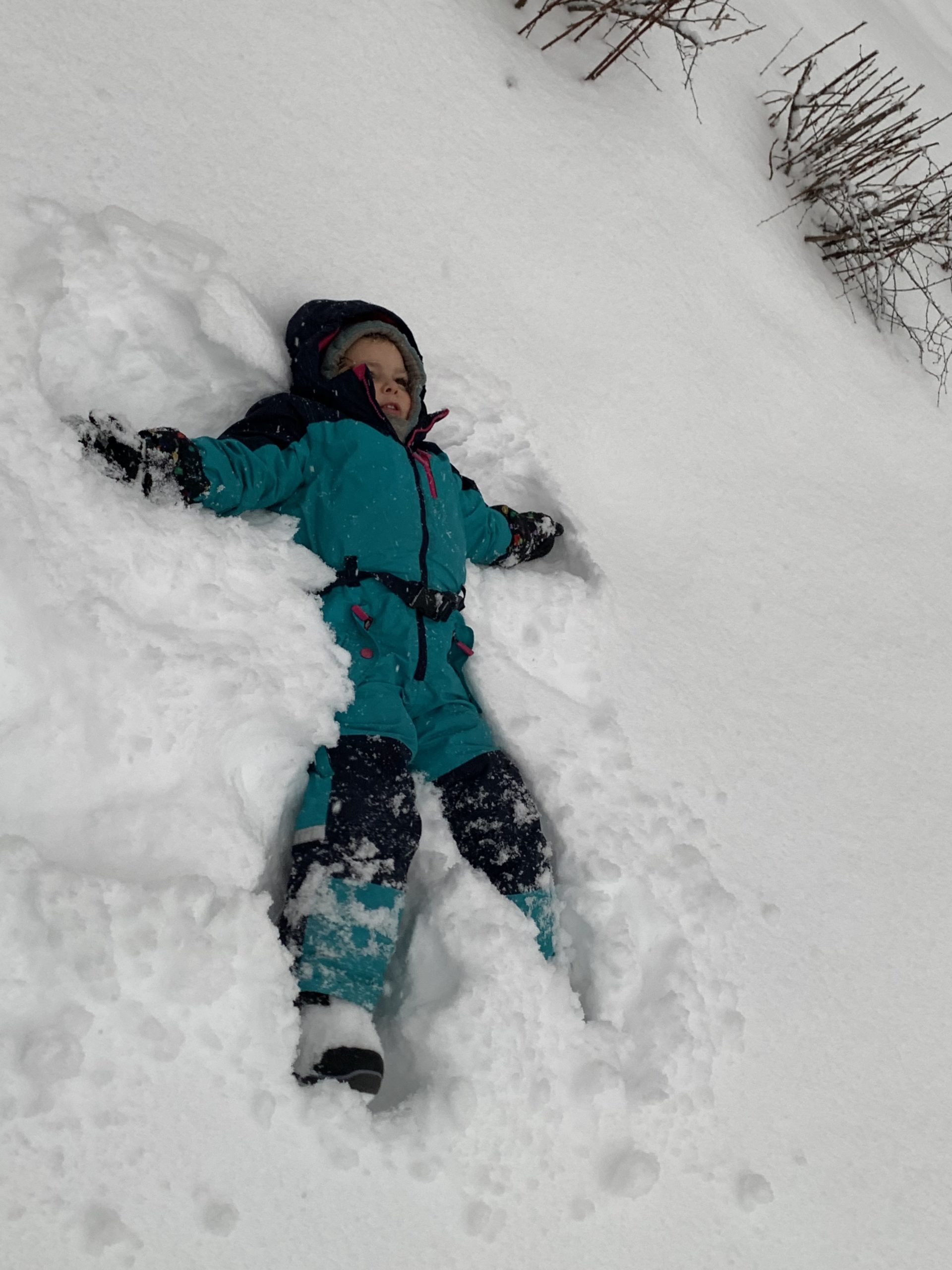 Nous sommes sortis jouer dans la neige avec Odile en fin de journée, avant de dîner à la maison avec des collègues de Thomas.