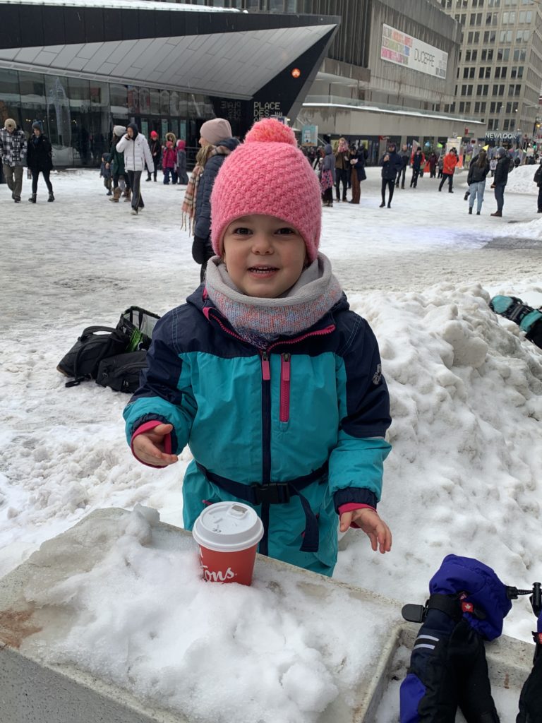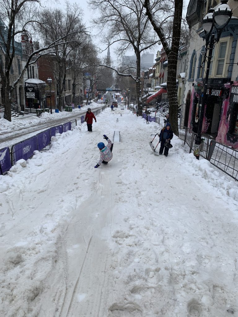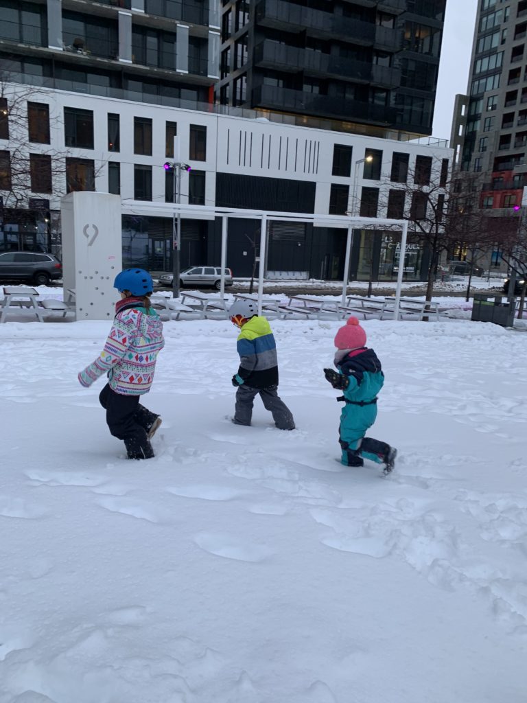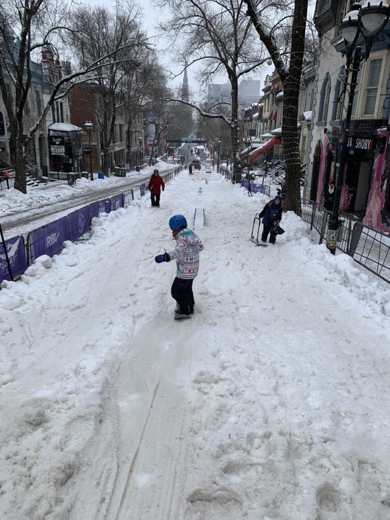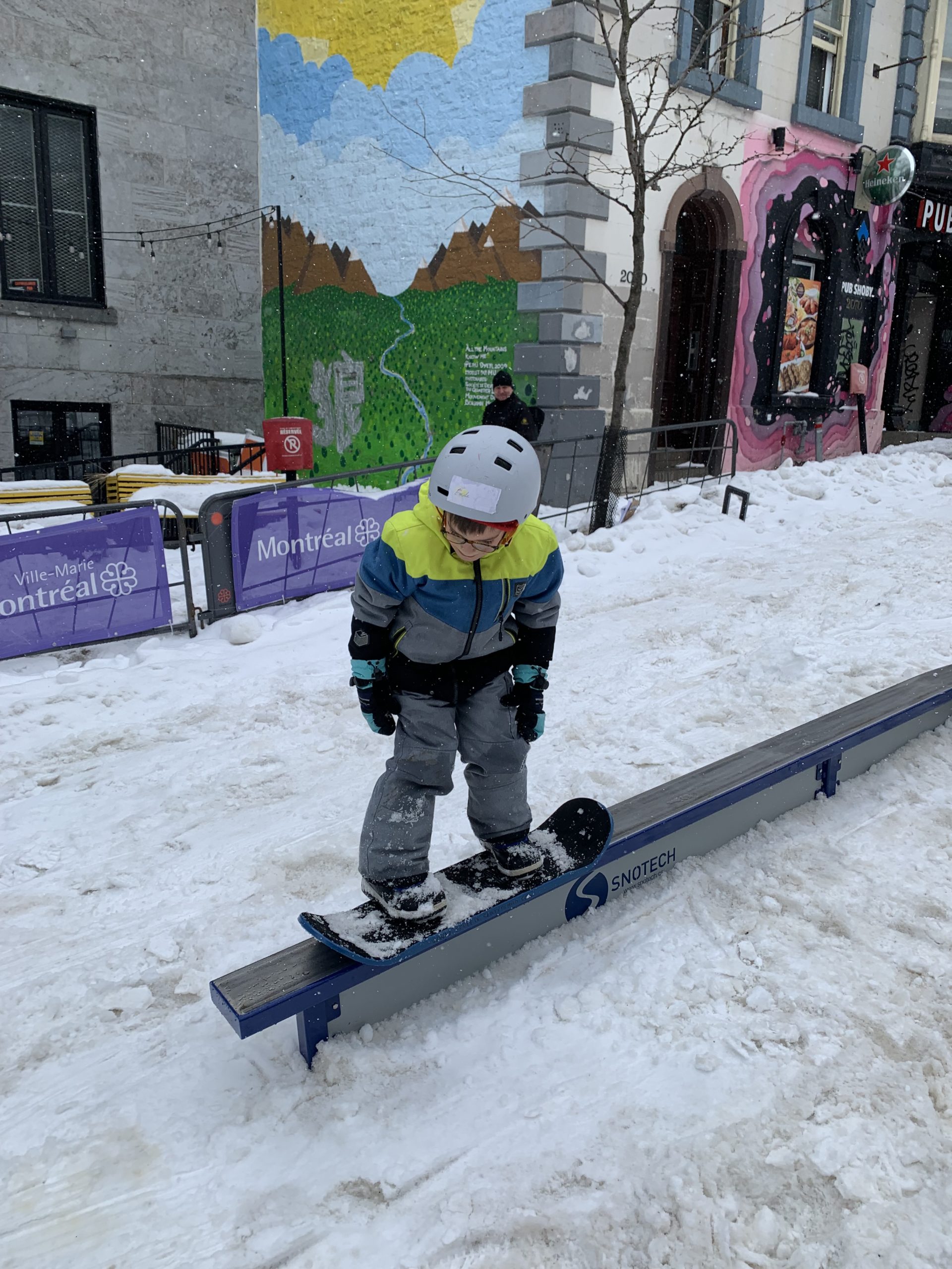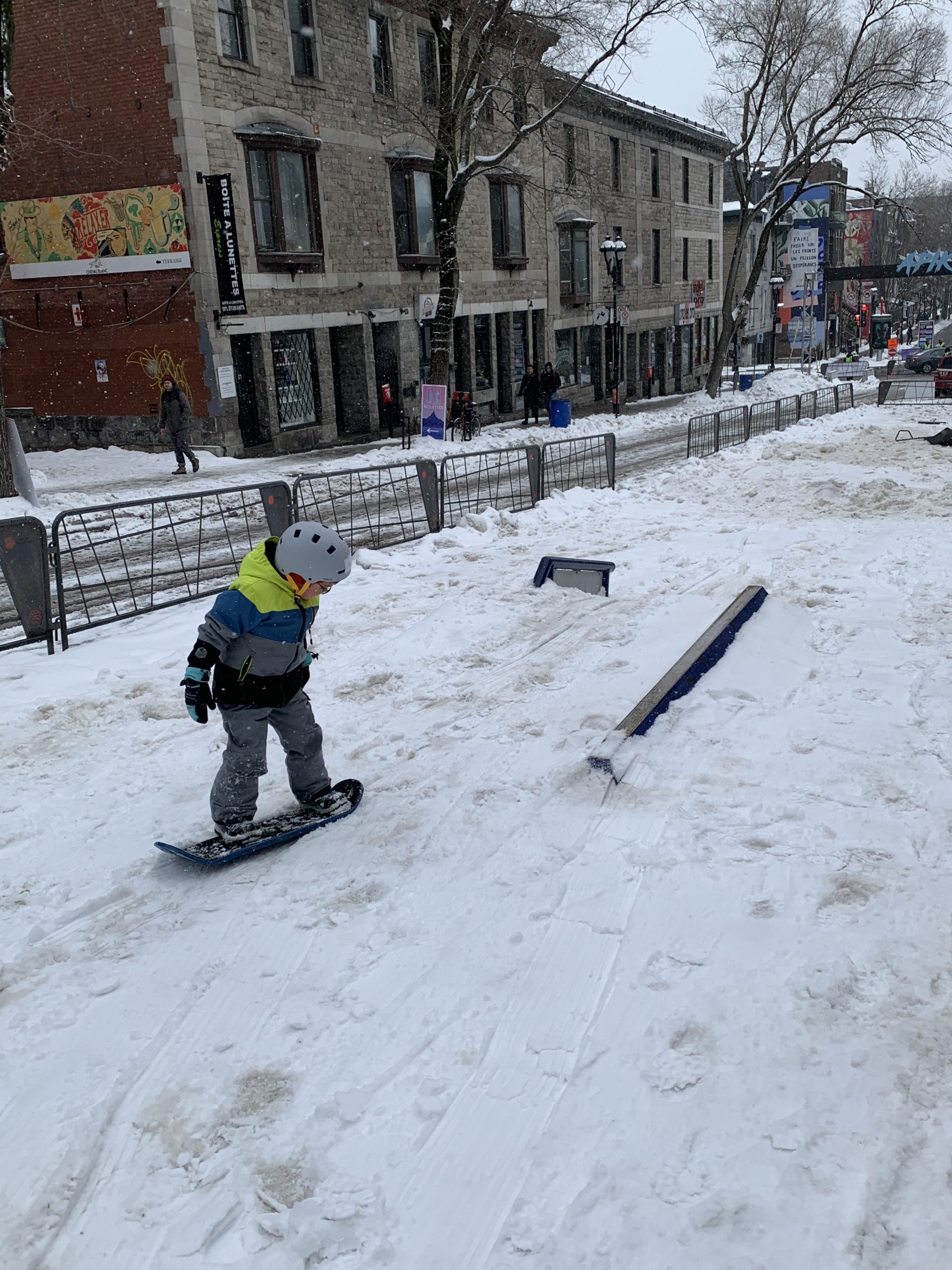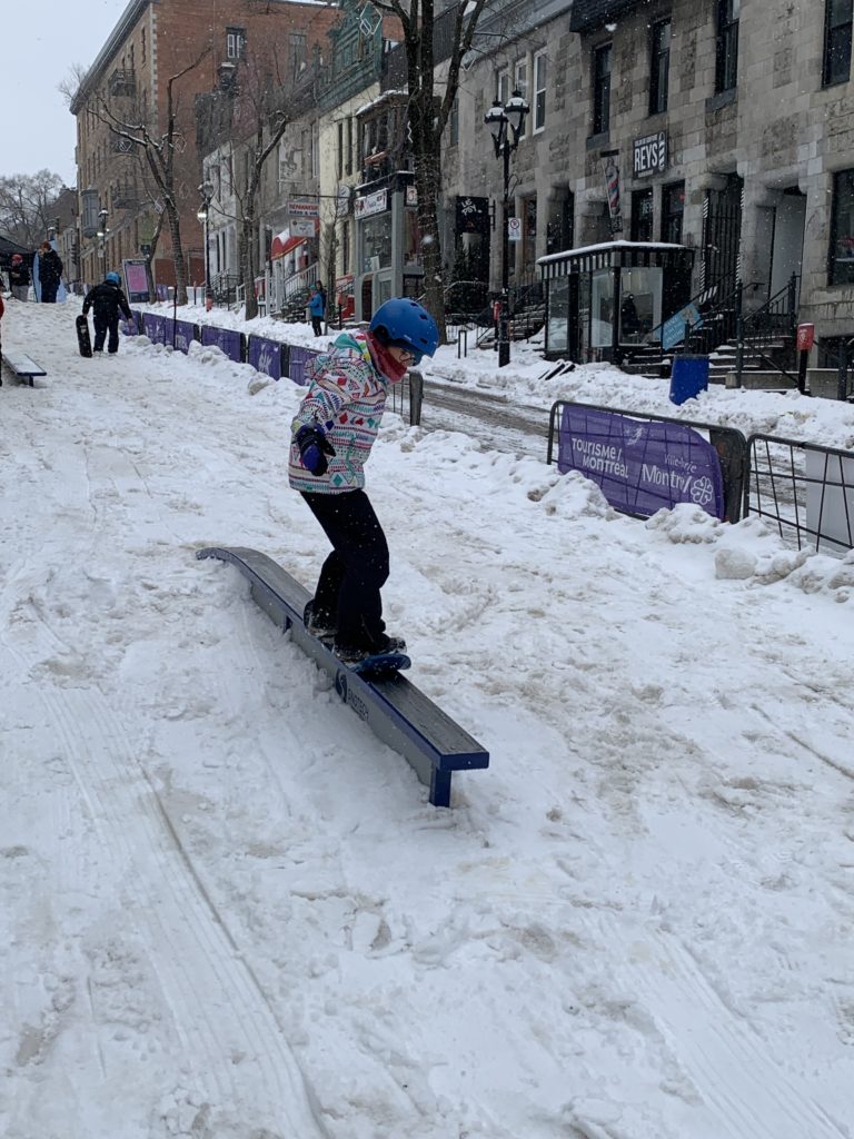 Le festival Apik s’est transformé pour devenir accessible à tous. Lucie et Émile ont pu tester le snowskate. Une planche sur laquelle ils se tiennent debout sans accrocher les pieds. La neige était très collante, ils n’ont pas du tout pu prendre de vitesse, mais du coup contrôlaient bien la planche, jusqu’à ce qu’elle s’arrête contre un tas de neige 🙂 Une belle découverte !