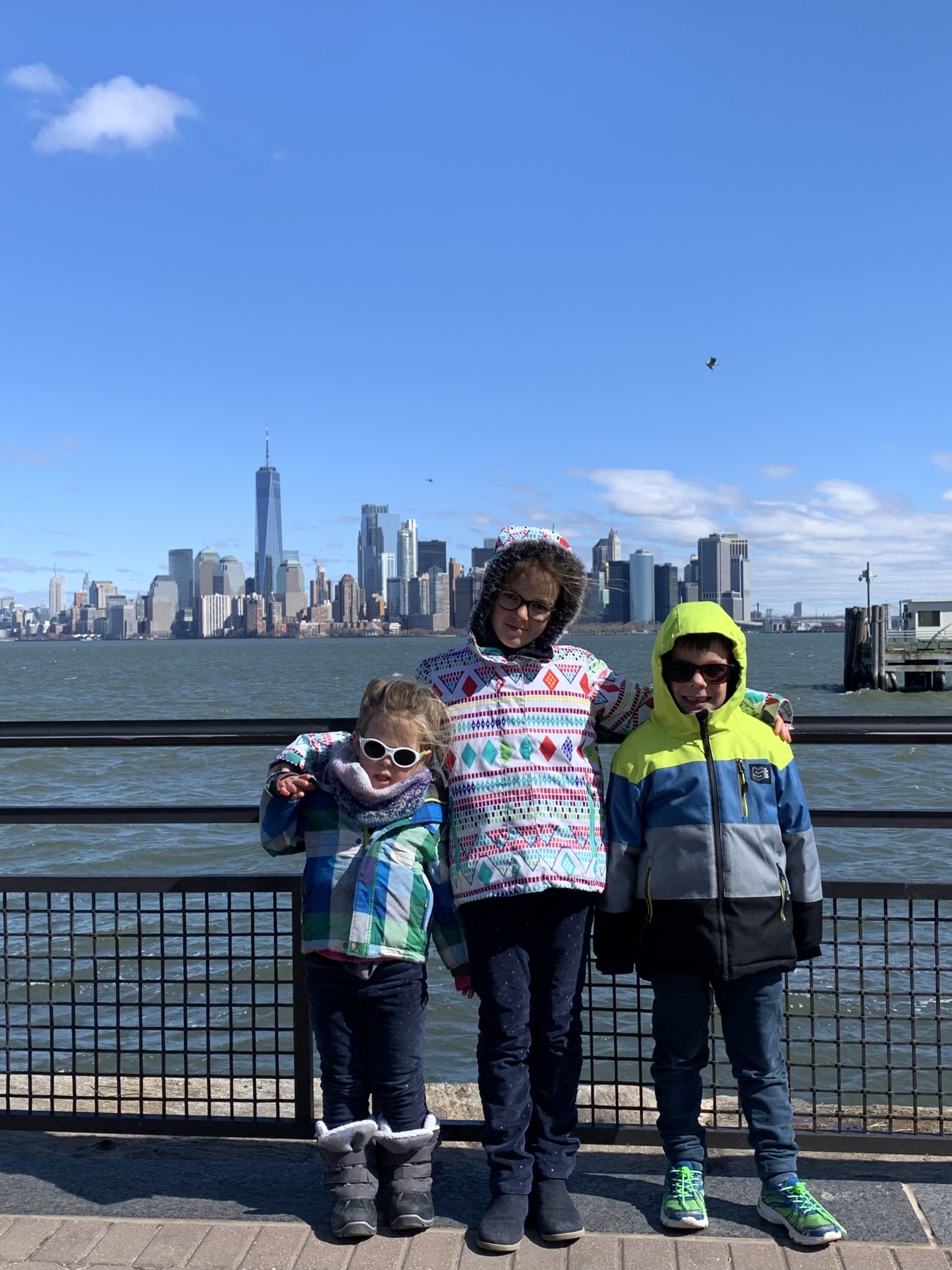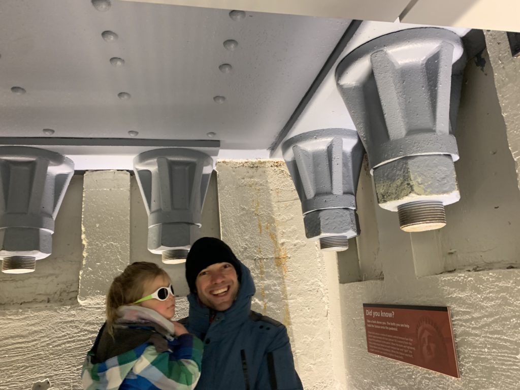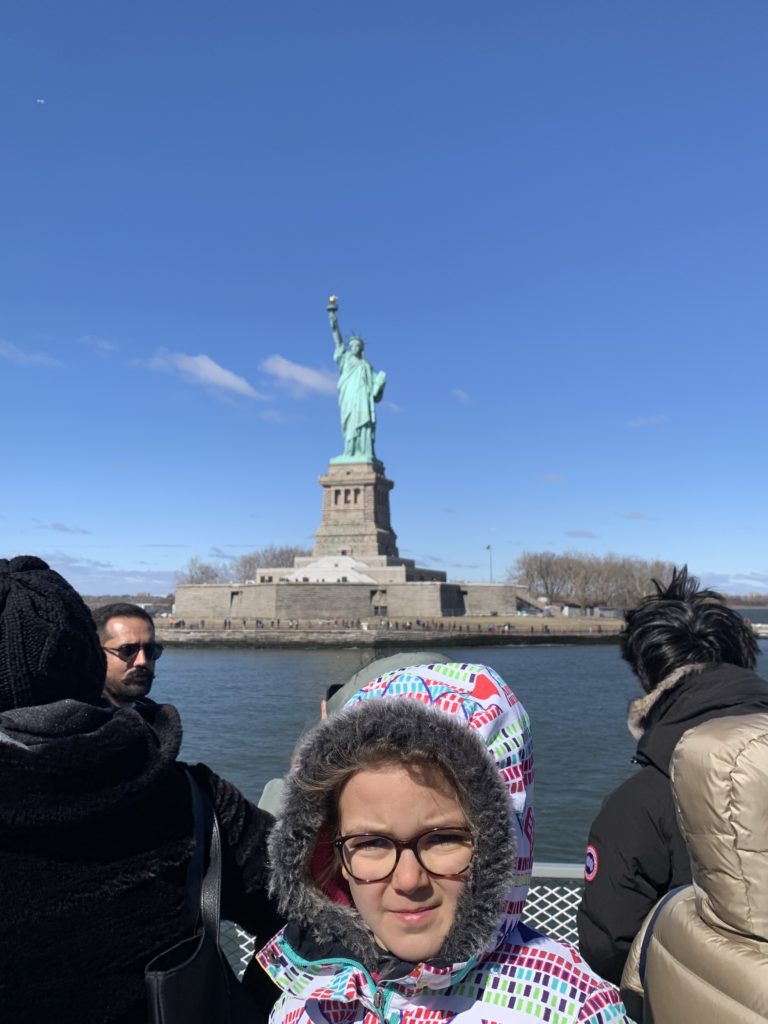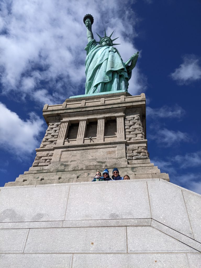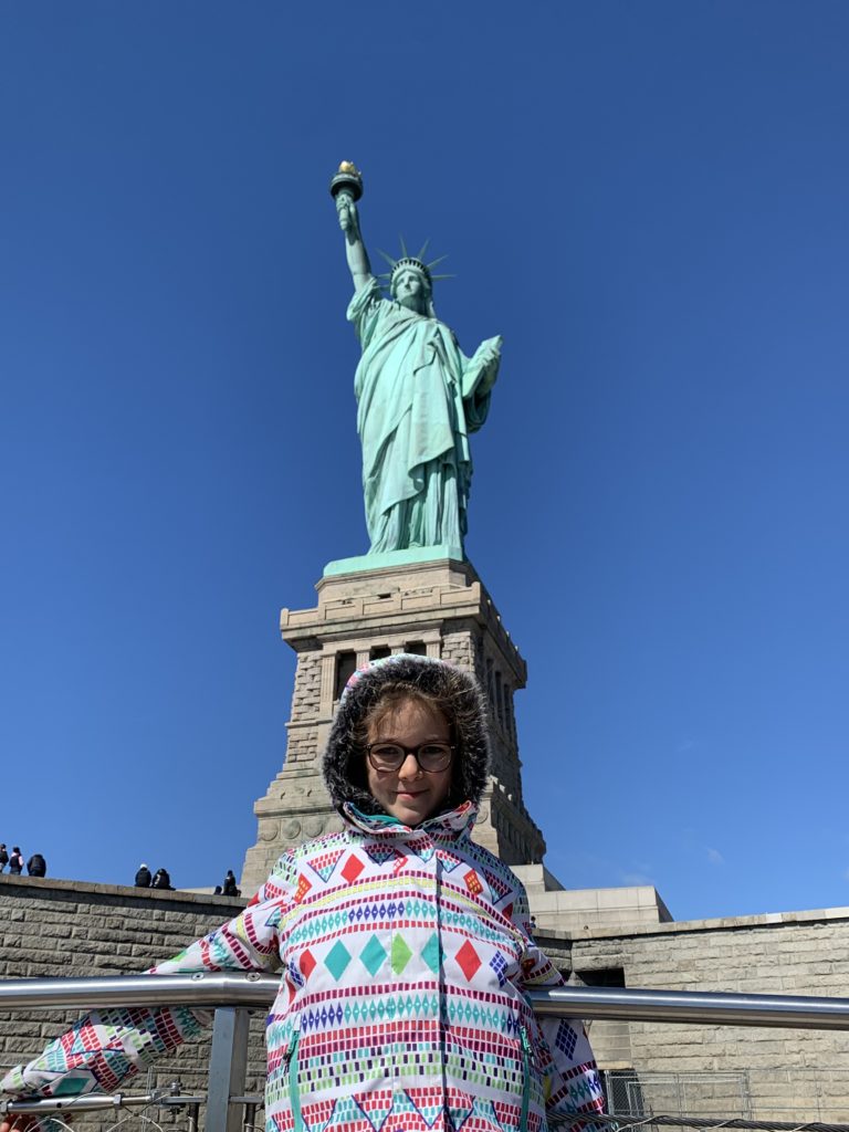 Aujourd’hui, Agathe a pu se joindre à nous toute la journée. Nous sommes d’abord allés sur Liberty Island, pour admirer la statue de la liberté, et monter dans son piédestal.
