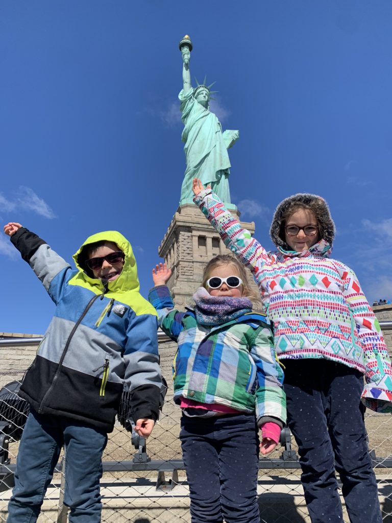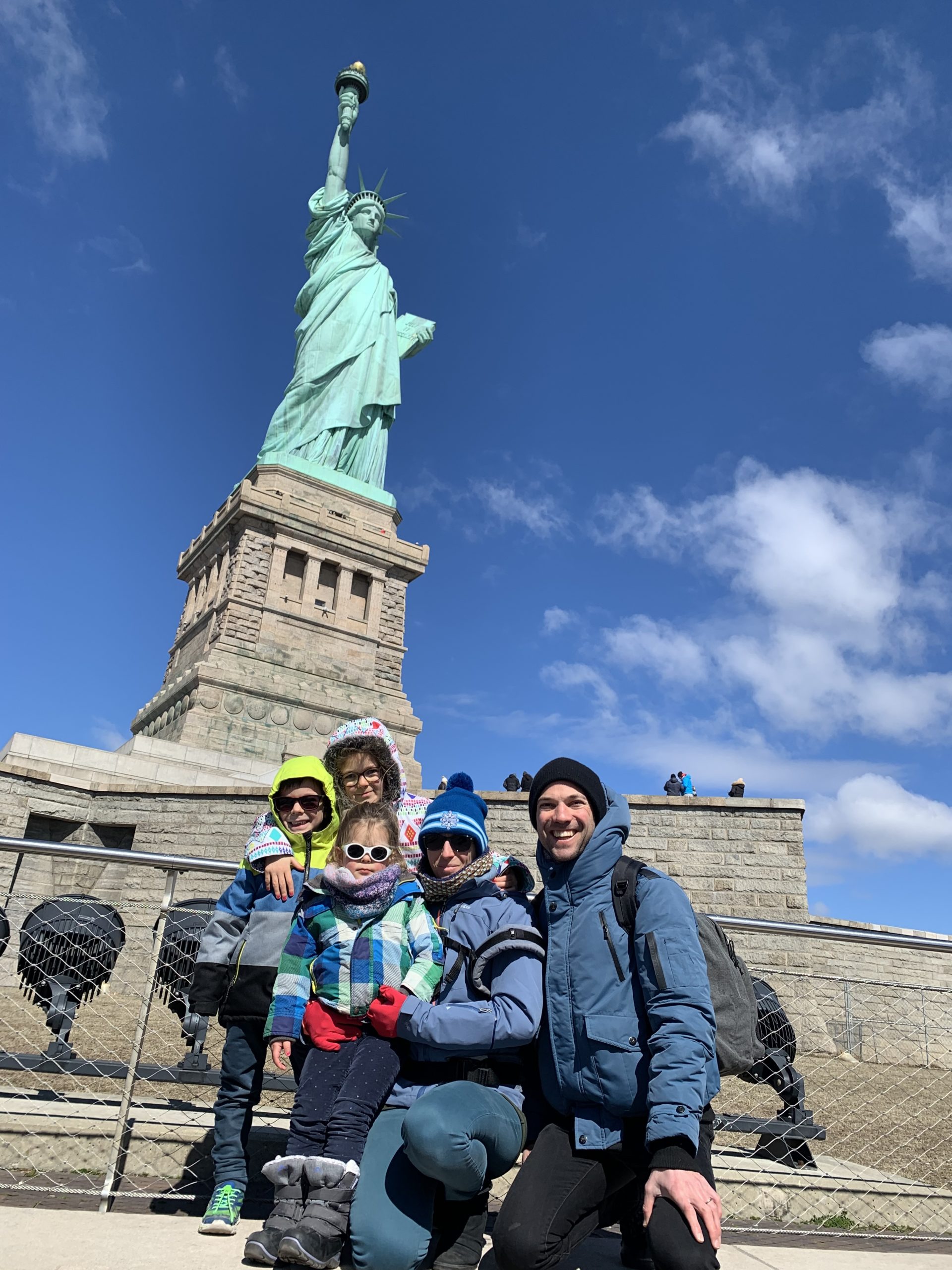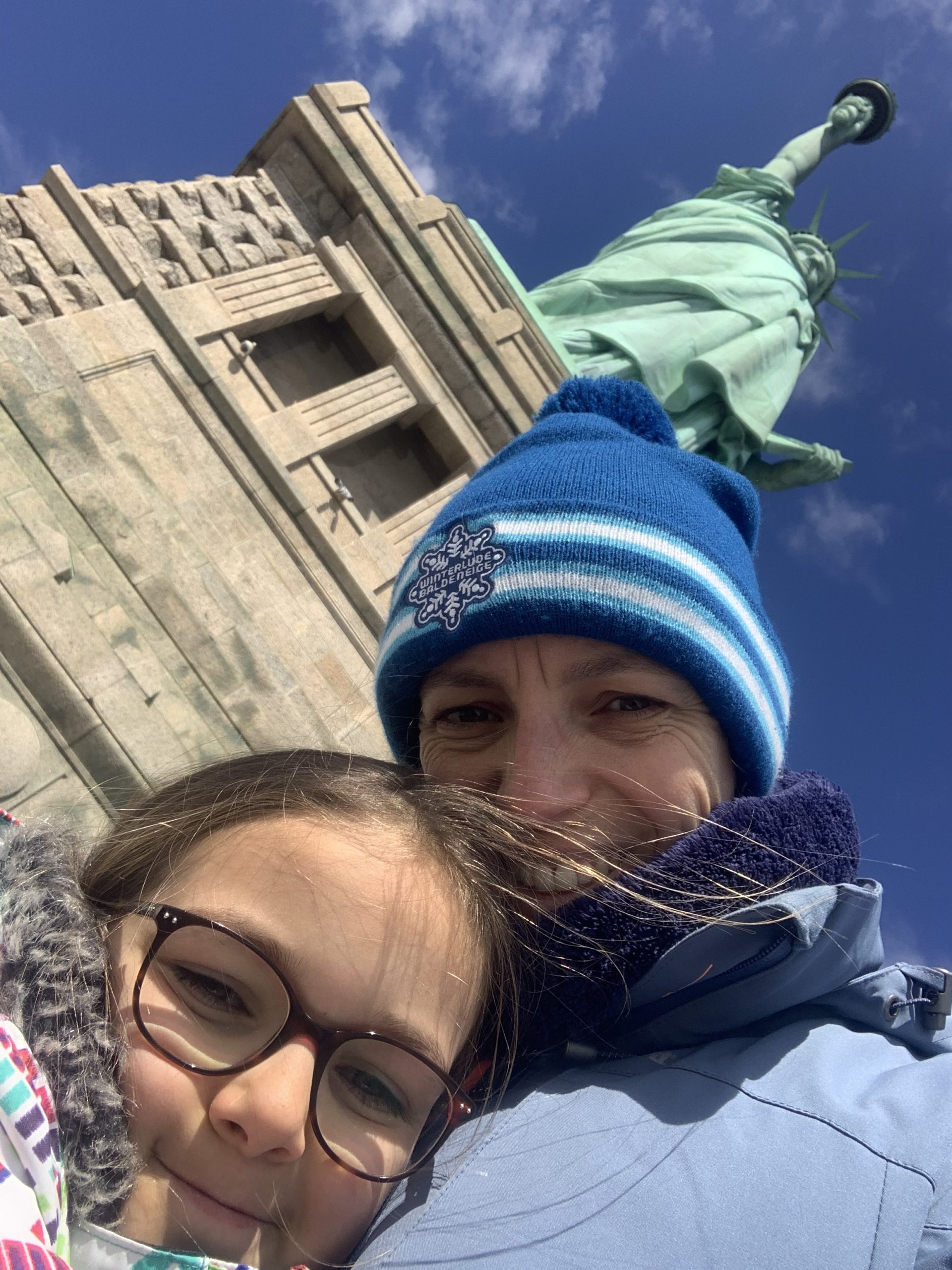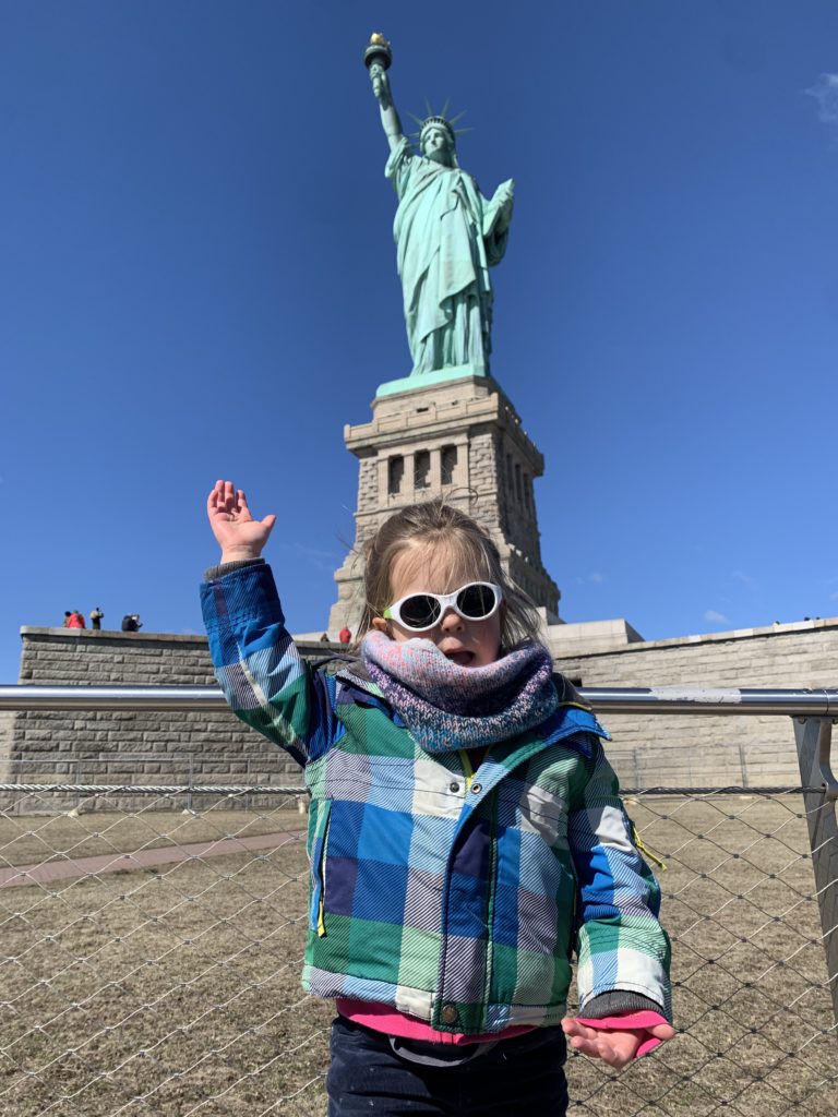 Aujourd’hui, Agathe a pu se joindre à nous toute la journée. Nous sommes d’abord allés sur Liberty Island, pour admirer la statue de la liberté, et monter dans son piédestal.