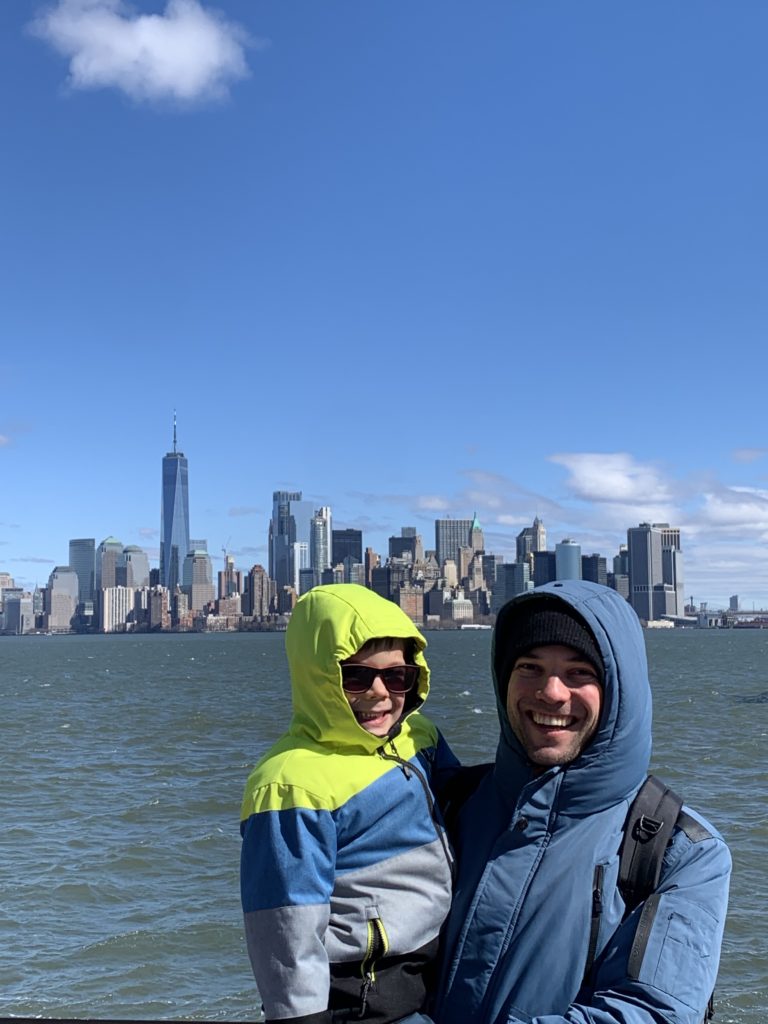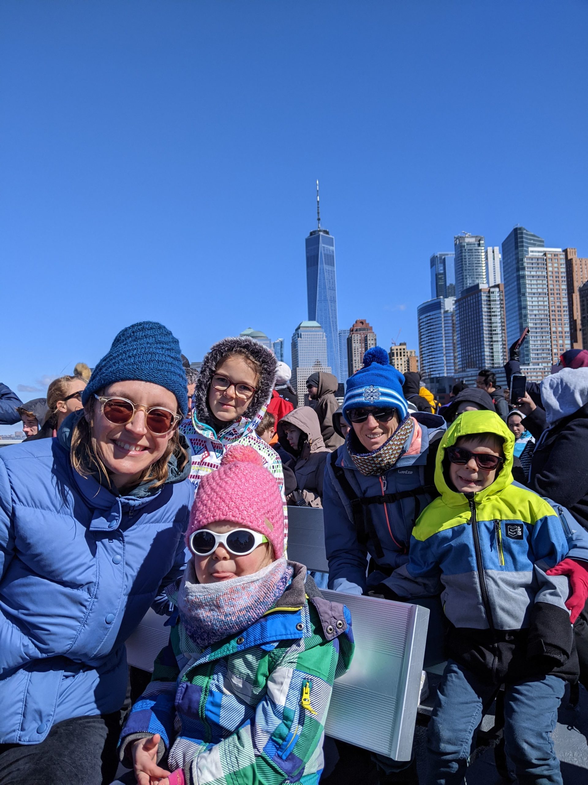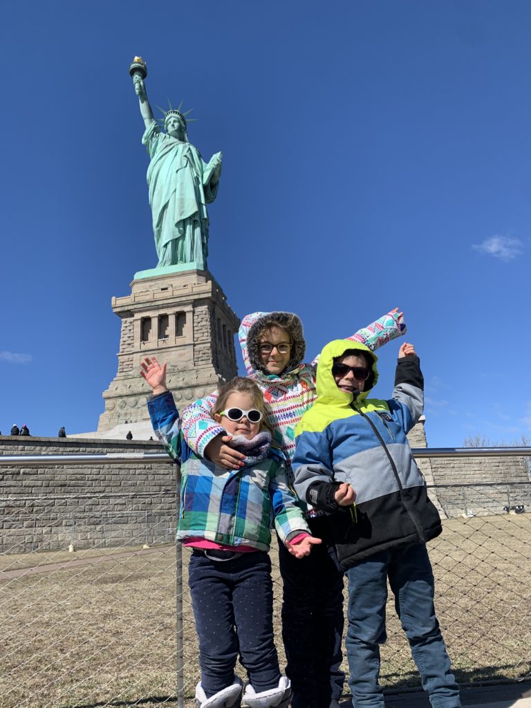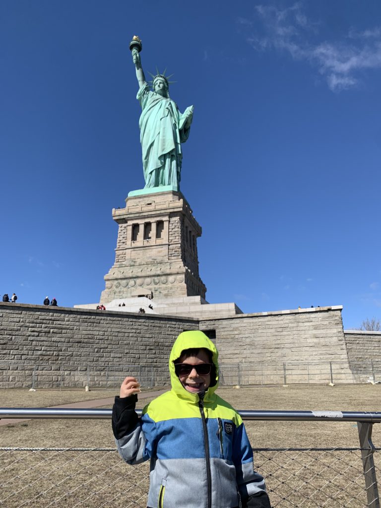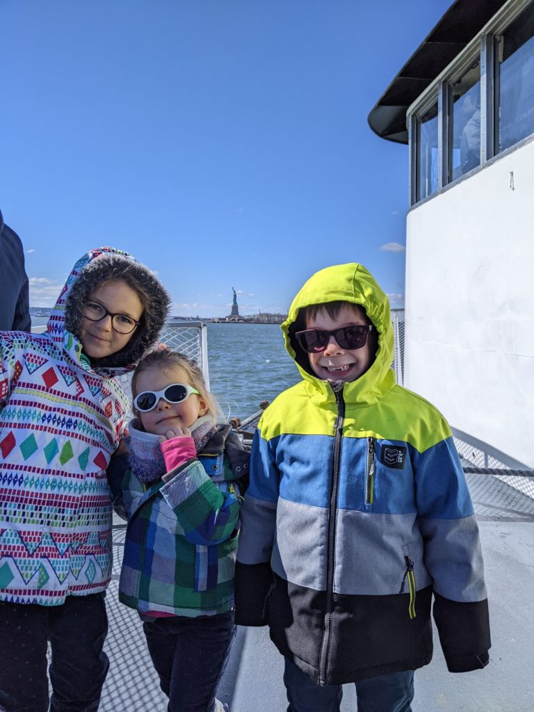 Aujourd’hui, Agathe a pu se joindre à nous toute la journée. Nous sommes d’abord allés sur Liberty Island, pour admirer la statue de la liberté, et monter dans son piédestal.