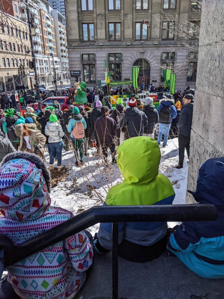 En rentrant, nous sommes repassés rapidement à l’esplanade Tranquille, et nous avons pu avoir des sucettes de tire d’érable ! C’est du sirop d’érable épais (chauffé davantage que le sirop habituel) versé sur de la neige autour d’un bâton. Hier, le stand était fermé car ils avaient tout distribué, mais nous avons bien pu en profiter aujourd’hui, certains gourmands en ont même pris 2 fois !